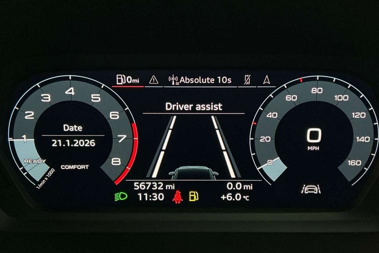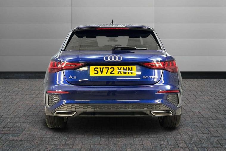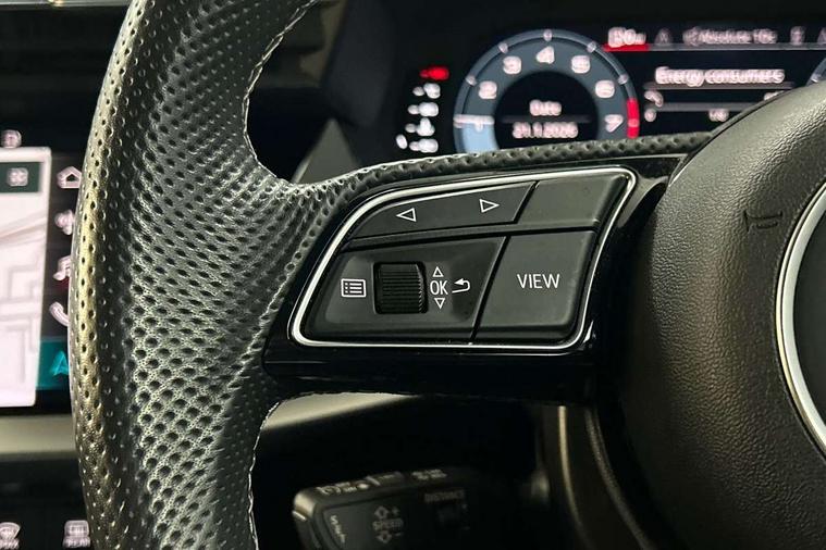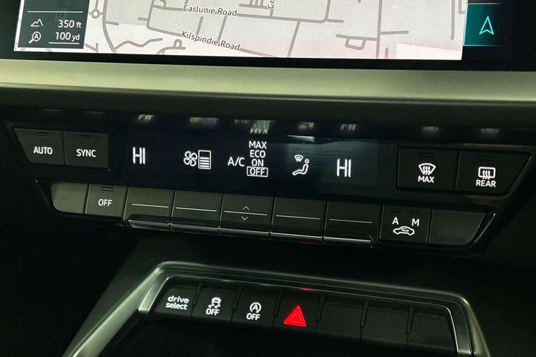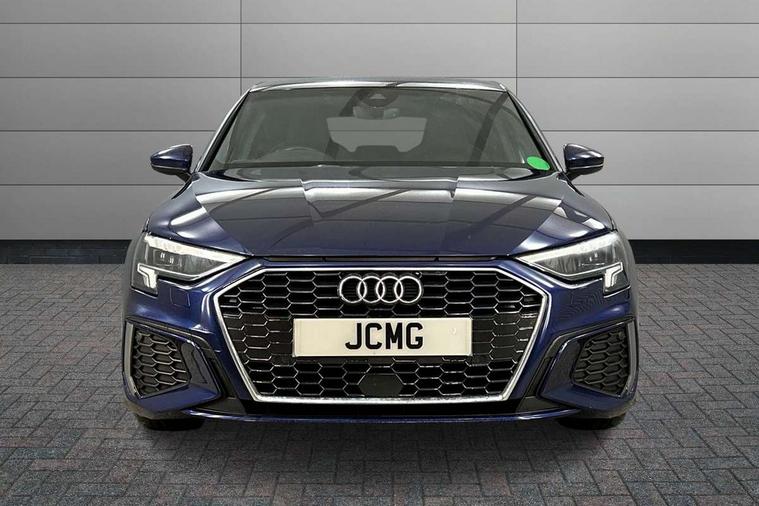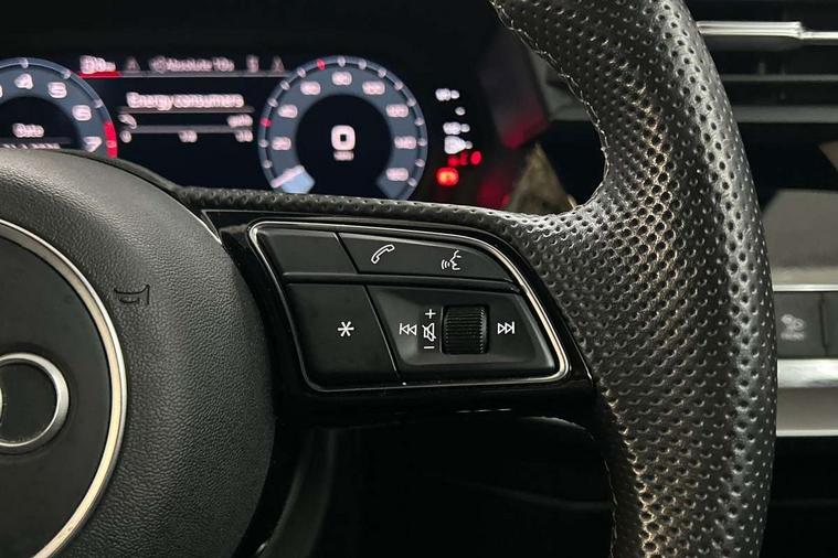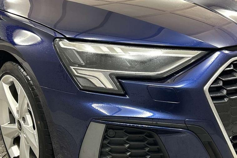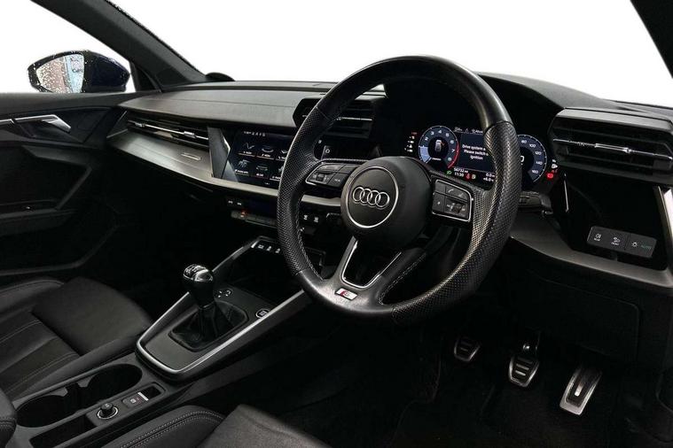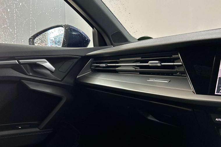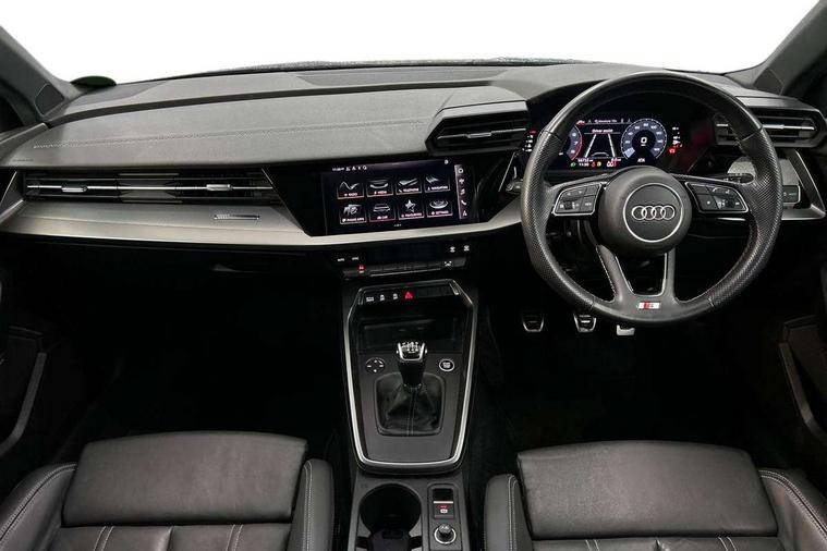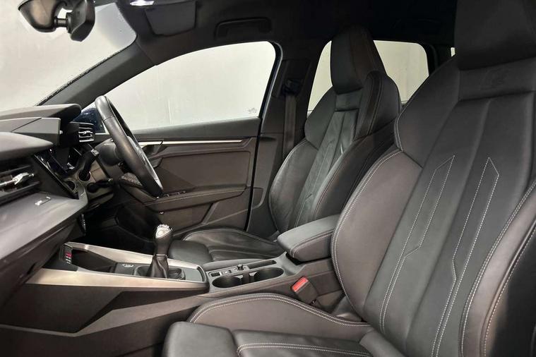 Audi drive select (Auto, Comfort, Dynamic and Individual), Audi smartphone interface, Audi Virtual Cockpit - 10.25" digital and colour instrument cluster, Automatic start/stop system with recuperation, Bluetooth interface, Collision avoidance assistant, Cruise control, e-Call (emergency call), Electromechanical power speed sensitive steering, Lane departure warning system, MMI Navigation Plus with high resolution 10.1" colour touch screen display, Rear parking sensors, Service indicator, Trip computer, Voice control system with natural language interaction, 2xUSB-C connection with data and charging functions, 6 passive loudspeakers, DAB Digital radio, 3rd brake light, Acoustic glass windscreen, Aluminium window trim, Auto dimming frameless rear view mirror, Electrically adjustable/heated/folding/auto dimming door mirrors with integrated LED indications + kerb view function for passenger side, Front electric windows, Illuminated aluminium inserts front door sills with S logo, LED daytime running lights, LED headlights with LED rear lights and dynamic rear indicators, Light and rain sensors, Privacy glass - dark tinted rear window, rear door and side windows, Rear electric windows, Rear side air outlets in grained matt black, Rear side wing doors, Rear wiper, S line bumpers, S roof spoiler, 12V socket and storage compartment in front centre console, 3 seat bench in 2nd row, 40/20/40 split folding rear seat bench with cupholder, Black cloth headlining, Dual zone electronic climate control, Front and rear centre armrest in leather, Front and rear headrests, Front/rear floor mats, Height and reach adjustable steering wheel, Illuminated vanity mirror, Interior lighting - glove compartment light and right hand side, Luggage compartment floor covering, Manual boot compartment lid, Manually adjustable front seats, Seat side bolsters, Single front passenger seat, Stainless steel pedals and front footrest in black, Twin leather upholstery with front sports seats S embossed logo, Aluminium interior elements pack - A3 Sportback, S line styling pack - A3 Sportback, 3x3 point rear seat belts, Audi pre sense front, Driver and front passenger airbag with passenger airbag deactivation, Electronic Stabilisation Control (ESC) including ABS, ASR and EDL, First aid kit with warning triangle and 2 safety vests, Front side airbags with head airbags and interaction airbag, Pre-sense front with pedestrian and cyclist detection, Seatbelt monitoring, Tyre pressure loss indicator, Anti theft alarm, Anti-theft wheel bolts, Immobiliser, Manual child locks, Remote control central locking, Accent surfaces in the dashboard and centre console in platinum grey silk effect paint finish, Dark spectrum aluminium inlays,