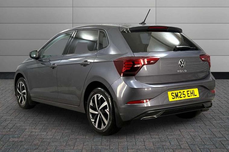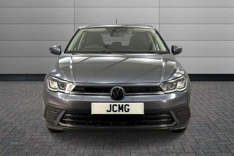 Adaptive cruise control without follow-to-stop and speed limiter, Advanced driver attention and drowsiness monitor, Bluetooth mobile phone interface, Dynamic road sign display, Emergency call service, Multifunction front facing camera for distance control, Park distance control, Power assisted speed sensitive steering, Preparation for navigation system with media and internet package, Preparation for We connect and We connect plus, Rear view camera, Speedo and rev counter, electronic odometer, trip, service interval display and exterior temperature gauge, Standard rear axle, Travel Assist - Lane keeping system and traffic jam assist, Travel assist including emergency assist, Trip computer, Warning signal and warning light for front and rear seatbelts not fastened, Washer fluid level indicator, Wireless app connect, Front wheel drive, Rear shock absorpion, Start-stop system with battery regeneration (recuperation - energy recovery during braking), DAB Digital radio, Diversity antenna for FM reception, Front and rear 6 speakers, Automatic dimming interior rear view mirror, Automatic headlight control with LED separate daytime running lights with coming/leaving home function, Body colour bumpers with chrome inserts, Body colour door handles, Body colour door mirrors, Electric front windows, Engine badge deletion, Headlight range adjustment, Heat insulating and laminated safety glass windshield, LED Headlights, LED rear combination lamps, Power folding adjustable/heated exterior mirrors and front passenger exterior mirror lowering function, Rain sensor, Rear electric windows, Rear fog light, Rear side wing doors, Rear tinted glass from B-pillar backwards approx 65% tinted, Rear windscreen washer and wiper with interval delay, Third brake light, 12V power socket in centre console, 2 front and 2 rear reading lights with switch off delay and dimmer, 2 USB-C ports in the front, 2 USB-C charging sockets on the center console in the rear, 3 rear head restraints, 60/40 split folding rear seat and rear seat bench not split, Ceramique roof lining, Chrome plated radiator grille inserts, air vent surrounds and light switch surrounds, Door and side trim panel, Driver and front passenger seat height adjustment, Driver/passenger sunvisors with illuminated vanity mirrors, Front centre armrest, Front seat backrest storage pockets, Front standard seats, Handbrake lever handle in leather, Hartley/Thomas cloth upholstery, Headliner in recycled material, Isofix child seat preparation easy-fit (for two outer rear seats, and front passenger seat) compatible with I-size, Leather trimmed gear knob, Luggage compartment cover, Luggage compartment lighting, Removable luggage compartment floor, Single front passenger seat, Standard climatic zones, Standard pedal cluster, Three spoke leather wrapped multifunction steering wheel, Light and vision pack - Polo, 3 point height adj front seatbelts + pretensioners, 3 point seat belt for centre rear seat, 3 point seatbelts, outer rear with ECE lable, ABS, Driver and front passenger airbag with front passenger airbag deactivation, Drivers and front passengers safety optimised head restraints, ESC (Electronic stability control) + EDL (Electronic Differntial lock) and ASR (Traction control), Extended and predictive pedestrian/ cyclist protection, Front assist with autonomous emergency braking (for Adaptive Cruise Control ACC up to 130 mph), Front curtain and side airbags with center airbag, Front disc brakes, Hill hold control, Manual child lock in rear doors, Rear drum brakes, Single tone horn, Tyre pressure loss indicator, Alarm with interior protection, Anti-theft alarm system with interior monitoring, backup horn, and towing protection, Anti-theft wheel bolts, Electronic engine immobiliser, Lava stone black gloss/matt decorative inserts in dash and front door panels, 16" Torsby alloy wheels, Low rolling resistance tyres,