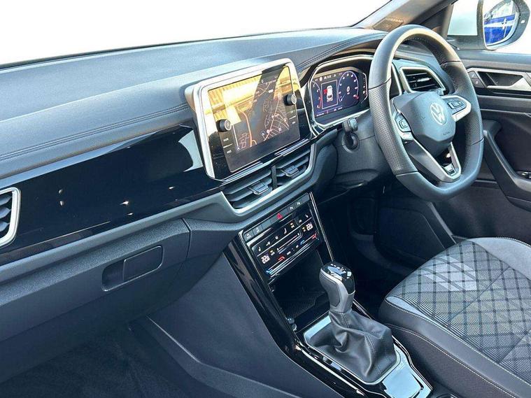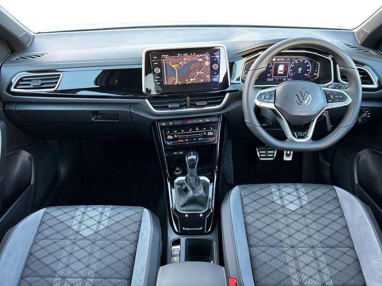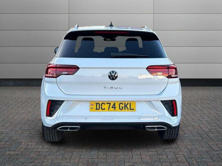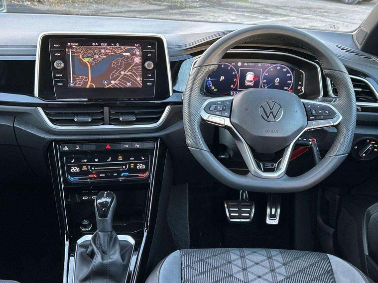 10.25" Digital cockpit pro, Advanced driver attention and drowsiness monitor, Emergency call service, Lane keeping system Lane Assist, Mobile phone interface, Modified key software - reduce switch off time for key status change to Long no motion, Online services, Park assist including front and rear parking sensors, Service interval indicator, Tailgate/trunk lid release from outside, Think blue trainer driver tips and journey analysis, Warning sound and light for front seatbelts unfastened, Wireless app connect, Battery regeneration during braking, Start/stop function with battery regeneration, DAB Digital radio, Diversity antenna for FM reception, Front and rear 6 speakers, Music playback - MP3, WMA and AAC files, Premium USB cable in choice of either Apple or Android smartphone compatibility, SD card slot, Simultaneous pairing of 2 compatible mobile devices, Title and cover art display, We Connect and We Connect Plus functionality, Auto dimming interior rear view mirror, Automatic hazard lights activation under emergency braking, Automatic headlight control with LED separate daytime running lights with coming/leaving home function, Body coloured exterior mirror housings and door handles, Electrically adjustable and heated door mirrors, Extended roof spoiler, Exterior mirrors aspherical on driver side, convex on front passenger side, External USB type C socket and charging sockets, Front windscreen wiper with intermittent wipe and 4 position delay, Heated rear window, LED 3rd brake light, LED rear combination lamps, LED rear number plate lights, Power windows with comfort operation and circuit breaker, Privacy glass for rear side windows and rear window, R-Line design body coloured bumpers, Rain sensor, Rear exhaust tailpipe, Rear fog light on one side and reversing lights on both sides, Rear side wing doors, Rear wash/wipe with intermittent wipe setting, Remote electrically foldable door mirrors, puddle lights and reverse activated passenger's door mirror, 12V power socket in centre console, 3 rear head restraints, 3 seat bench in 2nd row, 4 load lashing points in luggage compartment, Air care climatronic air conditoning system with active combination filter and 2-zone temperature control, Black roof lining, Chrome plated decorative trims, Chrome plated radiator grille inserts, air vent surrounds and light switch surrounds, Door and side trim panel with leatherette insert, Front + rear carpet mats, Front centre armrest, Front cupholders x 2, Front footwell illumination, Front reading light, Front scuff plates with R Line logo, Front seat back storage pockets, Glove compartment door with light, Instrument lighting, white adjustable panel illumination, Interior ambient lighting and surround lighting, Interior light delay, Isofix child seat preparation, Leather gearshift handle, Load-through provision with cup holder when folded down ('Unsplit rear seat bench, split folding backrest, with centre armrest), Luggage compartment lighting, Single front passenger seat, Stainless steel pedals, Storage compartment in left and right luggage area, Storage compartment in rear doors, Storage compartments in driver and front passenger doors, Sunvisors with illuminated vanity mirrors, Variable boot floor, height adjustable and removable, Driver assistance pack without proactive passenger protection - T-Roc, 3 point height adj front seatbelts + pretensioners, 3 point seatbelts in outer rear with ECE label, ABS, Child locks on rear doors, City emergency braking and pedestrian monitoring, Driver and front passenger airbag with front passenger airbag deactivation, Driver and front passenger safety-optimised head restraints, Drivers seatbelt reminder, Electronic parking brake, Electronic Stability Control (ESC) inc EDL (Electronic Differential Lock) and ASR (Traction Control), Front and rear passengers curtain airbag system including front side airbags, Hill start assist, Predictive pedestrian protection, Rear disc brakes, Two tone horn, Tyre pressure loss indicator, Volkswagen roadside assistance, Piano black decorative inserts in dashboard and front door trim panels, Trims for alloy wheels,