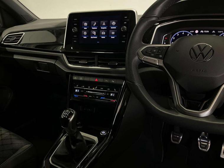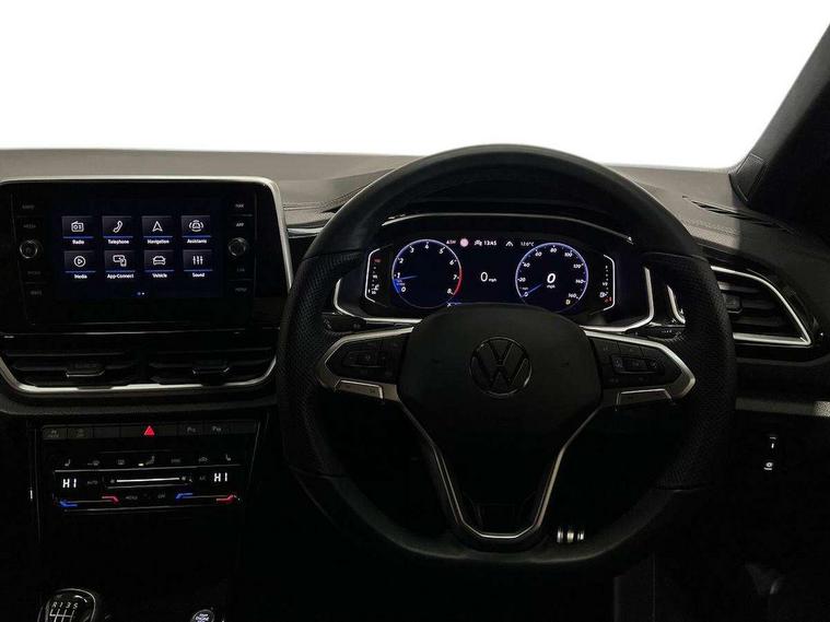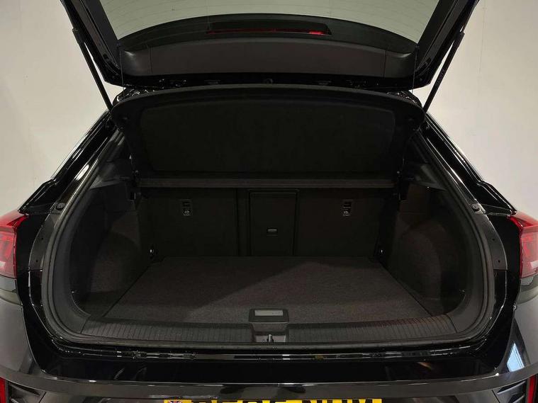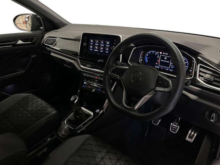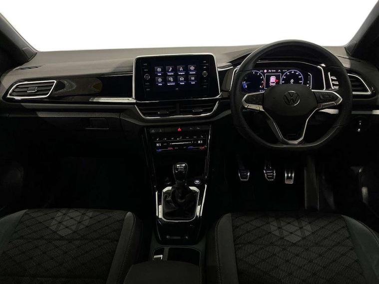 10.25" Digital cockpit pro, Advanced driver attention and drowsiness monitor, Emergency call service, Lane keeping system Lane Assist, Mobile phone interface, Modified key software - reduce switch off time for key status change to Long no motion, Online services, Park assist including front and rear parking sensors, Service interval indicator, Tailgate/trunk lid release from outside, Think blue trainer driver tips and journey analysis, Warning sound and light for front seatbelts unfastened, Wireless app connect, Battery regeneration during braking, Start/stop function with battery regeneration, DAB Digital radio, Diversity antenna for FM reception, Front and rear 6 speakers, Music playback - MP3, WMA and AAC files, Premium USB cable in choice of either Apple or Android smartphone compatibility, SD card slot, Simultaneous pairing of 2 compatible mobile devices, Title and cover art display, We Connect and We Connect Plus functionality, Auto dimming interior rear view mirror, Automatic hazard lights activation under emergency braking, Automatic headlight control with LED separate daytime running lights with coming/leaving home function, Body coloured exterior mirror housings and door handles, Electrically adjustable and heated door mirrors, Extended roof spoiler, Exterior mirrors aspherical on driver side, convex on front passenger side, External USB type C socket and charging sockets, Front windscreen wiper with intermittent wipe and 4 position delay, Heated rear window, LED 3rd brake light, LED rear combination lamps, LED rear number plate lights, Power windows with comfort operation and circuit breaker, Privacy glass for rear side windows and rear window, R-Line design body coloured bumpers, Rain sensor, Rear exhaust tailpipe, Rear fog light on one side and reversing lights on both sides, Rear side wing doors, Rear wash/wipe with intermittent wipe setting, Remote electrically foldable door mirrors, puddle lights and reverse activated passenger's door mirror, 12V power socket in centre console, 3 rear head restraints, 3 seat bench in 2nd row, 4 load lashing points in luggage compartment, Air care climatronic air conditoning system with active combination filter and 2-zone temperature control, Black roof lining, Chrome plated decorative trims, Chrome plated radiator grille inserts, air vent surrounds and light switch surrounds, Door and side trim panel with leatherette insert, Front + rear carpet mats, Front centre armrest, Front cupholders x 2, Front footwell illumination, Front reading light, Front scuff plates with R Line logo, Front seat back storage pockets, Glove compartment door with light, Instrument lighting, white adjustable panel illumination, Interior ambient lighting and surround lighting, Interior light delay, Isofix child seat preparation, Leather gearshift handle, Load-through provision with cup holder when folded down ('Unsplit rear seat bench, split folding backrest, with centre armrest), Luggage compartment lighting, Single front passenger seat, Stainless steel pedals, Storage compartment in left and right luggage area, Storage compartment in rear doors, Storage compartments in driver and front passenger doors, Sunvisors with illuminated vanity mirrors, Variable boot floor, height adjustable and removable, Driver assistance pack without proactive passenger protection - T-Roc, 3 point height adj front seatbelts + pretensioners, 3 point seatbelts in outer rear with ECE label, ABS, Child locks on rear doors, City emergency braking and pedestrian monitoring, Driver and front passenger airbag with front passenger airbag deactivation, Driver and front passenger safety-optimised head restraints, Drivers seatbelt reminder, Electronic parking brake, Electronic Stability Control (ESC) inc EDL (Electronic Differential Lock) and ASR (Traction Control), Front and rear passengers curtain airbag system including front side airbags, Hill start assist, Predictive pedestrian protection, Rear disc brakes, Two tone horn, Tyre pressure loss indicator, Volkswagen roadside assistance, Piano black decorative inserts in dashboard and front door trim panels, Trims for alloy wheels,