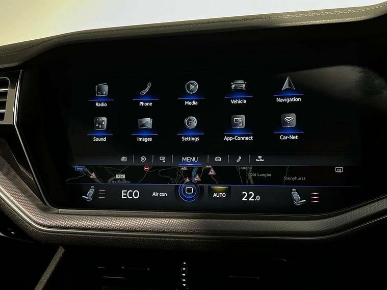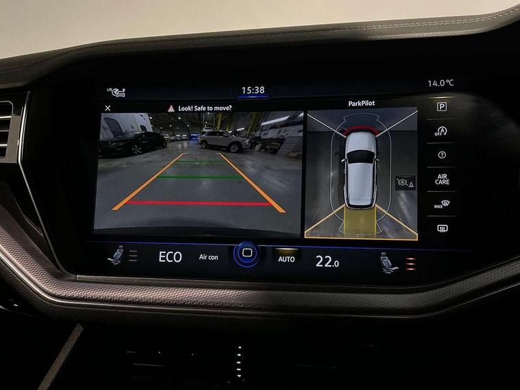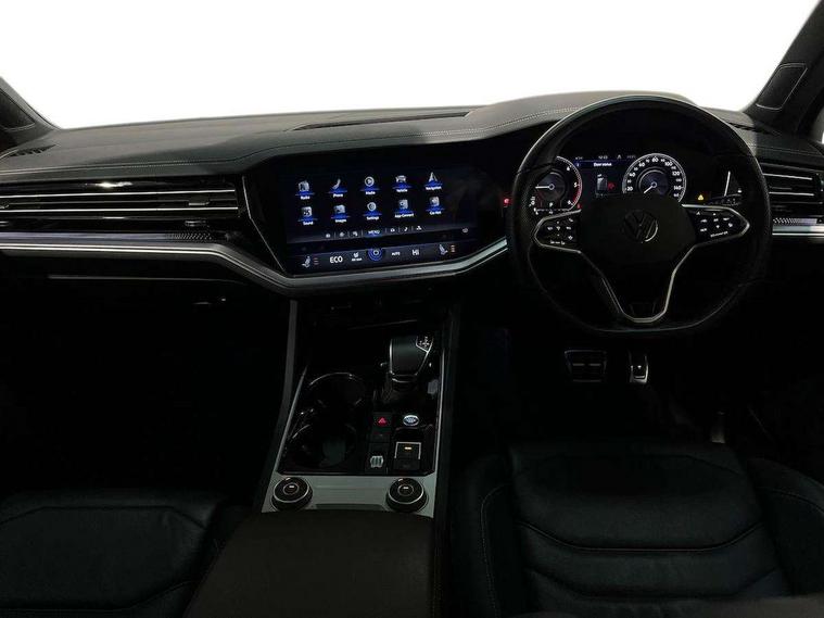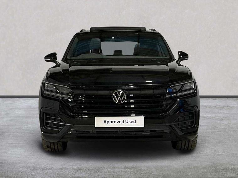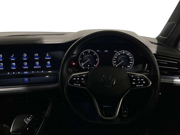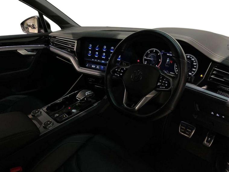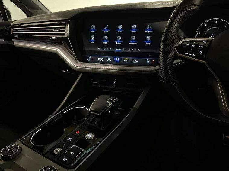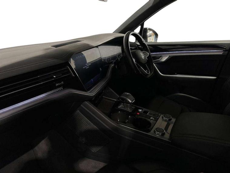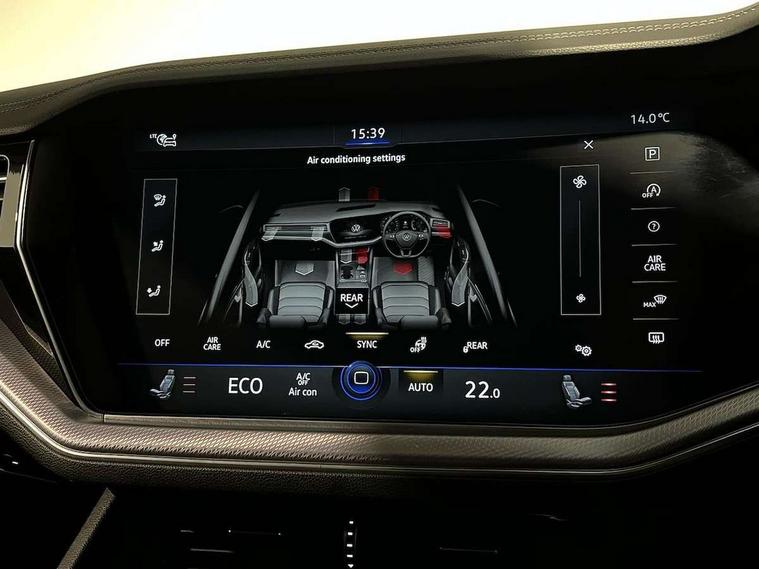 2D/3D map view, ACC - Adaptive cruise control with front assist, forward collision warning, distance monitoring, city emergency brake and speed limiter, Apple car play/Android Auto, Audible and visual fatigue detection system, Bluetooth hands free telephone connection, Car information display, Drive select with Damper control, Driver alert system, Driver profile selection, Dynamic road sign display camera controlled system with visual warning for traffic and road signs, eCall emergency system, Fully electric tailgate + keyless entry and start, Instrument cluster, MirrorLink, Multifunction camera, Multifunction computer premium with 7" colour display, One touch indicators with repeat function, Service interval indicator, Speed sensitive power steering, Start/stop system with regenerative braking, Tailgate power latch, Think blue trainer driver tips and journey analysis, Traffic sign recognition, Voice control system, Wireless Smartphone charger, 24 litre AdBlue tank, Torsen limited slip differential, DAB Digital radio, Dynamic navigation based on TMC+, Gesture control for infotainment system, Multi device interface (MDI) with illuminated USB-C connection, Music playback - MP3, WMA and AAC files, SD card slot, Simultaneous pairing of 2 compatible mobile devices, SMS functionality - read, compose and send SMS messages using touch-screen display, Title and cover art display, Volkswagen media control, Adaptive low beam for urban and motorway use, Auto dimming rear view mirror, Automatic coming/leaving home lighting function, Automatic headlights, Black anodised roof rails, Black door mirrors, Black rear diffuser, Black side window surrounds, Black upper and lower grille louvres extending into headlights and radiator grille, Body colour door handles, Body coloured wheel arches, C signature gloss black front air intake, Chromed tailpipe on the left and right integrated in the bumper with trapezoid design, Dusk sensor, Dynamic headlight range control, Electric front tilt/slide panoramic sunroof and fixed rear sunroof, Electrically power adjustable, heated, folding, auto dimming, front passenger exterior door mirror lowering function, Front and rear electric windows, Galvanised body, Gloss black finish B pillar, Gloss black rear diffuser, Headlight washers, Heat insulating darkened glass in side and rear windows, Heated windscreen washer jets, IQ.Light-LED matrix headlight, daytime running light with dynamic cornering light and indicator, LED 3rd brake light, LED rear fog light, LED rear number plate lights, Plastic scuff plates in door apertures, Poor weather light, Puddle lights, Rain sensor, Rear side wing doors, Rear wiper, 12V socket in front and rear centre console and boot, 2 Coat hooks on B pillar, 3 rear head restraints, 3 seat bench in 2nd row, 3 spoke sport heated leather multi-function sports steering wheel with gear shift paddles - generation 2, 4 way adjustable front head restraints, 4 way electric lumbar support for driver and front passenger, 4 zone climate control, 40:20:40 split folding slide/recline rear seat, B pillar vents, Black lower edge of door extending sills, Branded points of interest, Double sun visor for drivier and passenger with LED illuminated vanity mirrors, Electric luggage compartment cover, Folding rear centre armrest with 2 cupholders, Front + rear carpet mats, Front centre armrest with storage box, Gear shift indicator, Height/reach adjust steering wheel, Illuminated air conditioned glovebox, Isofix preparation for 2 rear child seats, Jack and tool kit, Leather trimmed gear knob with gloss black inlay/aluminum trim, Leatherette door trim, LED luggage compartment lighting, Load through provision, Luggage compartment with load lashing rings, Plastic loading edge protection, Rear seat remote release levers, Single front passenger seat, Soul black headlining, Stainless steel pedals, Innovision cockpit pack - Touareg, 3 point front seatbelts with pre-tensioners, ABS, Active bonnet, Automatic post collision braking system, Curtain airbags, Driver/Front Passenger airbags, EBD + Brake Assist, EDL, Electronic parking brake with auto hold, ESC with ASR, Front seat side impact airbags, Hill descent control, Hill start assist, Passenger airbag deactivate switch, Seatbelt warning lamp and buzzer, Three 3 point rear seatbelts, Two tone horn, Volkswagen roadside assistance, Warning triangle and first aid kit, Alarm with interior monitoring in cab, backup horn and towing protection, Child security locks for front and rear doors, Electronic engine immobiliser, Remote central locking, Black decorative trims on the side windows, High gloss black centre console,