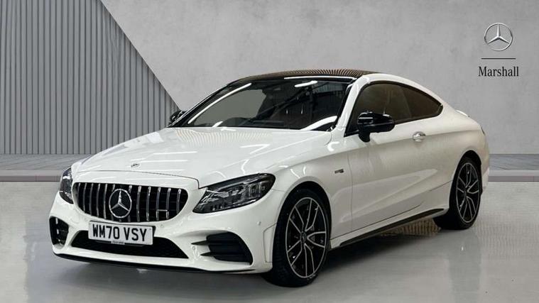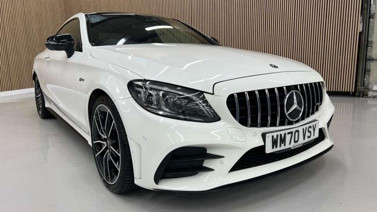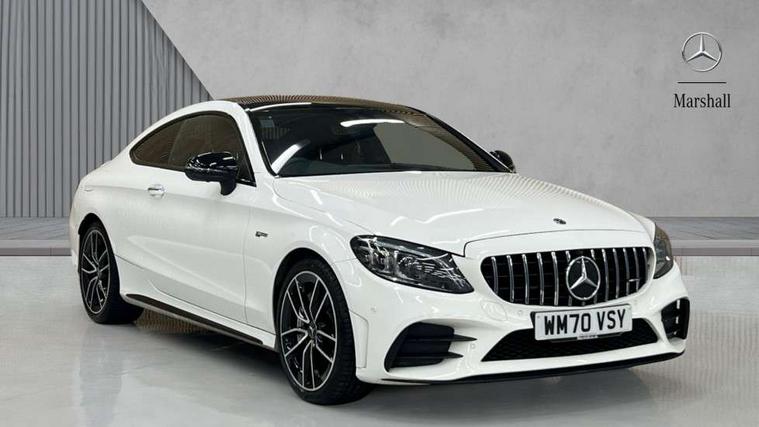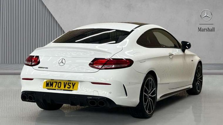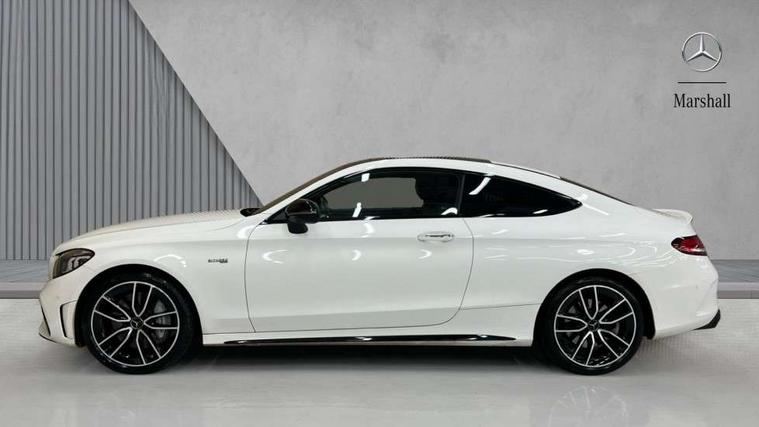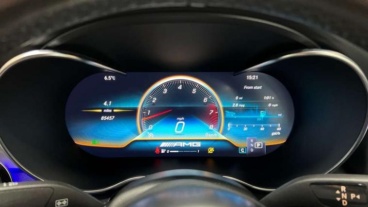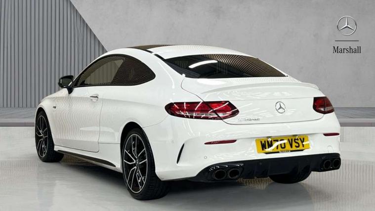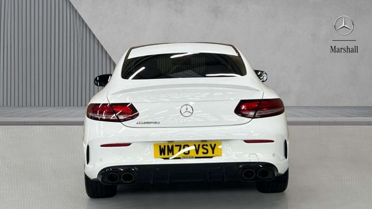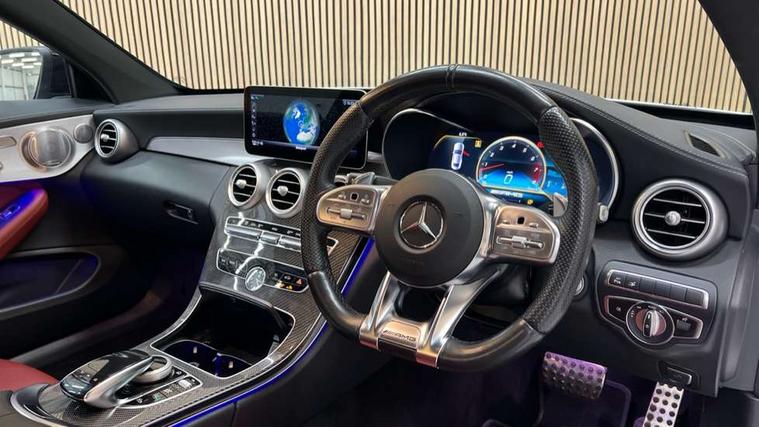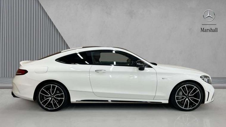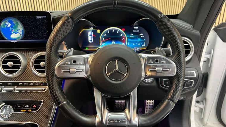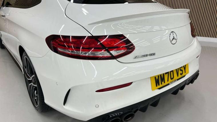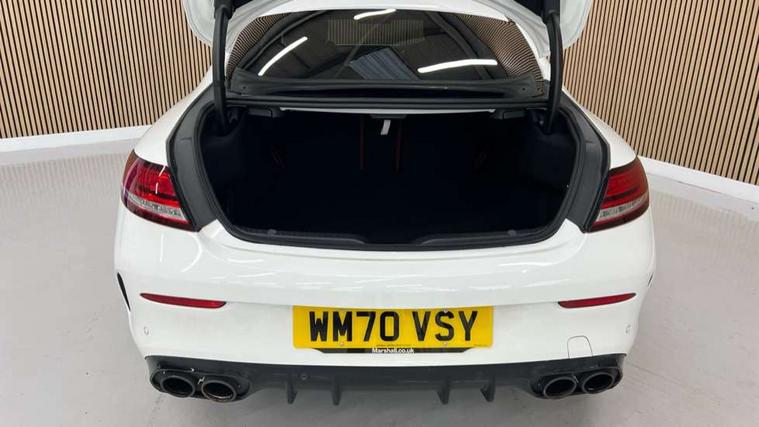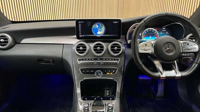12.3" digital instrument cluster display, 2 stage speed sensitive sport steering, Active park assist with parktronic system, AMG boot logo in central screen, Attention assist, Bluetooth interface for hands free telephone, Collision prevention assist plus, Comand Online HDD Nav with media interface, radio/CD/DVD/MP3, 10.25 screen, linguatronic voice control, DYNAMIC SELECT with a choice of driving modes (ECO, Comfort, Sport, Sport+ and Individual), ECO start/stop function, High resolution 10.25" multimedia colour display, Instrument cluster with 5.5-inch TFT multi-function display, Mercedes me connect including emergency call system, accident recovery, breakdown and maintenance management, Multi function trip computer, Outside temperature display, Pre-wiring for SD navigation system, Remote boot release, Reversing camera, Service indicator (ASSYST), Status display for rear seat belts in instrument cluster, Wireless charging, 66l fuel tank with increased capacity, 9G Tronic plus 9 speed automatic, AMG performance 4MATIC with torque control distribution, AMG Ride Control sports suspension, Petrol Particulate Filter, Burmester surround sound system, DAB digital radio tuner, Frontbass loudspeakers, Mid-range sound system, SD card slot, Two USB ports and one SD Card slot in centre console, Adaptive brake lights, AMG bodystyling - front apron with distinctive air intakes and AMG rear apron with diffuser look, AMG boot lid spoiler in body colour, AMG design radiator grille with double louvre in matt iridium silver with AMG lettering, AMG performance exhaust system, Body coloured bumpers, Door sill panels with AMG lettering, Electric panoramic glass sunroof, Electric windows with one touch opening/closing and obstruction sensors, Exterior mirrors heated and electronically adjustable, Full LED tail lamps, Green tinted glass, LED daytime running lights, LED Indicators, LED third brake light, Multi beam LED headlights, Privacy glass (rear side windows and rear screen), Radio aerial integrated into rear window, Rain sensor windscreen wipers, Side windows surround in polished aluminium, V8 Bi-Turbo 4Matic badge on front wings, 2 cupholders in front centre console, 2 rear head restraints, 3 spoke flat bottom multi-function sports leather steering wheel in black with topstitching in red, 40:20:40 split folding rear seats, Ambient lighting, AMG sports seats, Auto Mercedes-Benz child seat recognition sensor, Black floor mats with AMG lettering, Electrical height and back adjustment front seat, Front centre armrest with storage compartment, Front head restraints, Front LED reading lights, Heated front seats, Height/reach adjustable steering column, Illuminated glove compartment stowage, Leather upholstery, Sports pedals with stainless steel surfaces and rubber studs, Steering wheel gearshift paddles, Steering wheel touch control buttons for audio and onboard settings, Sunvisors with illuminated vanity mirrors, THERMATIC 2 zone automatic climate control, AMG night package - C Class, Interior lighting package - C Class, Keyless go comfort package - C Class Coupe, Mirror package - C Class, Parking package with 360 degree camera - C Class, Seat comfort pack - C Class, Stowage space pack - C Class, 2 rear seatbelts, 3 point automatic seatbelts, Active bonnet, Adaptive brake system with hold function, hill start assist and brake drying function, Anti-lock braking system (ABS), Automatic seatbelt pretensioner for driver and front passenger, Brake calipers with AMG lettering + perforated brake discs, Dual stage airbags - driver and front passenger, front sidebags, driver kneebag, pelvis bag and windowbags for driver, front and rear passengers, Electronic parking brake, Electronic Stability Programme (ESP), ISOFIX child seat attachment points with top tether in rear, Red seat belts, Sports braking system with larger brake discs, Tyre pressure monitoring system, Warning triangle and first aid kit, Anti-theft alarm system/interior protection with tow-away protection and interior monitoring systems, Central locking with interior switch, automatic locking and crash sensor with emergency opening function, Chrome surround in electric key, Immobiliser, AMG carbon fibre trim, Artico man-made leather dashboard, Light longitudinal grain aluminium trim painted, 19" AMG 5 twin-spoke light alloy wheels with aerodynamically optimised and painted in black with a high-sheen finish, TIREFIT with tyre inflation compressor,