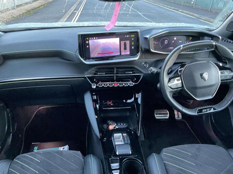 Bluetooth telephone facility, Driver attention warning, E-call, Exterior temperature indicator with ice warning, Multi function trip computer, PEUGEOT i-Cockpit with compact steering wheel, PEUGEOT i-Cockpit with configurable 3D headup instrument panel, PEUGEOT SOS and assistance, Smartphone charging plate, Speed limit recognition and recommendation, Wireless mirror screen with mirror link, apple carplay and android auto, Petrol Particulate Filter, 1x USB-C socket in rear and 1x USB-A socket in rear, 2 USB-C ports in the front, 6 speakers radio with mp3 compatible, DAB Radio (Digital Audio Broadcasting), Voice recognition for radio, navigation and telephony features, 2 X Rear number plate lights, Aluminium door sill scuff plates with peugeot lettering, Automatic hazard light activation upon heavy brake application, Black diamond roof, Black front wing trim with gloss black detail and GT badging, Body coloured exterior door handles, Dark tinted rear side and tailgate windows, Diamond black mirror shells, Diamond black rear roof spoiler, Electric, heated, and power folding door mirrors, Frameless electrochrome interior rear view mirror, Front bumper - Meteor grey lower trim, Full LED headlights with smartbeam assist with auto height adjustment, Gloss black finish on B pillar, Gloss black rear cluster connecting strip, Gloss black roof bars, Gloss black window surround, GT model designation badging on tailgate, Headlights left on audible warning, LED daytime running lights with distinctive 3 claw signature, LED side indicator lights integrated into door mirrors, LED third brake light, Model designation badges front and rear, One touch electric front/rear windows with pinch protection, Radiator grille - body coloured vertical chequered grille, Radiator grille - gloss black top edge trim, Rear full LED 3D peugeot signature claw effect lights with daylight function, Rear reversing lights, Rear side wing doors, Rear windscreen wiper triggered automatically in reverse gear, Tailgate with heated rear windscreen and wiper blade, Twin chromed exhaust pipes, Wheel arch extensions, 1/3 to 2/3 split folding rear seats, 12V socket, 3 seat bench in 2nd row, 8 Colour personalisable ambient lighting, Automatic air conditioning with pollen and active carbon filter, Central front armrest with storage compartment, Driver and front passenger sport seats, Electric power steering with reach and rake adjustable steering column, Front and rear carpet mats in black, Front LED interior light with 2 reading spotlights and rear interior light with timer, Front passenger seat manual adjustment - height, longitudinal and back rest angle, High centre console, ISOFIX child seat mounting points on passenger seat, Mistral full-grain perforated leather steering wheel with Lime Green stitch detail and satin chrome 'GT' emblem, Multifunction steering wheel, Piano keys: Gloss black and chrome toggle switches to access main functions of the vehicle and touchscreen functions, Roof lining - Mistral black, Seatbelt unfastened on the move audible and visual alert for front and rear seats, Single front passenger seat, Two position modular boot floor, Visibility pack - 2008, 2x 2nd row ISOFIX child seat mountings, ABS (Anti-lock Braking System) with EBD (Electronic Brakeforce Distribution) and EBA (Emergency Braking Assistance), Active safety brake with night function/cyclists/pedestrians, Adaptive driver and front passenger airbags with passenger airbag deactivation function, Child locking functionality on rear doors, Driver/front passenger side airbags, Electric parking brake, ESP (Electronic Stability Program) + Hill Start Assist, Front and rear curtain airbags, Front and rear disc brakes, Front and rear three-point retractable seatbelts, with force limiters, Front optimised safety headrests and rear retractable headrests (x3), height adjustable, Tyre pressure sensor, Automatic door locking when moving off, Deadlocks, Electronic code immobiliser, Peugeot Open and Go (keyless entry and push button start), Thatcham category 1 alarm, Carbon effect Dashboard, front and rear door panel finish,