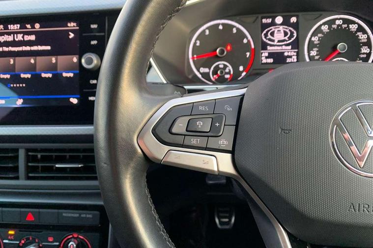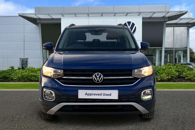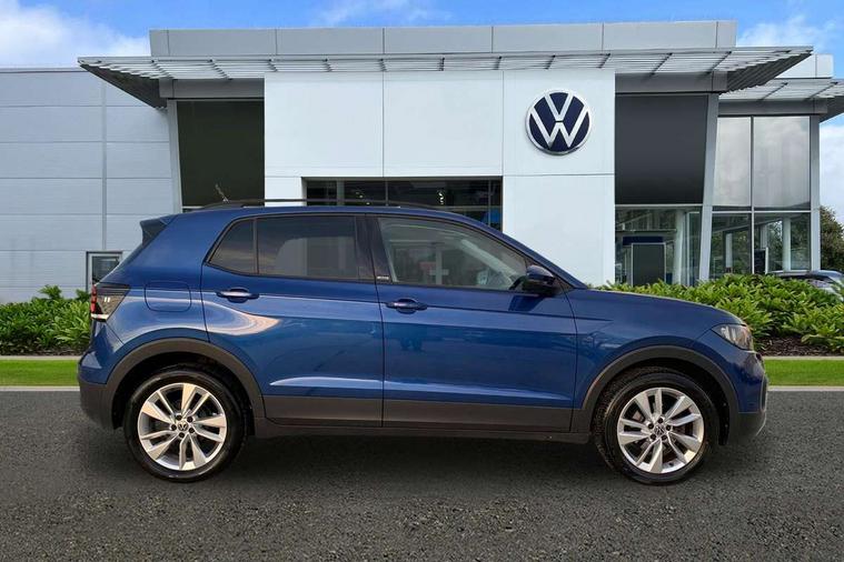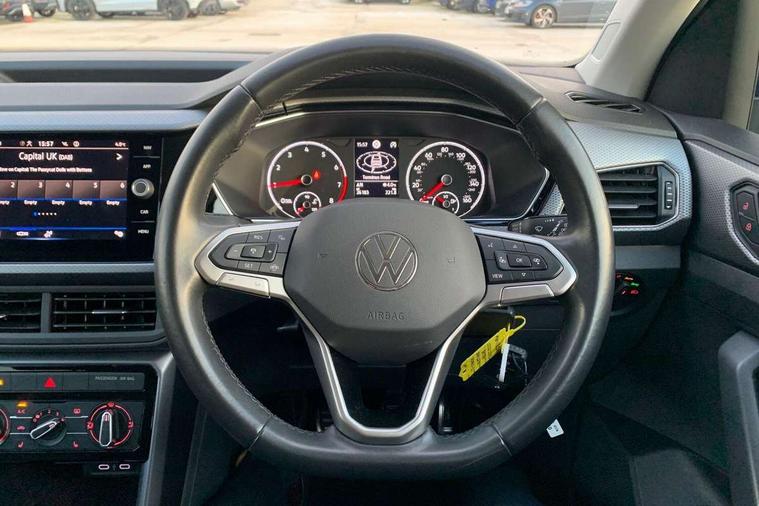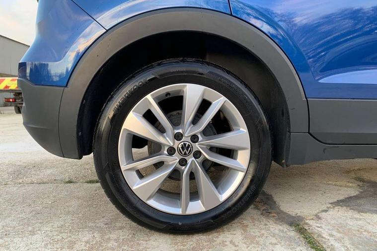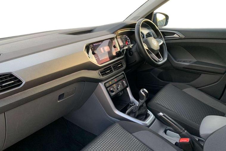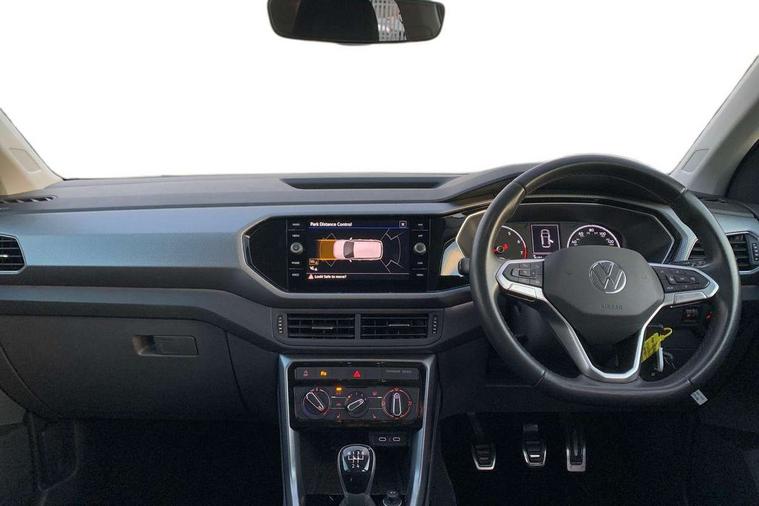 'Lights On' Reminder warning buzzer, Adaptive cruise control including front assist, forward collision warning, autonomous emergency braking, speed limiter, Blind spot monitoring, Bluetooth telephone and audio connection for compatible devices, Car information display, Driver alert system, eCall emergency call system, Lane assist, Low washer fluid warning light, Multifunction computer with visual gear change recommendation for fuel consumption, Operating permit alteration, Power assisted speed sensitive steering, Speedo, rev counter, electronic odometer, trip, service interval display, exterior temperature and fuel gauge, Stop/start system, Warning sound and light for doors and tailgate open, Warning sound and light for front seatbelts unfastened, We Connect Go Dongle, Wireless Car net app connect with Apple CarPlay, combined functionality of Apple CarPlay/Android Auto and MirrorLink, Battery regeneration during braking, Misfuel prevention device, 2x USB connection with USB charging sockets and in rear centre console, DAB Digital radio receiver, Diversity antenna for FM reception, Multi device interface (MDI) with USB connection, Music playback - MP3, WMA and AAC files, Premium USB cable for Apple or Android smartphone compatibility, Simultaneous pairing of 2 compatible mobile devices, Title and cover art display, 3D active badge on B-pillar, Active door sills, Active sill panel trims, Automatic hazard lights activation under emergency braking, Black roof rails, Body colour door handles, Body coloured bumpers, Dusk sensor + automatic driving lights, Electrically foldable, adjustable and heated door mirrors with reverse activated kerb view adjustment on passenger's side, Front and rear electric windows, Front fog lights with static cornering function, Galvanised body, Heated rear window, High level 3rd brake light, Lower door sills and door pillars in black, Radiator grille with high gloss surface and chrome strip, Rear fog light on one side, reversing light on both sides, Rear lights incorporating LED technology, Rear tinted glass 65% approx light absorbing from B pillar backwards, Rear window aerial, Rear windscreen washer and wiper with interval delay, Reflectors in all doors, Tailgate with integrated roof spoiler, Windscreen wipers/ intermittent wipe + 4 position delay, 12V Accessory socket in centre console, 3 rear head restraints and 3 rear three point seat belts with ECE label, 60/40 split folding rear seat backrest, Ambient lighting and sourround lighting, Brushed stainless steel pedals, Drawer under drivers seat, Driver and front passenger sunvisor with vanity mirror, Driver's sunvisor with ticket holder, Dust and pollen filter, Front + rear carpet mats, Front and rear reading lights X 2, Front centre armrest with storage compartment, Front seat back storage pockets, Front seats with adj lumbar support, Glovebox, Heating and fresh air system with 4 stage blower, Height/reach adjust steering wheel, Instrument lighting white adjustable panel illumination, Interior light with delay, Isofix child seat preparation for 2 rear child seats, Luggage compartment cover, Luggage compartment lighting, Moveable and foldable Rear bench seat, Storage compartment in drivers and front passengers door, Three spoke multi-function leather trimmed steering wheel and gearknob, Trapeze cloth upholstery, Variable boot floor, Winter pack - T-cross, Anti-lock Braking System (ABS) with Hydraulic Brake Assist (HBA), Automatic post collision braking system, Driver and front passenger safety-optimised head restraints, Drivers and Front Passengers airbags with front passengers airbag deactivation switch, ESC with EDL, ASR, EDTC and trailer stabilisation function, Extended and proactive pedestrian protection, Front and rear curtain airbags, Front disc brakes and rear drum brakes, Front seat side impact airbags, Height adjustable 3 point automatic front seatbelts with pretensioners, Hill start assist, Pre crash preventive occupant protection, Rigid safety cell with front and rear crumple zones, Single torn horn, Tyre pressure loss indicator, Volkswagen roadside assistance, Alarm with interior protection and deactivation via infotainment system, Child security locks in rear doors, Electronic engine immobiliser, Remote tailgate unlocking using key fob, Decorative strips in doors in matt silver/ center console, 17" Clayton alloy wheels + anti theft wheel bolts, Breakdown kit,