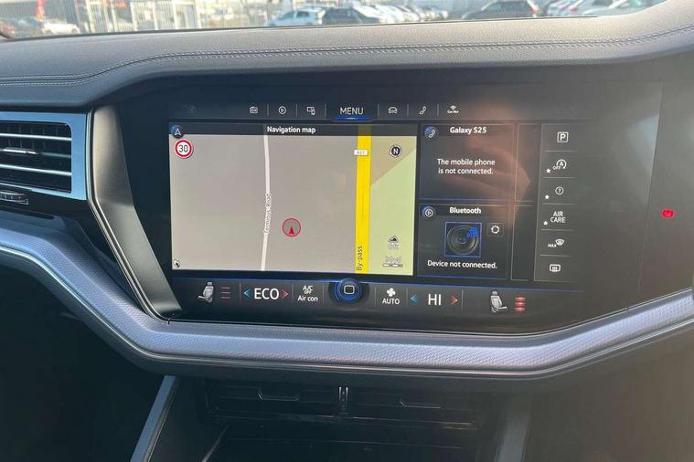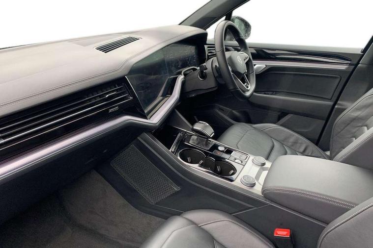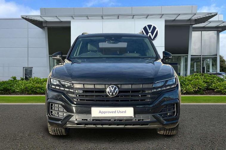 2D/3D map view, ACC - Adaptive cruise control with front assist, forward collision warning, distance monitoring, city emergency brake and speed limiter, Apple car play/Android Auto, Audible and visual fatigue detection system, Bluetooth hands free telephone connection, Car information display, Drive select with Damper control, Driver alert system, Driver profile selection, Dynamic road sign display camera controlled system with visual warning for traffic and road signs, eCall emergency system, Fully electric tailgate + keyless entry and start, Instrument cluster, MirrorLink, Multifunction camera, Multifunction computer premium with 7" colour display, One touch indicators with repeat function, Service interval indicator, Speed sensitive power steering, Start/stop system with regenerative braking, Tailgate power latch, Think blue trainer driver tips and journey analysis, Traffic sign recognition, Voice control system, Wireless Smartphone charger, 24 litre AdBlue tank, Torsen limited slip differential, DAB Digital radio, Dynamic navigation based on TMC+, Gesture control for infotainment system, Multi device interface (MDI) with illuminated USB-C connection, Music playback - MP3, WMA and AAC files, SD card slot, Simultaneous pairing of 2 compatible mobile devices, SMS functionality - read, compose and send SMS messages using touch-screen display, Title and cover art display, Volkswagen media control, Adaptive low beam for urban and motorway use, Auto dimming rear view mirror, Automatic coming/leaving home lighting function, Automatic headlights, Black anodised roof rails, Black door mirrors, Black rear diffuser, Black side window surrounds, Black upper and lower grille louvres extending into headlights and radiator grille, Body colour door handles, Body coloured wheel arches, C signature gloss black front air intake, Chromed tailpipe on the left and right integrated in the bumper with trapezoid design, Dusk sensor, Dynamic headlight range control, Electric front tilt/slide panoramic sunroof and fixed rear sunroof, Electrically power adjustable, heated, folding, auto dimming, front passenger exterior door mirror lowering function, Front and rear electric windows, Galvanised body, Gloss black finish B pillar, Gloss black rear diffuser, Headlight washers, Heat insulating darkened glass in side and rear windows, Heated windscreen washer jets, IQ.Light-LED matrix headlight, daytime running light with dynamic cornering light and indicator, LED 3rd brake light, LED rear fog light, LED rear number plate lights, Plastic scuff plates in door apertures, Poor weather light, Puddle lights, Rain sensor, Rear side wing doors, Rear wiper, 12V socket in front and rear centre console and boot, 2 Coat hooks on B pillar, 3 rear head restraints, 3 seat bench in 2nd row, 3 spoke sport heated leather multi-function sports steering wheel with gear shift paddles - generation 2, 4 way adjustable front head restraints, 4 way electric lumbar support for driver and front passenger, 4 zone climate control, 40:20:40 split folding slide/recline rear seat, B pillar vents, Black lower edge of door extending sills, Branded points of interest, Double sun visor for drivier and passenger with LED illuminated vanity mirrors, Electric luggage compartment cover, Folding rear centre armrest with 2 cupholders, Front + rear carpet mats, Front centre armrest with storage box, Gear shift indicator, Height/reach adjust steering wheel, Illuminated air conditioned glovebox, Isofix preparation for 2 rear child seats, Jack and tool kit, Leather trimmed gear knob with gloss black inlay/aluminum trim, Leatherette door trim, LED luggage compartment lighting, Load through provision, Luggage compartment with load lashing rings, Plastic loading edge protection, Rear seat remote release levers, Single front passenger seat, Soul black headlining, Stainless steel pedals, Innovision cockpit pack - Touareg, 3 point front seatbelts with pre-tensioners, ABS, Active bonnet, Automatic post collision braking system, Curtain airbags, Driver/Front Passenger airbags, EBD + Brake Assist, EDL, Electronic parking brake with auto hold, ESC with ASR, Front seat side impact airbags, Hill descent control, Hill start assist, Passenger airbag deactivate switch, Seatbelt warning lamp and buzzer, Three 3 point rear seatbelts, Two tone horn, Volkswagen roadside assistance, Warning triangle and first aid kit, Alarm with interior monitoring in cab, backup horn and towing protection, Child security locks for front and rear doors, Electronic engine immobiliser, Remote central locking, Black decorative trims on the side windows, High gloss black centre console,
