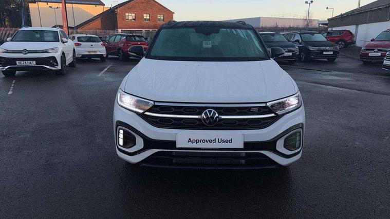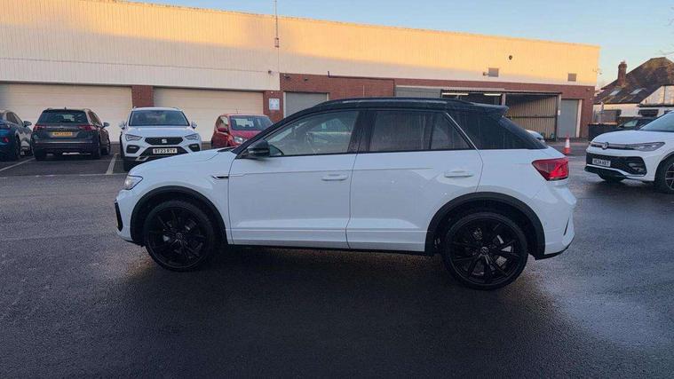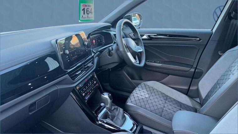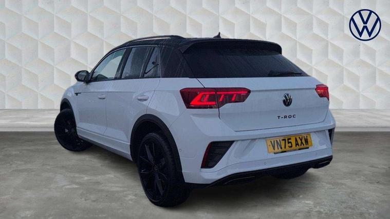 10.25" Digital cockpit pro, Advanced driver attention and drowsiness monitor, Emergency call service, Lane keeping system Lane Assist, Mobile phone interface, Modified key software - reduce switch off time for key status change to Long no motion, Online services, Park assist including front and rear parking sensors, Power assisted speed sensitive steering, Rear view camera, Service interval indicator, Tailgate/trunk lid release from outside, Think blue trainer driver tips and journey analysis, Warning sound and light for front seatbelts unfastened, Wireless app connect, Battery regeneration during braking, Rear shock absorption chassis with increased ride height, Start/stop function with battery regeneration, DAB Digital radio, Diversity antenna for FM reception, Music playback - MP3, WMA and AAC files, SD card slot, Simultaneous pairing of 2 compatible mobile devices, Title and cover art display, We Connect and We Connect Plus functionality, Advanced dynamic light assist for LED matrix headlights, Auto dimming interior rear view mirror, Automatic hazard lights activation under emergency braking, Black roof rails, Dynamic cornering light, Dynamic headlight range control with self adjusting whilst driving, Electrically adjustable and heated door mirrors, Extended roof spoiler, Exterior ambient lighting, Exterior mirrors aspherical on driver side, convex on front passenger side, External USB type C socket and charging sockets, Front windscreen wiper with intermittent wipe and 4 position delay, Heated rear window, Illuminated front grille, IQ LED matrix headlights, LED 3rd brake light, LED rear number plate lights, LED rear tail lights with dynamic turn signal, LED separate daytime running light, Light mode for poor weather, rain, fog or snow, Power windows with comfort operation and circuit breaker, Privacy glass for rear side windows and rear window, R-Line design body coloured bumpers, Rain sensor, Rear exhaust tailpipe, Rear fog light on one side and reversing lights on both sides, Rear side wing doors, Rear wash/wipe with intermittent wipe setting, Remote electrically foldable door mirrors, puddle lights and reverse activated passenger's door mirror, Tilting and sliding panoramic sunroof with rear panoramic sunroof, 12V power socket in centre console, 3 rear head restraints, 3 seat bench in 2nd row, 4 load lashing points in luggage compartment, Air care climatronic air conditoning system with active combination filter and 2-zone temperature control, Chrome plated radiator grille inserts, air vent surrounds and light switch surrounds, Door and side trim panel with leatherette insert, Drawer under drivers seat, Front + rear carpet mats, Front centre armrest, Front comfort sports seats, Front cupholders x 2, Front footwell illumination, Front reading light, Front scuff plates with R Line logo, Front seat back storage pockets, Glove compartment door with light, Instrument lighting, white adjustable panel illumination, Interior ambient lighting and surround lighting, Interior light delay, Isofix child seat preparation, Leather gearshift handle, Load-through provision with cup holder when folded down ('Unsplit rear seat bench, split folding backrest, with centre armrest), Luggage compartment lighting, Non-folding front passenger seat backrest, Single front passenger seat, Stainless steel pedals, Storage compartment in left and right luggage area, Storage compartment in rear doors, Storage compartments in driver and front passenger doors, Sunvisors with illuminated vanity mirrors, Variable boot floor, height adjustable and removable, Black design pack - T-Roc black edition plus, Easy open package with safelock - T-Roc, Sport pack with sports suspension - T-Roc, 3 point height adj front seatbelts + pretensioners, 3 point seatbelts in outer rear with ECE label, ABS, Child locks on rear doors, City emergency braking and pedestrian monitoring, Driver and front passenger airbag with front passenger airbag deactivation, Driver and front passenger safety-optimised head restraints, Drivers seatbelt reminder, Electronic parking brake, Electronic Stability Control (ESC) inc EDL (Electronic Differential Lock) and ASR (Traction Control), Front and rear passengers curtain airbag system including front side airbags, Front disc brakes, Hill start assist, Predictive pedestrian protection, Rear disc brakes, Two tone horn, Tyre pressure loss indicator, Volkswagen roadside assistance, Keyless locking and starting system keyless access with safelock, Gloss deep iron dash trim, 19" Misano black diamond turned alloy wheels with low rolling resistance and anti theft wheel bolts, Tool kit, Trims for alloy wheels, Tyre mobility kit including compressor and sealing foam,