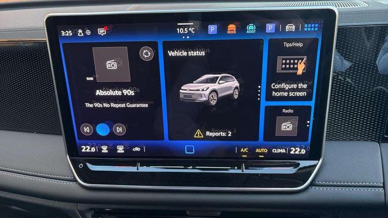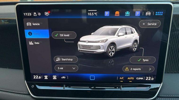Adaptive cruise control (ACC), Advanced driver attention and drowsiness monitor, Bluetooth mobile phone interface, Car2X technology, Digital Cockpit Pro - 10.25" high resolution dash display screen with customisable menus and information, Dynamic road sign display, E-Sim card for online connectivity, eCall emergency call service, Front Assist - Autonomous emergency braking with pedestrian and cyclist monitoring, Lane change system, Side assist, Rear traffic alert and Exit warning system, Lane keeping system Lane Assist, Oncoming vehicle braking when turning including swerve support, Park assistance plus with front and rear parking sensors, Power assisted steering with speed sensitive, Start/stop system with regenerative braking, Warning signal and warning light for front and rear seatbelts not fastened, Wireless App-Connect, Front wheel drive, Digital radio reception (DAB), Diversity antenna for FM reception, Auto dimming interior rear view mirror, Automatic headlight control system, Body coloured bumpers and air intake with chrome trim, Body coloured door handles, Body-coloured exterior mirror housings, Coming/leaving home lighting function, Heat insulating glass in side and rear windows, Heat insulating windshield, Heated rear window, High level 3rd brake light, Illuminated door handle recesses, Illuminated lightline between headlamps, Puddle lights and reverse activated passengers door mirror, Rain sensor windscreen wipers, Rear fog light on one side, reversing light on both sides, Rear side wing doors, Rear wiper, 12V outlet in center console rear and in luggage compartment, 12V socket in centre console, 3 bench rear seats in 2nd row, Air care climatronic 3 zone air conditioning system with rear air conditioning control panel, Carpet mats, front and rear, Ceramique headlining, Door and side trim panel in foam film and woven fabric, Front centre armrest, ISOFIX anchors for child seats on outer rear seats and front passenger seat compatible with i-Size, Mechanical rear seat release, Power adjustable lumbar support in front, Rear bench seat, split folding, longitudinally movable and folding with load-through hatch and centre armrest, Safety optimised front head restraints, Single front passenger seat, Sun visors with illuminated vanity mirrors, Three rear head restraints, Variable luggage compartment floor, Comfort package with park assist plus and Safelock - Tiguan, Design package - Tiguan Life/Match, 3 point seat belt for centre rear seats, 3 Point seat belts in front with pretensioners, 3 point seatbelts in outer rear with ECE label, Driver and front passenger airbag with front passenger airbag deactivation, Electronic parking brake with auto hold, Front and rear curtain airbags, Front and rear side airbags, Front centre airbag, Front disc brakes, Hill start assist, Manual child proof rear door locks, Rear disc brakes, Two tone horn, Warning triangle, Soul instrument panel,