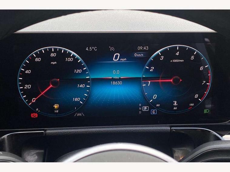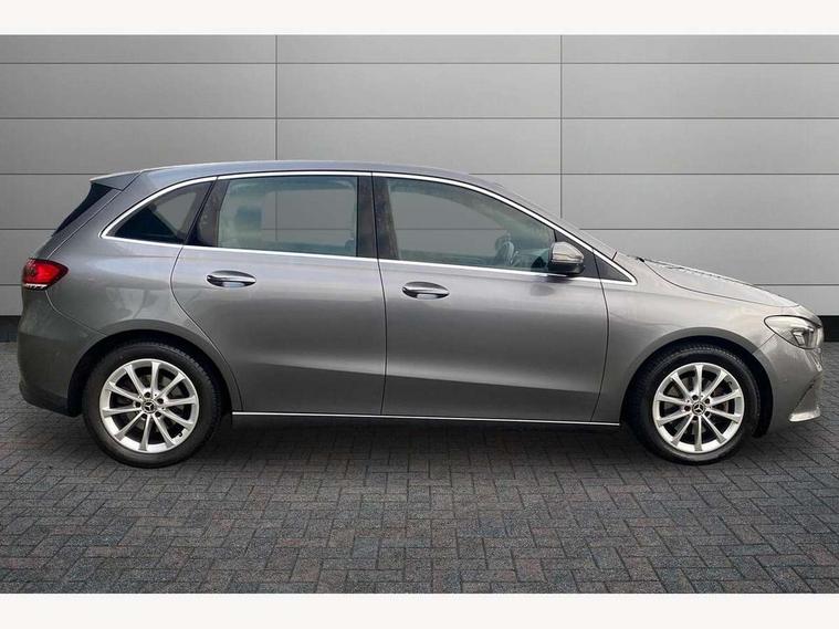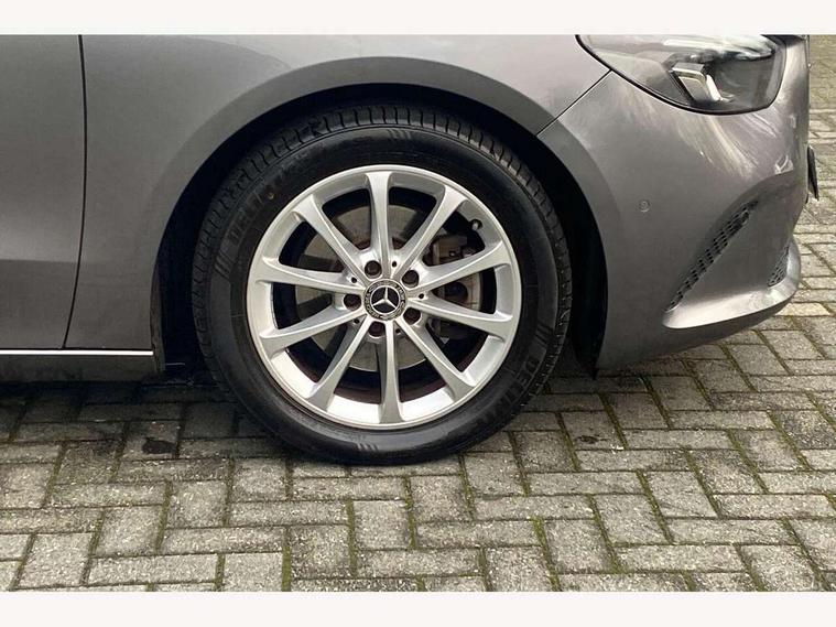 10.25" Digital instrument cluster display screen, 10.25" media display, 180 degree reversing camera with parking guidelines, Active lane keeping assist, Active park assist with parktronic system including front and rear parking sensors, Attention assist - Monitors steering behaviour and long journey fatigue, Brake pad wear indicator warning light, DYNAMIC SELECT with a choice of driving modes (ECO, Comfort, Sport, Sport+ and Individual), Easy-pack tailgate, ECO start/stop function, Fluid level warning indicator for fuel, oil, coolant and washer fluid, Hard-disk navigation, Hey Mercedes Voice activation, Lamp failure indicator, Mercedes me connect including emergency call system, accident recovery, breakdown and maintenance management, Outside temperature gauge, Pre-installation for private car sharing, Preinstallation for Mercedes Benz link, Service indicator (ASSYST PLUS), Trip computer in multifunction display with current consumption indicator, Comfort suspension, Rear axle torsion beam, DAB digital radio tuner, Dual bluetooth interface, 2 USB ports (type C), MBUX multimedia system with DAB digital radio and touchpad including satellite navigation, Mid-range sound system, 4 Electric Front and Rear windows, Active radiator shutters open for cooling air and close when not needed to improve aerodynamics and fuel efficiency, Adaptive brake lights, Aerial for GPS, Body coloured bumpers, Body coloured door handles, Body coloured side skirts, Chrome beltline strips, Chrome weather strip, Diamond radiator grille pins in black with two louvres painted in silver and chrome insert, Electric adjustable and heated door mirrors with integrated LED side indicators, Exhaust system - Twin trapezoidal tailpipes in polished stainless steel, Headlamp assist automatic headlamp activation, Heated glass rear windscreen + timer control, High level LED third brake light, LED high performance headlamps with integrated LED daytime running lights, LED tail lamp, Rain sensing windscreen wipers with two sensitivity settings, Rear fog lamp, 40:20:40 split folding rear seat backrests, Air vents with surround in silver chrome, Artico man-made leather/Fleron fabric upholstery, Automatic child seat recognition sensor, Black roof lining, Cup holder and stowage compartment lighting, Folding rear armrest, Freight packaging without tie-down hooks, Front and rear Handle recess/closing handle light in left and right, Front and rear head restraints, Front centre armrest with stowage, Front comfort seats, Front door sills with Mercedes Benz lettering, Front footwell lights, Front reading lamps in left and right console downlighter, Front seat cushion length adjustment, Front signal exit lamp in left and right, Front vanity light in left and right, Gearshift paddles on steering wheel, Heated front seats, Illuminated door sills, Illuminated glove compartment stowage, Interior lighting - 64 colour Ambient lighting, Luggage net on driver/front passenger seat backrest, Manually adjustable front seats, Manually height and reach adjustable steering column, Multifunction sports leather steering wheel with black topstitching and bezel in silver chrome, Oddments tray lighting, Rear reading lamp in support plate in left and right, Seat occupancy sensor for front passenger seat, Seats with adjustable head restraints, Spectacles compartment for driver, Sunvisors with illuminated vanity mirrors, Thermatic single zone climate control, Touchpad illumination, Touchpad on center console, Twin front cupholders, Two outer rear seat isofix and top tether child seat fixing points, Velour floormats, Light and sight package - B Class, Mirror package - B Class, Seat comfort pack - B Class, 3 rear three point seatbelts, Active bonnet pedestrian safety measure which detects an impact and raises bonnet, Active brake assist includes forward collision warning system with autonomous braking, Adaptive brake assist with hold function and hill start assist, Airbags - kneebag for driver, Anti-lock braking system (ABS) with brake assist, Childproof locks manually operated for rear doors and electrically operated for rear power windows, Crash responsive emergency lighting, Driver and front passenger head and sidebags, Driver and front passenger windowbags, Dual stage driver/passenger airbags, Electric parking brake, Electronic stability programme with acceleration skid control, ESP curve dynamic assist, Front and rear seatbelt reminder, Tyre pressure monitoring system, Warning triangle and first aid kit, Alarm system with immobiliser and interior protection -Thatcham category 1, Keyless entry lock/unlock, Remote central locking and crash sensor with emergency opening function, Light switch in high-gloss black with ring in silver chrome, Spiral look trim, 17" 10 spoke design alloy wheels painted in vanadium silver, Summer tyres, Tirefit tyre sealant kit,