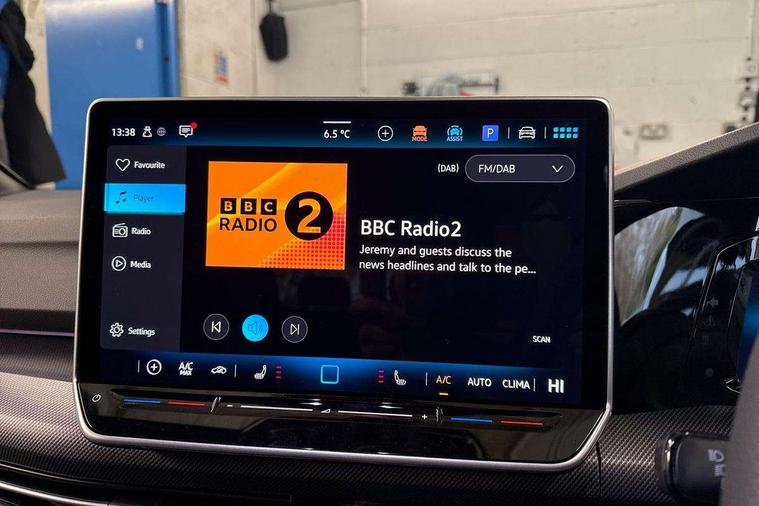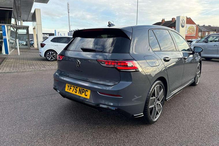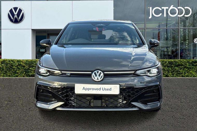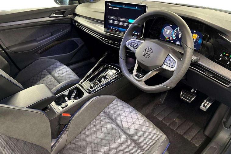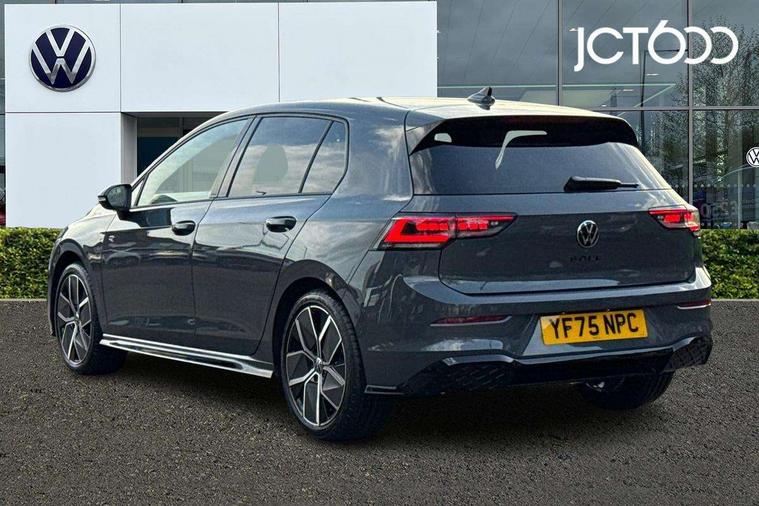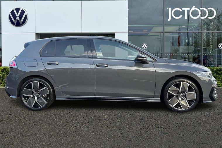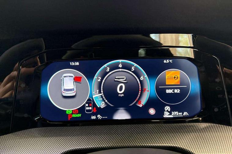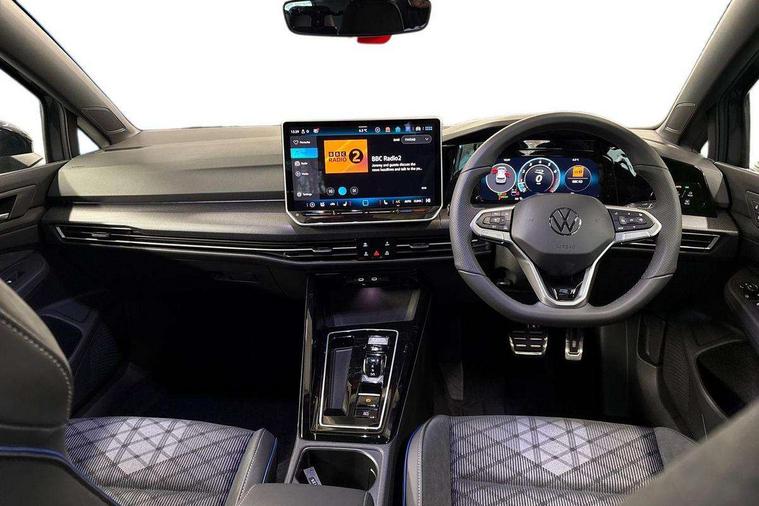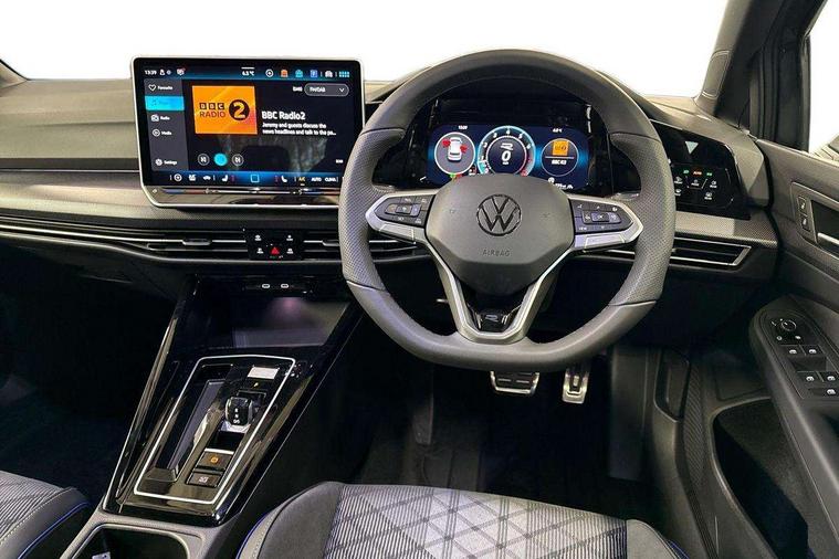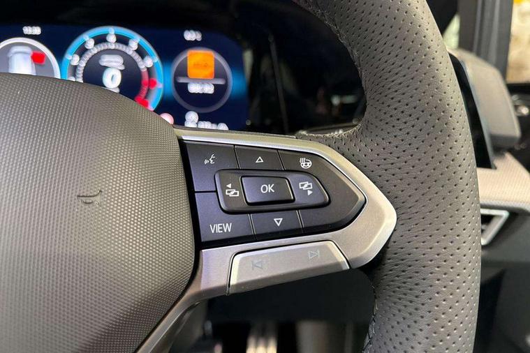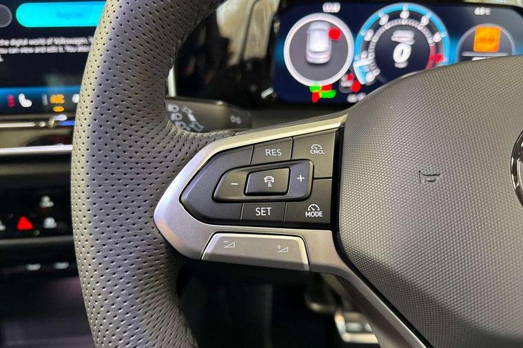 Activated carbon canister, Adaptive cruise control (ACC), Advanced driver attention and drowsiness monitor, Dynamic road sign display, Dynamic steering, E-Sim card for online connectivity, eCall emergency call system, Multi-color Digital cockpit pro, selection of different info profile possible, Multifunction front facing camera for distance control, Navigation system, Oncoming vehicle braking when turning including swerve support, Speed limiter, Speedo, rev counter, electronic odometer, trip, service interval display, exterior temperature and fuel gauge, Traffic jam assist, Voice enhancer and voice control, Warning signal and warning light for front and rear seatbelts not fastened, We connect plus preparation, We connect preparation, Wireless app connect, Hybrid propulsion system, Petrol Particulate Filter, Start-stop system with battery regeneration (recuperation - energy recovery during braking), XDS electronic differential lock for improved traction and handling, 2 USB C ports in front, 2 USB charging sockets on the centre console in the rear charging capacity upto 45W, Digital radio reception (DAB), Diversity antenna for FM reception, Gaming platform via car app, Infotainment system with 12.9" display, Mobile phone interface with inductive charging feature, 3rd brake light, Auto dimming rear view mirror, Automatic headlamp activation with Coming home and Leaving home feature, Body colored bumpers in R-Line style, Body colour door handles, Exterior ambient lighting, Exterior mirrors convex on the left and aspherical on the right, Front and rear electric windows, Heat insulating windshield made of laminated glass, LED separate daytime running light, Rain sensor, Rear exhaust tailpipe, Rear fog light on one side and reversing lights on both sides, Rear side wing doors, Rear windscreen washer and wiper with interval delay, Remote electrically foldable door mirrors, puddle lights and reverse activated passenger's door mirror, Volkswagen logo in front, illuminated lighting animation with wake up/goodbye scenario and illuminated door handles, Welcome light with surround lighting, 12V socket in front centre console, 12V socket in luggage compartment, 3 rear head restraints, 3 seat bench in 2nd row, Ambient lighting with 30 colour including LED light unit in front footwell with selectable light colour, Black roof lining, Brushed stainless steel pedals, Chrome plated radiator grille inserts, air vent surrounds and light switch surrounds, Door insert, side trim panel and arm support in leatherette, Front + rear black carpet mats, Front centre armrest, Front seat lumbar support adjuster, Integrated front head restraints, ISOFIX anchors for child seats on outer rear bench seats and on front passanger seat compatible for i-Size, Luggage compartment lighting, Manual height adjustable front passenger seat, Manually height adjustable driver seat, Plastic gear knob, Premium sports seats in front, Rear cupholder and loadthough, Sardegna cloth upholstery with front and outer rear seats Art Velour inner sides of bolsters, Single front passenger seat, Split folding backrest with centre armrest and unsplit rear seat bench, Sun visors with illuminated vanity mirrors, Titanium black instrument panel, Black exterior Styling package with Matrix LED headlights - Golf, Winter package - Golf DSG Estate/Hatchback, 3 point height adj front seatbelts + pretensioners, 3 rear three point seatbelts, ABS, Autonomous emergency braking front assist with pedestrian and cyclist monitoring, Child locks on rear doors, Driver and front passenger airbag with front passenger airbag deactivation, Electronic parking brake with auto hold, ESC (Electronic Stability Control), Extended pedestrian protection measures, Hill start assist, Rear disc brakes, Two tone horn, Tyre pressure loss indicator, Volkswagen roadside assistance, Anti theft wheel bolts, Preparation for alcohol interlock, Decorative inserts carbon grey for dashboard and front door trim panels, 18" Leeds alloy wheels, Tool kit for tyre mobility set, Tyre mobility kit Includes 12V compressor and tyre sealant,