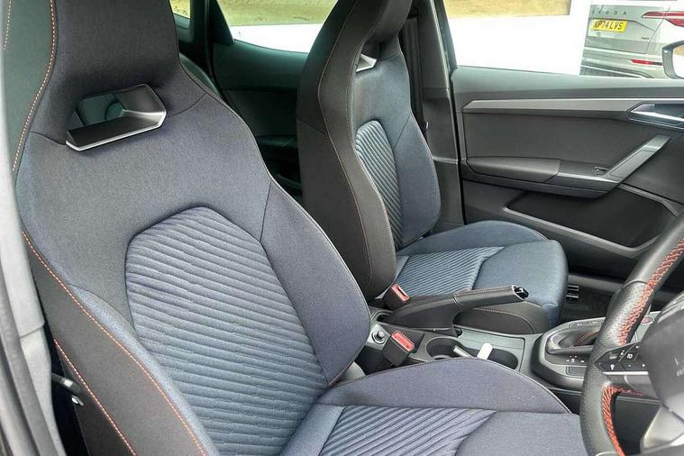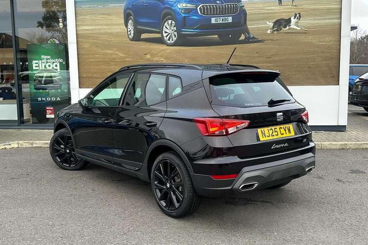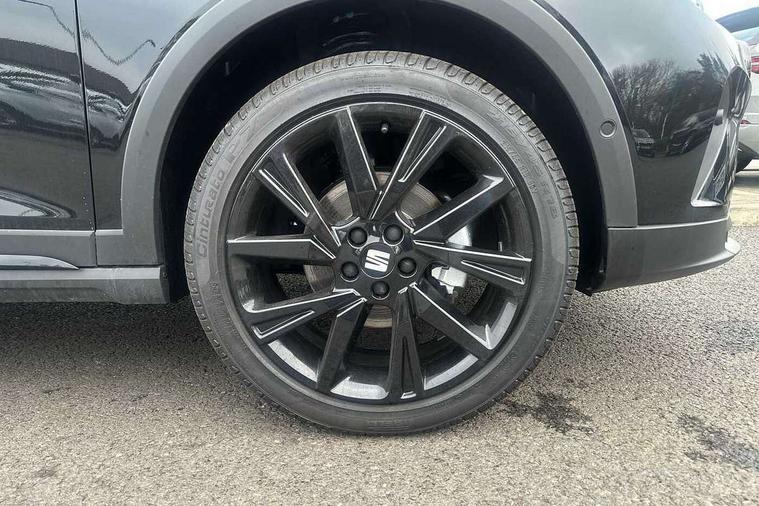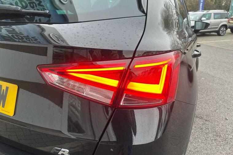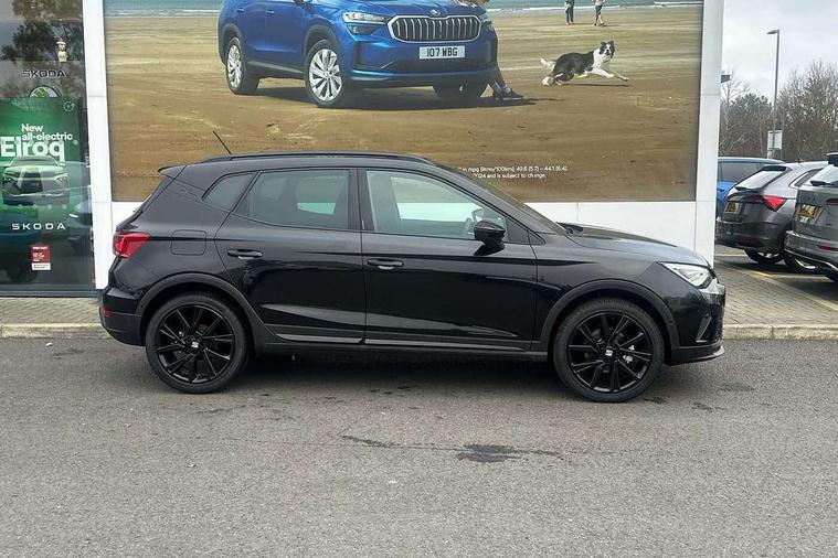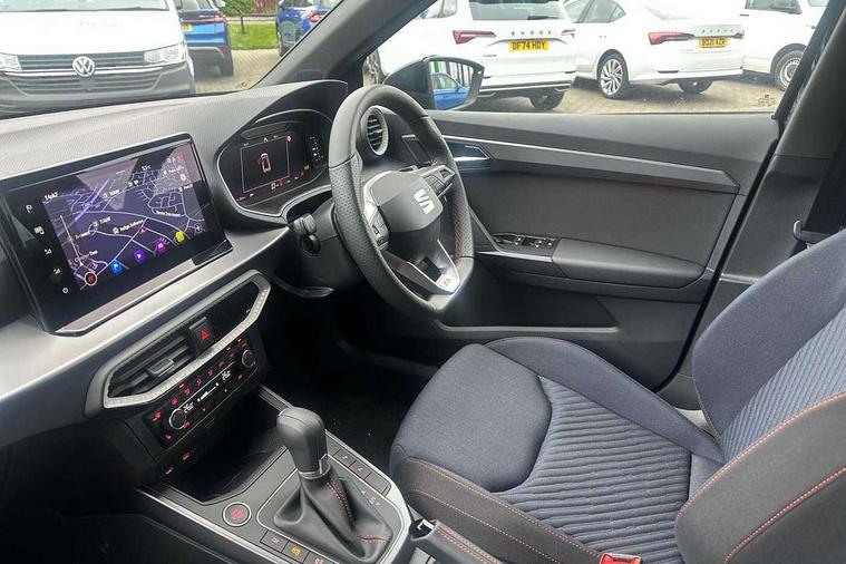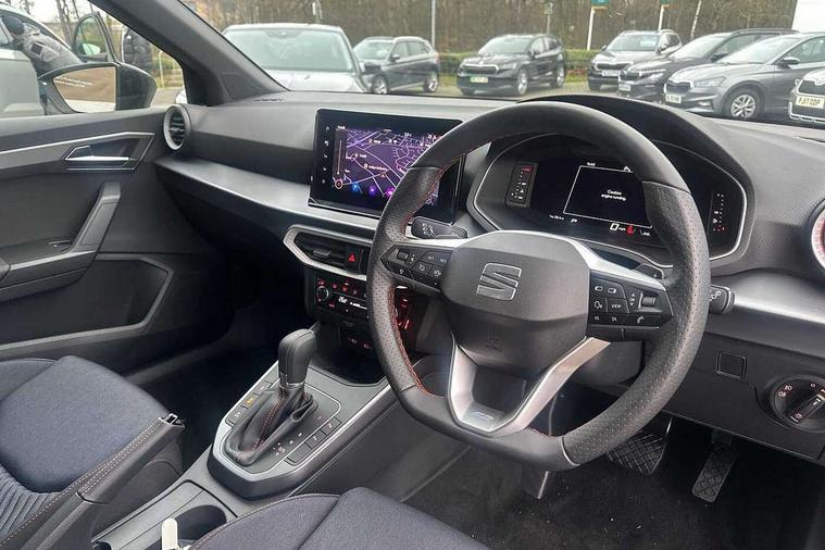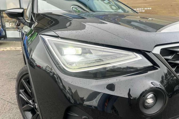 'Lights On' Reminder warning buzzer, 10" Digital cockpit, Digital clock, E-call, Electric speed sensitive power steering, Full link smartphone integration with mirror link, wireless apple carplay, Google android auto + USB Type C cable for apple and android devices, Lane keeping system, Low fuel warning light, Outside temperature display, Park assist system, Rear view camera, RPM counter, SEAT Drive profile - Four different models normal-sport-eco-individual, steering response, throttle response and gear shifts mode, Trip computer, Wireless phone charger, 6 speakers, 9.2" colour touchscreen with navigation system, voice control and USB port (type c), Bluetooth interface for hands free and audio streaming, DAB digital radio and AM/FM radio, Steering wheel mounted audio controls, Anti theft roof antenna, Auto dimming interior rear view mirror, Automatic activation of hazard warning lights, Black roof rails and window surrounds, Black side skirts, Body coloured bumpers, Body coloured door handle inserts, Dark tinted rear windows, Electric front/rear windows, Electrically adjustable, heated and folding door mirrors, Front fog lights with cornering function and rear fog light, FULL LED automatic headlights with dynamic headlight range control, coming and leaving home, LED daytime running lights, Lasered lettering on B pillar, LED rear tail lights and licence plate lights, Protective side mouldings, Rain sensing wipers, Rear side wing doors, Rear spoiler, Rear window wash/wipe, Roof colour door mirrors, Third brake light, Twin exhaust pipe styling hidden exhaust pipe, Visible VIN plate, 2 cupholders, 3 seat bench in 2nd row, 60/40 split folding rear seat, Aircare filter, Black interior roof, Double boot floor, Driver sunvisor with covered mirror + card holder, Dual zone climate control, Front courtesy light with front reading lights, Front seat back storage pockets, Gear shift indicator, Grey interior air vents, Heated front seats, Height adjustable front seats, Height/reach adjustable steering column, Illuminated air vent surrounds, Illuminated boot, Instrument lighting with brightness control, Interior ambient lighting, Interior light in footwell, central console and door panel, ISOFIX points in outer rear seats with top tether anchorage points, Microsuede cloth upholstery, Passenger sunvisor with vanity mirror, Perforated flat bottomed leather steering wheel/gear knob/handbrake with red stitching and FR logo, Potentiometer, Single front passenger seat, Sports cloth bucket seats, Steering wheel mounted gearshift paddles, Two front and three rear height adjustable headrests, Interior chrome pack - Arona, Safe and driving pack (S) - Arona, Safety and driving pack (M) - Arona, ABS, Active front headrests, Child locks on rear doors, Driver and front passenger airbags with front passenger airbag de activation, front side and curtain airbags, Emergency Brake Assist (EBA) and front assist, Front and rear seatbelt reminder, Hill hold control, Multi-Collision braking, Tiredness recognition system, Traction control, Tyre pressure monitoring system, Alarm with back up horn with tow away protection, Deadlock, Electronic engine immobiliser, KESSY Keyless entry and go, Locking wheel bolts, Remote central locking, Titan black dashboard, 18" Black alloy wheels,