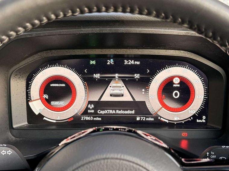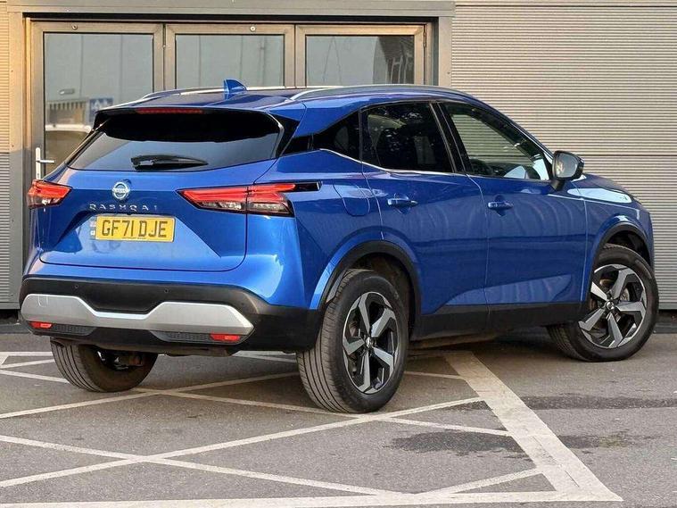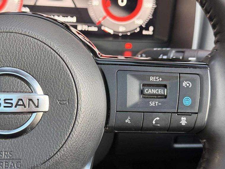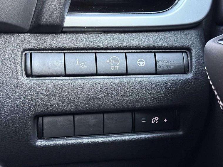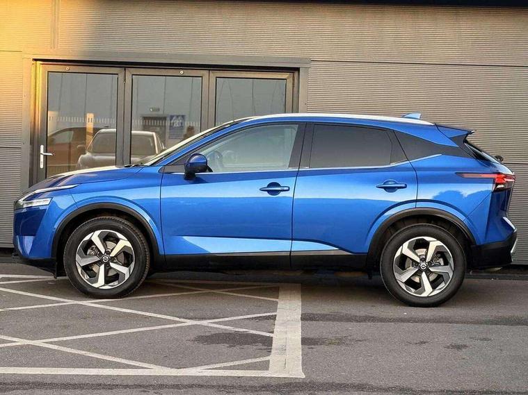 Blind spot warning, Drive modes (sport, normal, eco), Electric speed sensitive power steering, Emergency and breakdown call, Front and rear parking sensors, Full Digital 12.3" TFT Digital Combimeter, Idle stop/start system, Intelligent Cruise control (ICC), Intelligent driver alert system, Intelligent forward collision warning, Intelligent lane intervention, Lane departure prevention, Lane departure warning system, Moving object detection, Push button starter, Rear cross traffic alert, Traffic sign recognition with legal speed adjustment, Trip computer, 6 speakers, AM/FM audio system with DAB, Bluetooth audio streaming, Front USB connections (Type-A and Type-C), Rear USB charging only ports (Type-A and Type-C), 3rd brake light, Auto dimming rear view mirror, Auto rear wiper when reversing, Body colour mirror caps, Body coloured door handles, Bodyside mouldings, Chrome side window finisher, Electric auto folding door mirrors, Electrically adjustable and heated door mirrors with LED turn indicator, Fixed panoramic glass roof with electric sunshade, Follow me home headlights, High beam assist, Intelligent auto headlights, LED daytime running lights, LED rear lights, One touch front and rear electric windows with remote opening and closing, Partially body coloured bumpers, Privacy glass, Rain sensor, Rear roof spoiler, Rear side wing doors, Rear styling plate, Roof rails, Shark fin antenna, Splash free rain sensing wipers, Super UV and infrared cut glass, Three blink turn signal, 12v power socket in dashboard and luggage, 2 way electrical driver lumbar adjustment, 2x Rear coat hooks, 3 bench rear seats in 2nd row, 3 rear headrests, 4 grab handles, 6 Luggage hooks - 4 on floor, 2 on side, 60/40 split folding rear seat bench, Ambient lighting around centre console, Centre console storage tray, Chrome interior door handles, Cloth monoform upholstery, Driver and front passenger sunvisors with illuminated vanity mirrors, Driver seat back pocket, Dual zone automatic climate control with pollen filter, Front centre console and armrest, Front cupholder, Front door with bottle holders, Glovebox with light, Hard trunk cover, Height adjustable driver's seat, Height adjustable front headrests, Leather shift knob, Leather steering wheel, Luggage board system, Luggage space lighting, Manually adjustable passenger (slide recline + lifter), Multifunction steering wheel, Passenger seat back pocket, Rear armrest with 2 cupholders, Rear door bottle holders, Single front passenger seat, Soft PVC kneepad, Steering wheel switches, Tilt/telescopic adjustable steering wheel, Two rear isofix child seat anchorage points with top tether, Welcome light and console tray ambient lighting, Connectivity Pack - Qashqai, Tech Pack (Drive Assist + HUD), 3x3 point rear seatbelt pretensioners + load limiters, ABS, ESP, EBD and brake assist, Active brake limited slip, Auto hold function, Child locks on rear doors, Curtain and front side, far side airbags, Driver and passenger airbags, Driver, passenger and 2nd row rear seat belt reminder, Electronic parking brake, Front seatbelt pretensioners + load limiters, Height adjustable front seatbelts, Hill start assist, Intelligent blind spot intervention, Intelligent front emergency braking with pedestrian, cyclist recognition and junction assist, Intelligent rear automatic braking, Tyre pressure monitoring system, Vehicle dynamic control, Capless fuel filler, Engine immobiliser, Nissan i-key, Remote central door locking with deadlocking, Thatcham Cat.1 alarm, 18" Diamond cut alloy wheels,