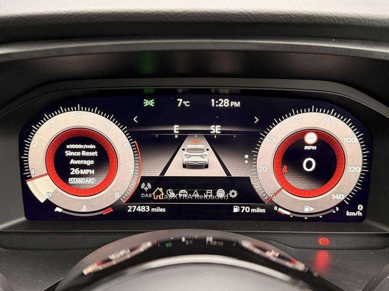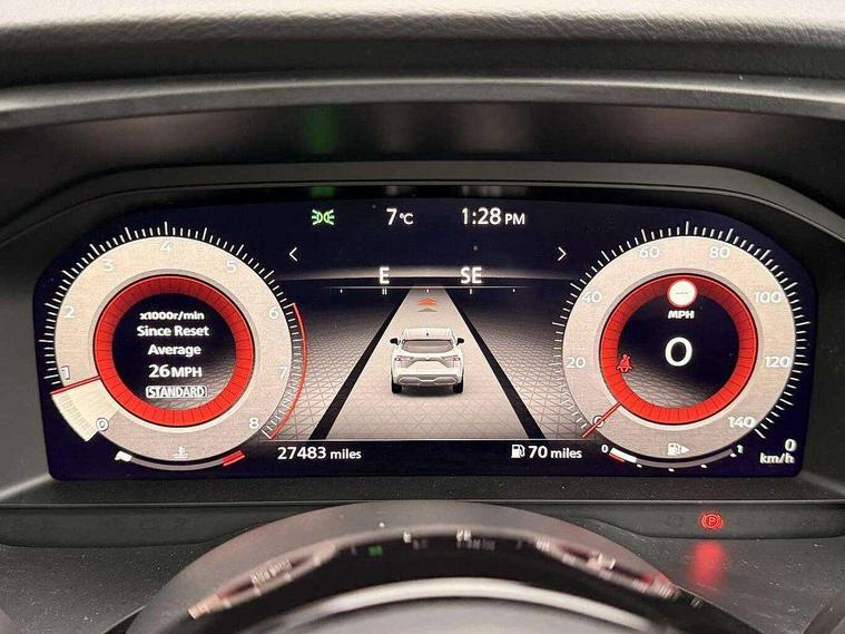 Android auto/Apple CarPlay (Wired), Blind spot warning, Drive modes (sport, normal, eco), Electric speed sensitive power steering, Emergency and breakdown call, Front and rear parking sensors, Full Digital 12.3" TFT Digital Combimeter, Google maps services - search, weather, 3D maps and Google street view, Idle stop/start system, Intelligent around view monitor, Intelligent Cruise control (ICC), Intelligent driver alert system, Intelligent forward collision warning, Intelligent lane intervention, Lane departure prevention, Lane departure warning system, Maximum speed limiter, Moving object detection, Nissan connect 12.3 inch touchscreen infotainment system, Nissan connect navigation, Push button starter, Rear cross traffic alert, Rear view camera, Remote control services - door locks, lights, horn and car locator, Telematics - notifications and connectivity services, TomTom live traffic services, Traffic sign recognition with legal speed adjustment, Trip computer, Virtual personal assistant and firmware over the air capability, Wireless apple carplay, 6 speakers, AM/FM audio system with DAB, Bluetooth audio streaming, Front USB connections (Type-A and Type-C), Rear USB charging only ports (Type-A and Type-C), Auto dimming rear view mirror, Auto rear wiper when reversing, Automatic hazard signal with emergency stop signal, Body colour mirror caps, Body coloured door handles, Bodyside mouldings, Chrome side window finisher, Door handle with button, Electric auto folding door mirrors, Electrically adjustable and heated door mirrors with LED turn indicator, Follow me home headlights, High beam assist, Intelligent auto headlights, LED daytime running lights, LED Headlights, LED rear lights, One touch front and rear electric windows with remote opening and closing, Partially body coloured bumpers, Privacy glass, Rear bumper with graphite insert, Rear reversing light (bulb lighting), Rear roof spoiler, Rear side wing doors, Rear styling plate, Shark fin antenna, Splash free rain sensing wipers, Super UV and infrared cut glass, Three blink turn signal, 12v power socket in dashboard and luggage, 2x Rear coat hooks, 3 bench rear seats in 2nd row, 3 rear headrests, 4 folding assist grip, 6 Luggage hooks - 4 on floor, 2 on side, 6-way manually adjustable driver's seat, 60/40 split folding rear seat bench, Ambient lighting around centre console, Centre console storage tray, Chrome interior door handles, Cloth monoform upholstery, Driver and front passenger sunvisors with illuminated vanity mirrors, Driver seat back pocket, Dual zone automatic climate control with pollen filter, Electrically adjustable lumbar support for driver, Front and rear door storage, Front centre console and armrest, Front cupholders x 2, Front door with bottle holders, Glovebox with light, Hard trunk cover, Height adjustable driver's seat, Height adjustable front headrests, Height adjustable passenger seat, Leather shift knob, Leather steering wheel, Luggage board system, Luggage space lighting, Manually adjustable passenger (slide recline + lifter), Multifunction steering wheel, Passenger seat back pocket, Rear armrest with 2 cupholders, Rear door bottle holders, Single front passenger seat, Soft PVC kneepad, Steering wheel switches, Sunglasses holder, Tilt/telescopic adjustable steering wheel, Two rear isofix child seat anchorage points with top tether, Welcome light and console tray ambient lighting, 3x3 point rear seatbelt pretensioners + load limiters, ABS with EBD and brake assist, Active brake limited slip, Auto hold function, Child locks on rear doors, Curtain and front side, far side airbags, Driver and passenger airbags, Driver, passenger and 2nd row rear seat belt reminder, Electronic parking brake, Front seatbelt pretensioners + load limiters, Height adjustable front seatbelts, Hill start assist, Intelligent blind spot intervention, Intelligent front emergency braking with pedestrian, cyclist recognition and junction assist, Intelligent rear automatic braking, Tyre pressure monitoring system, Vehicle dynamic control, Capless fuel filler, Engine immobiliser, Intelligent Key, Remote central door locking with deadlocking, Thatcham Cat.1 alarm, Interior instrumental panel B finisher, 18" Diamond cut alloy wheels, Tyre puncture repair kit,