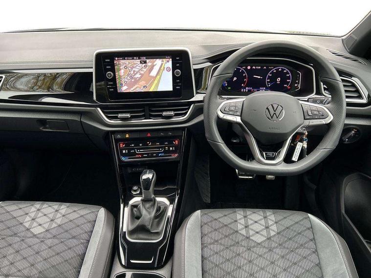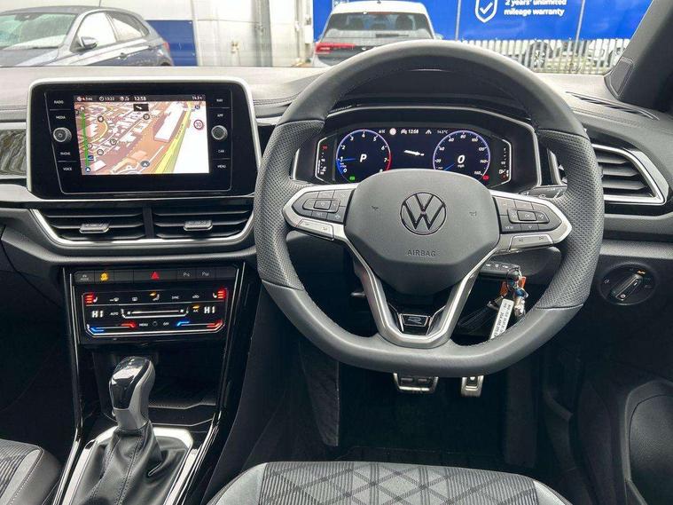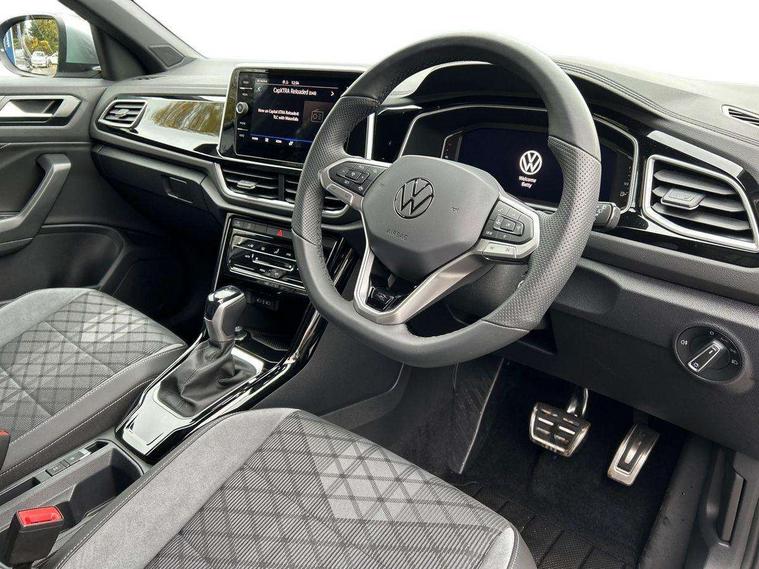 10.25" Digital cockpit pro, Advanced driver attention and drowsiness monitor, Emergency call service, Lane keeping system Lane Assist, Mobile phone interface, Modified key software - reduce switch off time for key status change to Long no motion, Online services, Park assist including front and rear parking sensors, Service interval indicator, Tailgate/trunk lid release from outside, Think blue trainer driver tips and journey analysis, Warning sound and light for front seatbelts unfastened, Wireless app connect, Battery regeneration during braking, Start/stop function with battery regeneration, DAB Digital radio, Diversity antenna for FM reception, Front and rear 6 speakers, Music playback - MP3, WMA and AAC files, Premium USB cable in choice of either Apple or Android smartphone compatibility, SD card slot, Simultaneous pairing of 2 compatible mobile devices, Title and cover art display, We Connect and We Connect Plus functionality, Auto dimming interior rear view mirror, Automatic hazard lights activation under emergency braking, Automatic headlight control with LED separate daytime running lights with coming/leaving home function, Body coloured exterior mirror housings and door handles, Electrically adjustable and heated door mirrors, Extended roof spoiler, Exterior mirrors aspherical on driver side, convex on front passenger side, External USB type C socket and charging sockets, Front windscreen wiper with intermittent wipe and 4 position delay, Heated rear window, LED 3rd brake light, LED rear combination lamps, LED rear number plate lights, Power windows with comfort operation and circuit breaker, Privacy glass for rear side windows and rear window, R-Line design body coloured bumpers, Rain sensor, Rear exhaust tailpipe, Rear fog light on one side and reversing lights on both sides, Rear side wing doors, Rear wash/wipe with intermittent wipe setting, Remote electrically foldable door mirrors, puddle lights and reverse activated passenger's door mirror, 12V power socket in centre console, 3 rear head restraints, 3 seat bench in 2nd row, 4 load lashing points in luggage compartment, Air care climatronic air conditoning system with active combination filter and 2-zone temperature control, Black roof lining, Chrome plated decorative trims, Chrome plated radiator grille inserts, air vent surrounds and light switch surrounds, Door and side trim panel with leatherette insert, Front + rear carpet mats, Front centre armrest, Front cupholders x 2, Front footwell illumination, Front reading light, Front scuff plates with R Line logo, Front seat back storage pockets, Glove compartment door with light, Instrument lighting, white adjustable panel illumination, Interior ambient lighting and surround lighting, Interior light delay, Isofix child seat preparation, Leather gearshift handle, Load-through provision with cup holder when folded down ('Unsplit rear seat bench, split folding backrest, with centre armrest), Luggage compartment lighting, Single front passenger seat, Stainless steel pedals, Storage compartment in left and right luggage area, Storage compartment in rear doors, Storage compartments in driver and front passenger doors, Sunvisors with illuminated vanity mirrors, Variable boot floor, height adjustable and removable, Driver assistance pack without proactive passenger protection - T-Roc, 3 point height adj front seatbelts + pretensioners, 3 point seatbelts in outer rear with ECE label, ABS, Child locks on rear doors, City emergency braking and pedestrian monitoring, Driver and front passenger airbag with front passenger airbag deactivation, Driver and front passenger safety-optimised head restraints, Drivers seatbelt reminder, Electronic parking brake, Electronic Stability Control (ESC) inc EDL (Electronic Differential Lock) and ASR (Traction Control), Front and rear passengers curtain airbag system including front side airbags, Hill start assist, Predictive pedestrian protection, Rear disc brakes, Two tone horn, Tyre pressure loss indicator, Volkswagen roadside assistance, Piano black decorative inserts in dashboard and front door trim panels, Trims for alloy wheels,