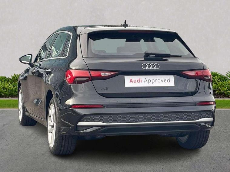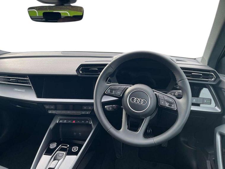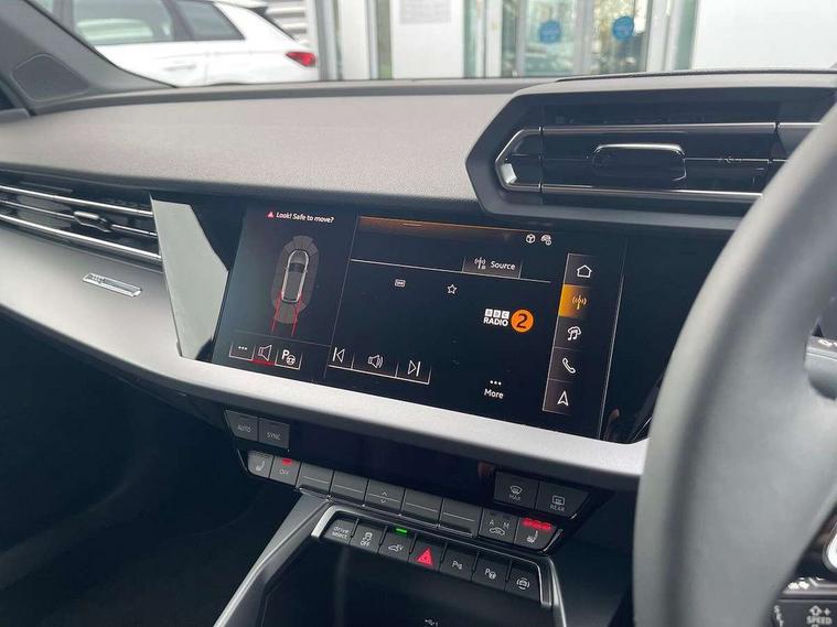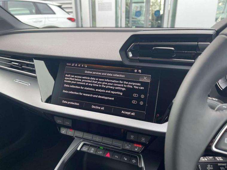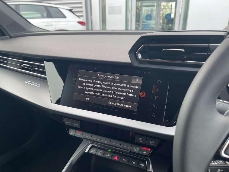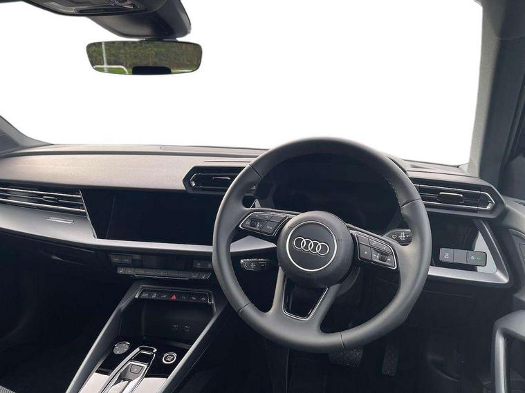 Adjustable speed limiter, Audi drive select, Audi smartphone interface with app store includes wireless Apple carplay, Android auto and Amazon alexa integration, Audi virtual cockpit plus - 12.3" full HD resolution dynamic digital instrument cluster, Automatic start/stop system with recuperation, Bluetooth interface, Camera based traffic sign recognition, Collision avoidance assistant, Cruise control, Distraction and Fatigue warning, e-Call (emergency call), Electromechanical power speed sensitive steering, Emergency assist, Lane departure warning system, MMI Navigation Plus with high resolution 10.1" colour touch screen display, Park Assist with parking system Plus, Service indicator, Trip computer, Voice control system with natural language interaction, 3 pin 10 amp domestic charging cable, CCS socket for DC charging, Charging cable for public charging, mode 3 (type 2), 32 A, Compact charging system, Industrial connector CEE 32 A, 230 V, length 1.6 m, Standard suspension, Type 2 socket for AC charging, Audi Phonebox light with wireless charging, Audi sound system - 10 loudspeakers including centre loudspeaker and subwoofer, DAB Digital radio, USB ports with charging function in the rear, 3rd brake light, Acoustic glass windscreen, Aluminium window trim, Auto dimming frameless rear view mirror, Body colour exterior mirrors, Body colour roof spoiler, Dipped beam, main beam, position light and turning light, Electrically adjustable/heated/folding/auto dimming door mirrors with integrated LED indications + kerb view function for passenger side, Exterior model badging, Front electric windows, Front radiator grill in high gloss dark chrome, Front side air inlets in grained matt black with silver frame, Heat insulating glass windscreen, LED daytime running lights, LED headlights and halogen rear lights, Light and rain sensors, Rear diffuser and grill in grained matt black with silver frame, Rear electric windows, Rear side wing doors, Rear window, rear door windows and rear side windows in clear glass, Rear wiper, 12V socket and storage compartment in front centre console, 3 seat bench in 2nd row, 3 spoke leather multifunction steering wheel with gear shift paddles, 3-zone deluxe automatic air conditioning, 4 way electrically adjustable lumbar support for driver and front passenger, 60/40 split folding rear seat bench, Black front and rear floor mats, Convenience auxiliary air conditioning, Front and rear headrests, Front centre armrest, Front door sill trims with aluminium inlay, Heated front seats, Height and reach adjustable steering wheel, Manual boot compartment lid, Manually adjustable front seats, Routine cloth upholstery with front sports seats, Seat side bolsters, Single front passenger seat, Steel grey cloth headlining, Aluminium interior elements pack - A3, LED interior lighting pack -A3, 3x3 point rear seat belts, Acoustic vehicle alerting system, Driver and front passenger airbag with passenger airbag deactivation, Electronic Stabilisation Control (ESC) including ABS, ASR and EDL, First aid kit with warning triangle and 2 safety vests, Front side airbags with head airbags and interaction airbag, Hill hold assist, Pre-sense front with pedestrian and cyclist detection, Seatbelt monitoring, Tyre pressure loss indicator, Anti theft alarm, Anti-theft wheel bolts, Electronically operated child locks, Immobiliser, Remote central locking with safelock, Black dashboard, Inlays in volcano grey fine paint finish, Tyre repair kit,