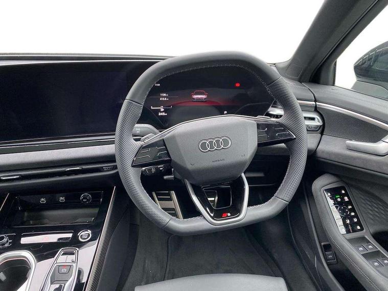 Adaptive cruise assist plus, Audi application store, Audi assistant, Audi connect emergency call and service, Audi connect with Amazon Alexa Integration, Audi digital key, Audi drive select, Audi phone box with wireless charging, Audi virtual cockpit, Automatic start/stop system with coasting functionality, Bluetooth interface, Emergency assist, Lane departure warning with emergency assist, Luggage compartment lid with Electric opening / closing, MMI 10.9" front passenger touch display, MMI navigation plus with high resolution 14.5" OLED touchscreen colour display, Power assisted steering, Service interval indicator, Side assist and exit warning with rear cross-traffic assist and rear turn assist, Smartphone interface includes wireless Apple carplay/Android Auto, Voice control system, Quattro with ultra technology, Audi sound system impressive sound with 10 loudspeakers including centre speaker and subwoofer, 6-channel amplifier with a total output of 180 watts, DAB Digital radio, USB ports with charging function, Audi Matrix LED technology, Auto dimming rear view mirror, Automatic-dynamic headlight range control, Black door handle inserts, Dipped beam, main beam, position light, dynamic indicator and cornering light, Door mirrors - electrically adjustable, heated, folding and auto dimming on both sides, Dynamic light scenarios of the coming home/leaving home function when stationary, Electric front/rear windows, Exhaust-pipe in dark chrome, Frameless auto dimming interior rear view mirror, Front illuminated aluminium inlay door sill trims with S logo, Headlight cleaning system, LED headlights Plus incl. digital daytime running lights, turning light, all-weather light, motorway light, manouevring light and intersection light, LED rear lights pro incl. brake lights, tail lights, rear number plate lights, reversing lights, continuous light strip, LED third brake light, Privacy glass, Rain and light sensors, Rear and side windows with heat insulating glass, Rear boot, Rear side wing doors, Sport exterior inc Radiator grille, air inlets and diffuser in scandium grey as well as inlay in diffuser in selenite silver, White rhombus logo projection light in exterior mirrors, Windscreen with heat insulating and acoustic glazing, 3 seat bench in 2nd row, 3-spoke Sport leather steering wheel flat top and bottom with multifunction and shift paddles, 4 way electric lumbar support for driver and front passenger, 4 zone deluxe automatic climate control, 40:20:40 split folding rear seat bench with centre armrest and cup holders, Centre armrest, front- adjustable angle with four settings, Dinamica microfibre/Artificial leather upholstery, Electrically adjustable front seats, Front head restraints, Heated front seats, i-Size child seat mounting on the front passenger side and outer rear seats, i-Size and top tether on the outer rear seats, Manual steering wheel adjustment, Rear headrests, Single front passenger seat, Sport front seats, Stainless steel pedals and footrest, Steering wheel trim in chrome look, S emblem, steering wheel grips in perforated leather and contrasting stitching, Ambient lighting package plus - A6, Black exterior package - A6, Drive and Park assistance package - A6, Protective warning assistance package - A6, 3x3 point rear seat belts, Acoustic vehicle alerting system, Black seat belts, Convenience key with safelock, Driver and front passenger airbags, EBD - Electronic brakeforce distribution, Electric rear child safety lock, Electromechanical parking brake, Electronic Stability Control (ESC) including ABS, ASR and EDL, First aid kit with warning triangle and vests, Front passenger airbag deactivation, Proactive occupant protection, front, side and rear, Red brake calipers, Seatbelt monitoring, Side airbags in front and rear with head airbag system and front interaction airbag, Standard 18"steel disc brakes front and rear, Tyre pressure monitoring system, Anti theft alarm, Anti-theft wheel bolts, Immobiliser, Keyless Go, Remote central locking, Accents in the interior in aluminium look, Carbon square structure inlays, Upper and lower interior elements in dinamica microfibre, Wraparound interior elements in artificial leather, Tyre repair kit,