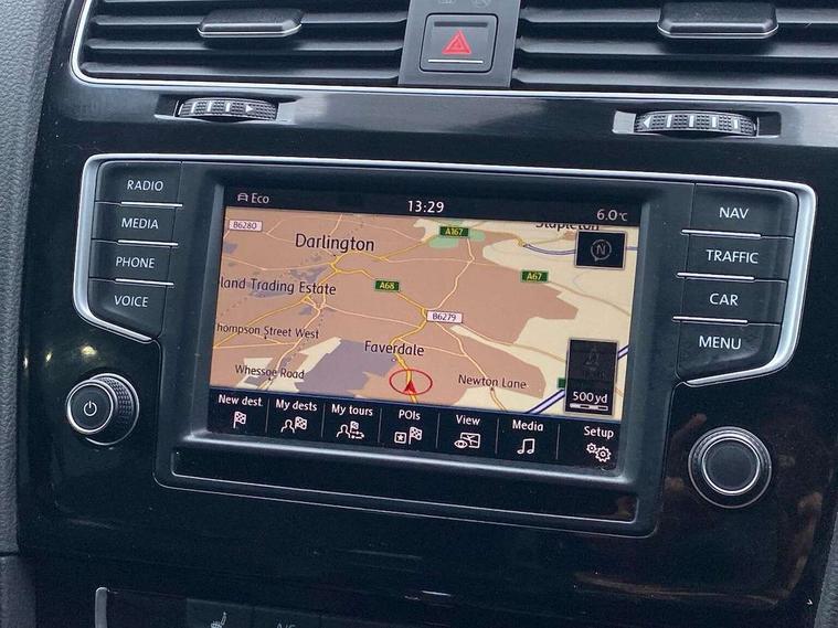 'Lights On' Reminder warning buzzer, Bluetooth Telephone preparation, Brake pad wear indicator warning light, Cruise control + speed limiter, Driver alert system, Driver profile selection, Exterior temperature gauge, Front and rear parking sensors, Instrument cluster in white, Multifunction computer - Midline, PAS - speed related, Rev counter, Traffic Master traffic alert system, Trip and service interval display, Warning buzzer and light for front seatbelts unfastened, Diesel particulate filter, Lowered sports suspension, 8 Speakers, Auxiliary input socket, Composition media system with Radio/CD/MP3, DAB Digital radio, iPod adaptor, MDI with USB/iPod connection cables, SD card slot, Auto dimming rear view mirror, Black rear diffuser, Body colour bumpers, Body colour door handles, Body colour door mirrors with integral indicators, Body colour rear roof spoiler, Cherry red rear light cluster, Chrome surround for front fog lights, Chrome trimmed front air intake surrounds, Chrome trimmed radiator grille louvre inserts, Coming/leaving home lighting function, Cornering front fog lights, Dusk sensor + auto driving lights, Electric front windows, Electric rear windows, Electrically adjustable and heated door mirrors, Heat insulated tinted glass 65% light absorbing from B pillar back, Heated rear windscreen, LED rear lights, Rain sensor, Range adjustable headlights, Rear windscreen washer and wiper with interval delay, Silver roof rails, Twin exhaust tailpipe, Windscreen wipers/ intermittent wipe + 4 position delay, 12V socket in luggage compartment, 3 rear headrests, 3 spoke steering wheel, 4 boot load lashing points, 60/40 split folding rear seat, Ambient lighting, Bag hook in luggage compartment, Courtesy light delay, Cover for storage compartment in centre, Dust/pollen filter, Front + rear carpet mats, Front centre armrest with storage box and rear air vents, Front footwell illumination, Front seat back storage pockets, Grab handles, Height/reach adjust steering wheel, Illuminated vanity mirrors, Isofix preparation for 2 rear child seats, LED reading lights, Load through provision with rear centre armrest and cupholders x2, Lockable, illuminated, cooled glovebox, Luggage compartment cover, removable, Luggage compartment lighting, Multifunction leather steering wheel with leather gear knob/handbrake grip, Storage compartment in roof console with cover, Storage compartments in doors, Storage drawer under driver's seat, Sun visors, Variable boot floor, height adjustable and removable, White adjustable panel illumination, Mirror pack - Golf, 3 point height adj front seatbelts + pretensioners, 3 rear 3 point seatbelts, ABS, Child locks on rear doors, Door open warning reflectors, Driver/Front Passenger airbags, Driver/Passenger whiplash optimised head restraints, Drivers knee airbag, Electronic parking brake with auto hold, ESP with EDL + ASR, Front and rear curtain airbags, Front passenger airbag deactivation, Front side airbags, Fuel cut off safety device, Hydraulic Brake Assist (HBA), Pre crash system, Tyre pressure monitor, Warning triangle and first aid kit holder, Alarm with interior protection, Electronic engine immobiliser, Remote central locking with 2 remote folding keys, Chrome air vent surrounds, Chrome-plated light switch surround, Cyclone decorative inserts, Decorative effect painted inlay - Silver, Gloss black decorative inserts in dash, Space saver spare wheel,