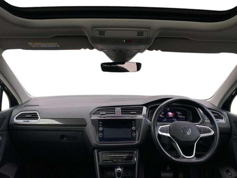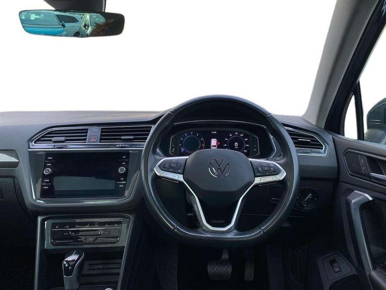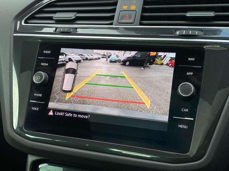 Adaptive cruise control ACC stop and go including speed limiter, App-Connect incl. App-Connect Wireless for Apple CarPlay and Android Auto, Bluetooth phone integration system, Digital Cockpit Pro - Active info display, Distance control assist, Driver alert system, Driver profile selection, Dynamic road sign display, eCall emergency call system, Electromechanical speed sensitive power steering, Engine start/stop button, Lane keeping system Lane Assist, Lights on warning, Motorised electric tailgate operated via key fob, drivers door and foot movement under tailgate, Multifunction front facing camera, Outside temperature display, Premium multifunction display with multi colour display, Remote control boot opening, Rev counter, Revision / skills operating concept travel assistant, Service interval indicator, Speed limit display, Start/stop system with regenerative braking, Tailgate/trunk lid unlocking from outside, Trip computer, Warning sound and light for doors and tailgate open, Battery regeneration during braking, XDS electronic differential lock for improved traction and handling, 2 USB-C ports in the front, 1 USB-C charging socket on the center console in the rear, 4 X 20 watt output, 8 Speakers, Diversity antenna for FM reception, Radio, SD card slot, Simultaneous pairing of 2 compatible mobile devices, SMS functionality - read, compose and send SMS messages using touch-screen display, Title and cover art display, Aluminium door sill protectors, Auto dimming interior rear view mirror, Automatic headlight control system, Body colour door handles, Body coloured bumpers, Body coloured door mirrors with integrated indicators, Coming/leaving home lighting function, Dynamic headlight range control, Front and rear electric windows, Heated rear window, High level 3rd brake light, IQ light-Adv high beam, Dynamic light assist for LED matrix headlamp+LED separate DRL+DCL, dark red rear LED tech, Poor weather light+ cornering light, Laminated safety glass windshield, heat and sound insulating, LED rear number plate lights, Poor weather light and cornering light, Privacy glass for rear side windows and rear window, Rain sensor windscreen wipers, Rear exhaust tailpipe, Rear fog lamp, Rear side wing doors, Rear windscreen washer and wiper with interval delay, Side and rear windows in heat insulating glass, Tilting and sliding panoramic sunroof with rear panoramic sunroof, Trailer Stability Programme, Windscreen wipers/ intermittent wipe + 4 position delay, 12V outlet in center console rear and in luggage compartment, 12V outlet in front and tray, 2 cup holders in front, 2 LED front reading lights, 2 LED rear reading lights, 3 bench rear seats in 2nd row, 3 rear headrests, 4 load lashing points, 40:20:40 split folding rear seats, Air Care Climatronic 3 zone automatic climate control with enhanced air filter and controls in the rear, Backrest release for left front seat, Climate control unit rear with touch function, Door and side trim panel in foam film and woven fabric, Front + rear carpet mats, Front centre armrest, Front footwell illumination, Front seats head restraints (x-adjustment), Height adjustable front seats, Height/reach adjust steering wheel, Instrument lighting white adjustable panel illumination, Interior light with delay, Isofix Preparation 2 Rear child seats, Leather gear knob, Lockable cooled glovebox, Luggage compartment lighting, Luggage net, Rear bench seat asymetrically split folding, longitudinally movable and folding with load-through hatch and center armrest, Remote unlocking for rear seat backrest, Removable luggage cover, Removable rear headrests, Safety optimised front head restraints, Single front passenger seat, Sliding/reclining rear seats, Standard rear seat release, Storage compartment in driver's door, Storage compartment in passenger's door, Storage compartment in rear doors, Storage compartments in luggage area left and right, Storage tray on dashboard, Sun visors with illuminated vanity mirrors, Top front comfort seats, Variable boot floor, height adjustable and removable, Ambience pack - Tiguan, Chrome pack - Tiguan, Driver assistance pack - Tiguan, Easy open and close pack with safelock - Tiguan, Park assist pack - Tiguan, 3 point seat belt for centre rear seats, 3 point seat belts with seat belt pretensioners for the outer rear seats, Active bonnet, Curtain airbags for front and rear passengers, Driver/Front Passenger airbags, Drivers knee airbag, Electronic parking brake with auto hold, Electronic Stability Control with driver steering recommendation, ABS, ASR, EDL, EDTC and trailer stabilization, Front assist with autonomous emergency braking (for Adaptive Cruise Control ACC up to 130 mph), Front disc brakes, Front passenger airbag deactivation, Front side airbags, Height adjustable front 3 point seatbelts + pretensioners, Hill hold control, Manual child proof rear door locks, Pedestrian monitoring system, Power assisted brakes, Proactive passenger protection system in combination with front assist, Rear disc brakes, Rigid safety cell with front and rear crumple zones, Two tone horn, Warning sound and light for front seat belts if unfastened, Anti theft alarm system with interior monitoring, backup horn and towing protection, Anti theft wheel bolts, Central locking system with safelock radio remote control and 2 remote control folding keys, Electronic engine immobiliser, Tool kit,