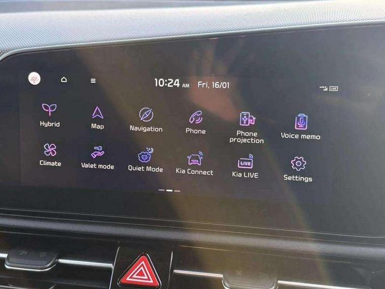 10.25" driver display screen, 10.25" touchscreen satellite navigation, Apple car play/Android Auto with voice control, Blind spot collision avoidance assist, Customisable Head Up Display, Drive mode select (Eco, normal, sport, snow), E-call, Emergency stop signalling system, Forward Collision-Avoidance Assist (FCA) 1.5 - City/Pedestrian/Cyclist/Junction turning, Front parking sensors, Highway Driving Assist (HDA), Intelligent speed limit assist, Kia Connect (UVO), Lane Following Assist (LFA), Lane keep assist, Motor driven power steering, Parking collision avoidance assist (PCA), Rear cross traffic collision avoidance assist (RCCA), Rear parking sensors, Remote smart parking assist, Reversing camera system, Safe exit warning (SEW), Smart cruise control with stop and go functionality, Smart power tailgate, Trip computer with distance/fuel consumption/average speed, Wireless Smartphone charger, 220v AC Inverter, 'Shark fin' mobile antenna, 6 speakers, Bluetooth with music streaming, DAB Digital radio, Steering wheel mounted controls, USB port for connection of a media device, Acoustic windshield, All round electric windows with drivers and front passenger auto up/down and safety function, Auto dimming rear view mirror, Automatic defog system, Automatic headlight control system, Black grille with chrome surround, Black window surrounds, Body colour bumpers, Body colour door mirrors, Body colour exterior door handles, Deluxe door scuff plates, Electrically adjustable and heated door mirrors with LED turn indicator, Electrically folding door mirrors, Front and rear chrome skid plates, Front fog lights, Gloss black wheel arches, Heated rear window, LED daytime running lights, LED Headlights, LED High mounted brake light, LED rear combination lights, Privacy glass - Rear windows and tailgate, Rain sensing front wipers, Rear fog lights, Rear roof spoiler, Rear side wing doors, Rear wiper, Roof rails, Solar glass windscreen, Sunroof with tilting and sliding function, Welcome and follow-me home light functionality, Windscreen Washer Level Warning, 12V socket in front, 12V socket in luggage compartment, 3 seat bench in 2nd row, 60:40 split remote folding rear seats, All-round height adjustable headrests, Alloy pedals, Artificial leather centre console storage box, Artificial leather steering wheel, Artificial leather upholstery, Automatic air conditioning, Centre console cupholder, Chrome coating interior door handles, Driver power adjusted memory seat, Driver/passenger sunvisors with illuminated vanity mirrors, Drivers seat power lumbar support, Front and rear door storage, Front passenger 1 x USB-C charging port, Front passenger power adjusted seat, Front passenger relaxation seat, Glove box, Heated front seats, Heated outer rear seats, Heated steering wheel, ISOFIX Child seat top tethers and anchor fixings, LED Front cabin, rear & luggage compartment lights, Luggage area load cover, Luggage board, Manually adjustable steering column, Paddle shifts, Power adjustable lumbar support on front passenger seat, Rear centre armrest with cupholder, Rear passenger 2 x USB-C charging ports, Seatback pocket - driver, Seatback pocket - front passenger, Shift by wire SBW, Single front passenger seat, Ventilated front seats, Ventiliation ducts to rear compartment, 3 point seatbelts on all seats, ABS, Automatic unlocking of doors in case of impact, Curtain and side airbags, Dual shell horn, Electric parking brake with auto hold function, Electronic stability control, Front airbags, Front passenger airbag cut-off switch, Height adjustable front seatbelts, Hill start assist control (HAC), Knee airbags, Seatbelt reminder warning, Traction control, Tyre pressure monitoring system, Customisable automatic door locking, Customisable automatic door unlocking, Deadlocks, Engine Start/Stop Button with Smart Entry System, Locking wheel nuts, Manual child locks, Rear occupant alert, Smart key with motion sensor, Thatcham category 2 security alarm and immobiliser, Visible vehicle identification number, Warranty - 7 Years/ 100, 000 miles, Centre fascia chopped carbon, 18" Alloy wheels, Tyre mobility kit,
