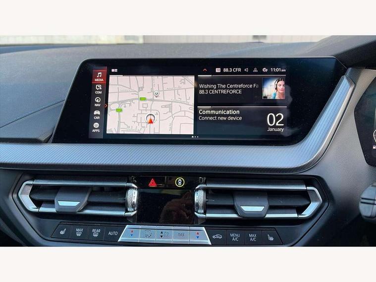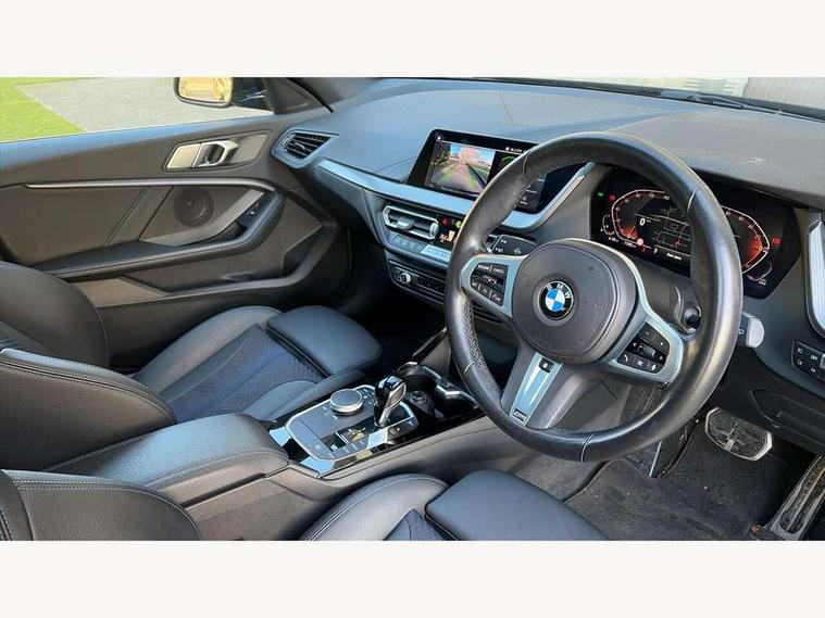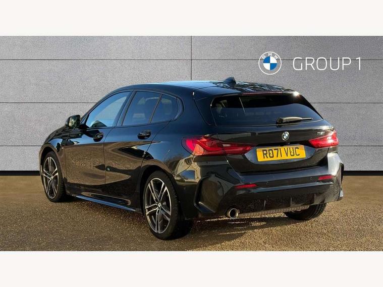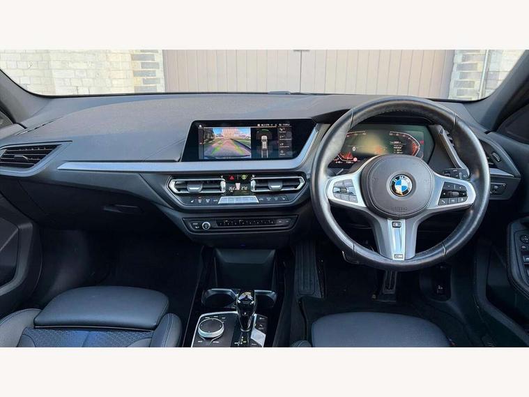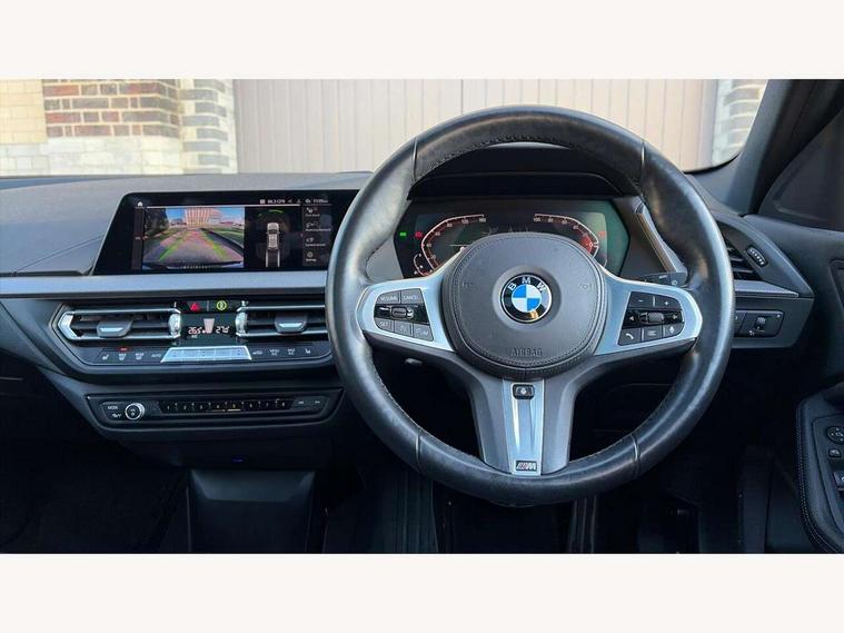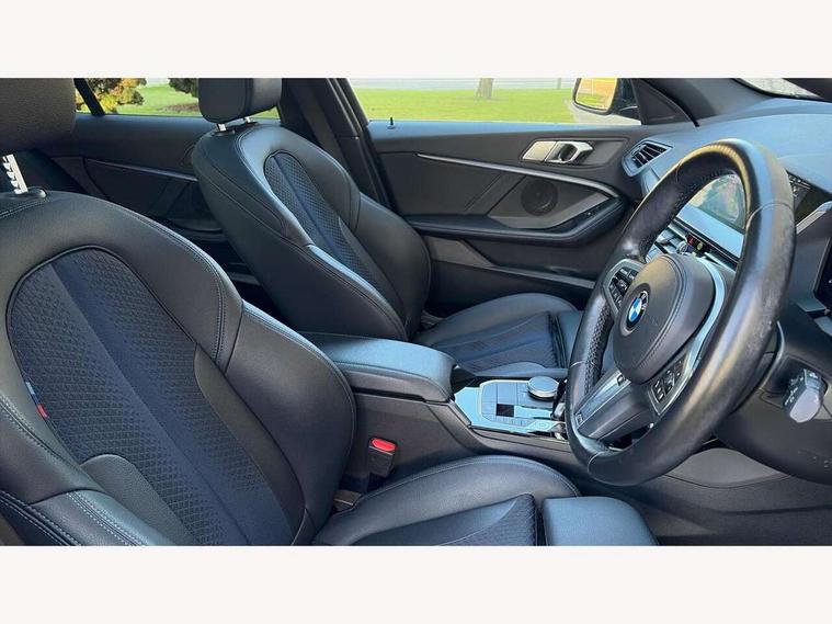 Active guard plus, Attentiveness assist, BMW Online services, BMW Teleservices, Check Control warning system for monitoring of lights and door/luggage compartment open warning, Connected eDrive Services, Eco pro mode, Integrated owners handbook, Oil sensor for level and grade, On board computer, Optimum shift indicator, Personal Profile, Pull away assistant, Speed limiter, Aluminium lightweight construction, Anti roll bar front and rear, Balancer shaft, Double VANOS, Drive Performance Control, Electronic differential lock, High precision injection, M sport suspension, Petrol Particulate Filter, VALVETRONIC engine management, Bluetooth audio streaming, DAB Digital radio, Auto dimming rear view mirror, Automatic headlight beam throw control, Automatic windscreen wipers and automatic headlight, Body colour door handles, Body colour mirror caps, Chrome 'M' logo side designation, Chrome exhaust tailpipe in single, round (Exhaust tailpipe, stainless steel - single, round), Chrome kidney grille frame with Satin Aluminium struts, Direction indicator side lights in exterior mirrors, Electric folding and anti dazzle exterior mirrors, Fading support, Follow me home headlights, Front and rear bumper system with replaceable deformation elements, Front and rear electric windows with open and close fingertip control, anti trap facility and comfort closing, Front door sill finishers in black plastic with M designation in metallic look, Green tinted heat protection glazing, Heated, electrically adjustable exterior mirror aspheric on driver side, convex on passenger side, High gloss shadowline window frame, Recess cover mirror frames and B/C pillar embelisher trim, High level third brake light, LED daytime running lights, LED eyebrow turn indicators, LED front fog lights, Lightweight engineering, Matt black air guide grilles, Model designation on right side of tailgate, Nearside reverse light in rear light cluster, Preparation for high beam assistant, Rain sensor including auto headlights activation, Rear fog lights, Rear window wiper, Shark fin antenna, Visible VIN plate, Welcome lighting, 12V power socket in centre console, 3 rear seat head restraints, 3 spoke M sports design leather steering wheel finished in nappa leather with specific M badge, Anthracite headlining, Anthracite Velour floor mats, Child seat ISOFIX attachment for two outer rear seats and front passenger seat with anchorage points, Conditioned based service, Dakota leather upholstery with perforation and contrast stitching, Driver and front passenger seat heating, Folding rear clothes hook, Four grab handles integrated in roof lining, Front and rear door pockets, Front and rear door pockets with bottle holders, Front and rear side armrest integrated into door trim, Front armrest foldable with integrated storage compartment, Front sports seats with electric side bolster adjustment, Glove compartment, Height adjustable front head restraints, Manual adjust steering wheel, Multi-function controls for steering wheel, Storage compartment in centre console, Sun visors with vanity mirrors and insert tab, Two zone automatic air conditioning, Additional interior lighting pack - 1 Series, Connected pack professional - 1 Series, Extended storage pack - 1 Series, Interior lights pack - 1 Series, Luggage compartment pack - 1 Series, M Sport exterior styling aerodynamics pack - 1 Series, 2 tone horn, 3 point seatbelts on all seats, front pyrotechnic belt tensioners, stopper and belt force limiters, rear coded belt buckles, Airbags - front driver/passenger, front & rear curtain, front side, Anti lock braking system (ABS) with brake assist, BMW emergency call, Brake drying, Braking readiness, Crash sensor activating central locking release, hazard warning lights, fuel cut off, interior lighting + activation of safety battery terminal clamp, Driver and front passenger seat belt security check, Dynamic stability control + (DSC+), Dynamic Traction Control - DTC, Electrically operated hand brake, Front and rear disc brakes, Front passenger manual airbag deactivation, Seatbelt warning, Side impact protection, Tyre pressure monitoring system, Warning triangle and first aid kit, Automatic drive away locking facility, Central locking switch for all doors, fuel filler cap and luggage compartment, Deadlocking function system to all doors, Locking wheel bolts, Remote control with integrated key with High-gloss Black inlay and M designation and 1 button for open/ close lock, window, open luggage compartment, Start/stop button with comfort go keyless engine start and auto start stop deactivation button, Thatcham Cat.1 alarm and immobiliser, Contrast stitching on instrument panel, Reduced rolling resistance tyres,