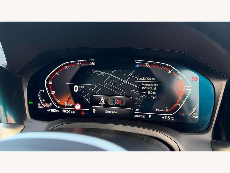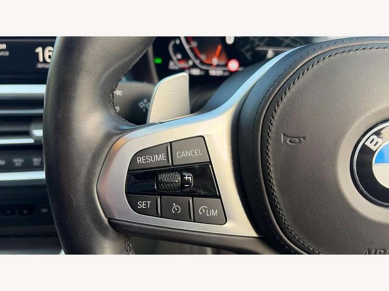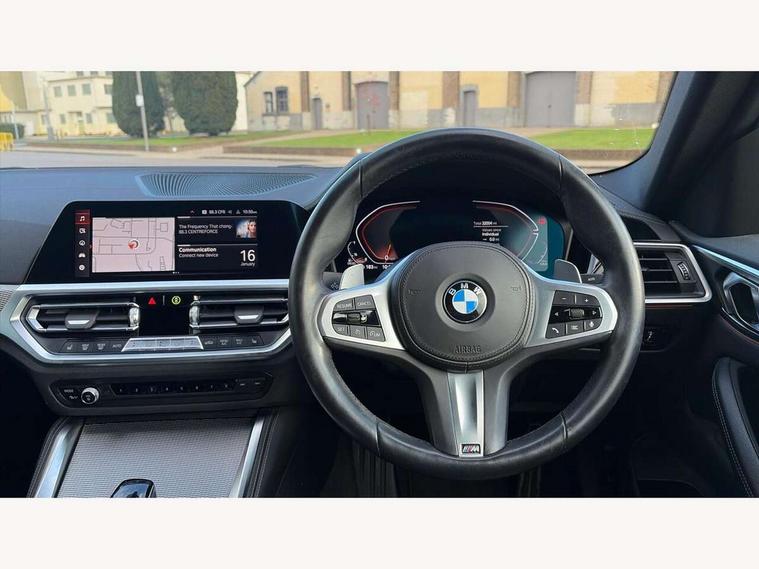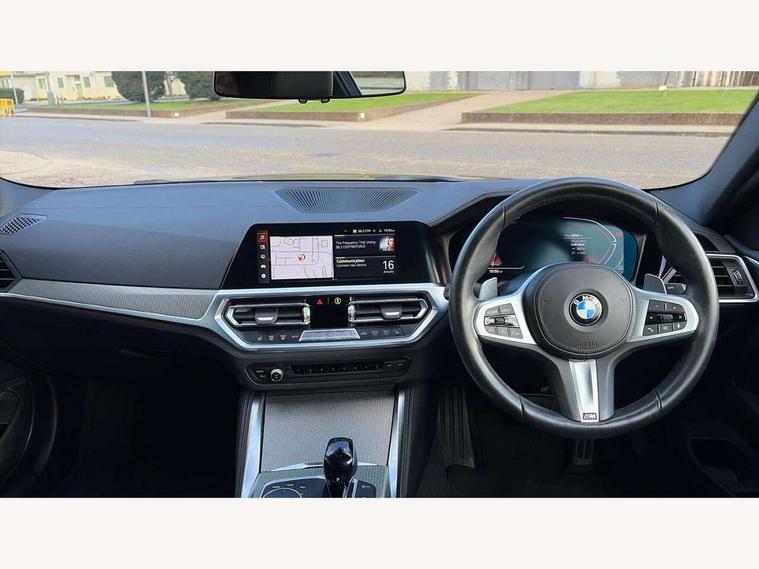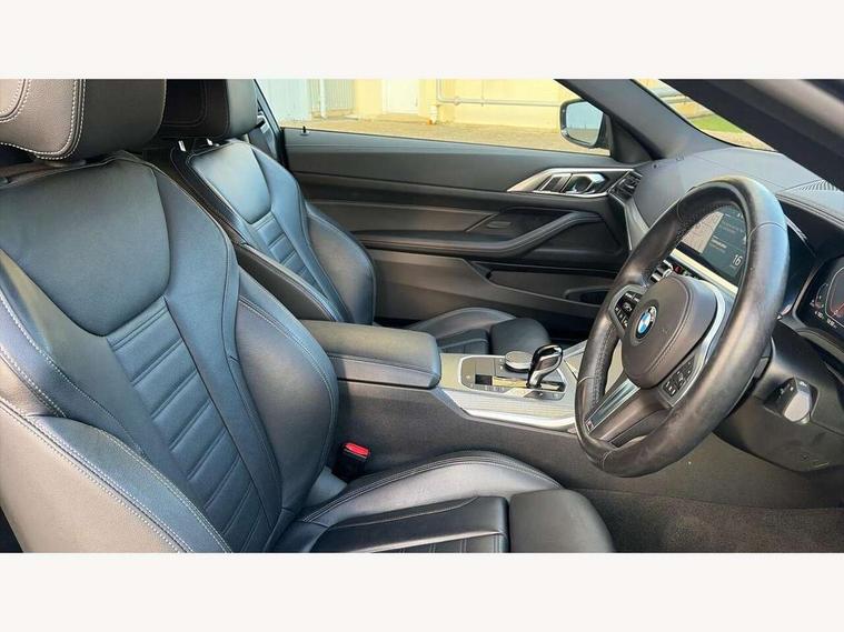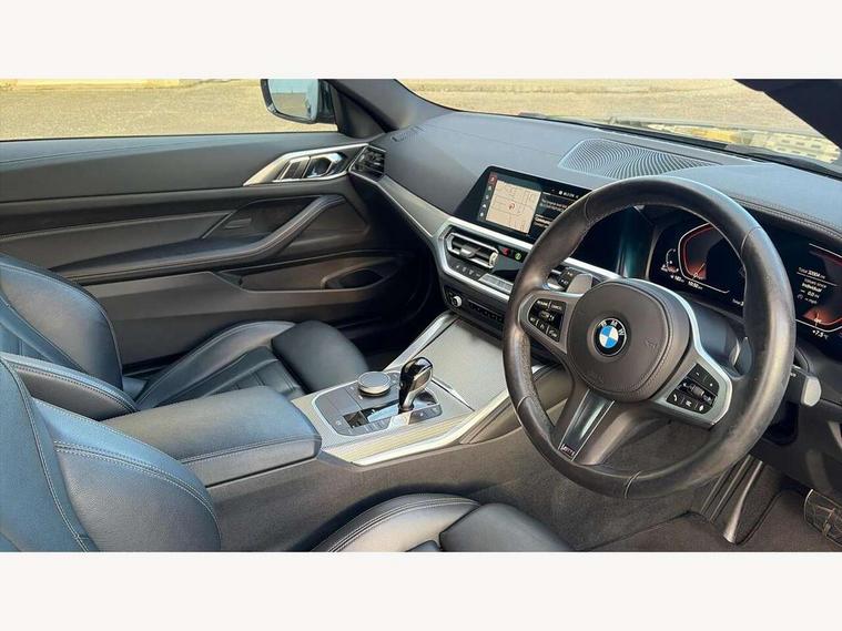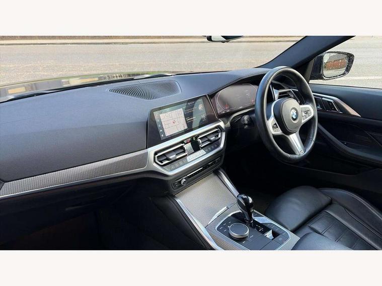 Active guard plus, Attentiveness assist, Auto start-stop, BMW ConnectedDrive online services, BMW iDrive controller on centre console, BMW Live Cockpit Professional Nav with 12.3" instrument display + 10.25" display, Intelligent Voice Assist, BMW OS 7, HDD, 2USB, 4G LTE connect, BMW service history, BMW Teleservices, Brake pad wear indicator in front and rear, Check Control warning system for monitoring of lights and door/luggage compartment open warning, Condition based service, Cruise control with brake assist, Electric power steering with Servotronic steering optimised at all speed ranges, Gearshift time display in manual mode, Instrument cluster with speedometer with mph readout, tachometer, fuel gauge and oil temperature gauge, Integrated owners handbook, Oil sensor for level and grade, warning by check control system, On board computer - average speed, fuel consumption, outside temp display with acoustic warning, clock/date, service interval, odometer/trip meter, Optimum shift indicator, Touch control functionality for BMW Live Cockpit Professional Nav, Variable sport steering, 48V Mild hybrid technology, 8 speed automatic steptronic transmission with gearshift paddles, Balanced 50/50 weight distribution, Diesel particulate filter, Drive performance control - ECO PRO, comfort and sport modes, Incorrect fuelling protection, Low centre of gravity, M sport suspension, Stroke dependent dampers, xDrive system permanent all-wheel drive variable torque distribution, DAB tuner, Electronic service booklet, 3rd brake light, Acoustic glazing, Automatic headlight beam throw control with load dependent regulating reaction, dynamic compensation of braking dive and acceleration squat, Automatic windscreen wipers and automatic headlight, Automatically dimming electrochromatic rear view mirror, BMW emblem on engine compartment lid and tailgate, BMW kidney grille with mesh grille front side of the nuggets in matt aluminium and frame in chrome high gloss, Body colour fuel filler flap, Body colour M sport rear spoiler, Body colour roof fin, Brushed aluminium inserts in the front door sill finishers with BMW designation, Dynamic brake lights, Electric windows - front and rear, with open/close fingertip control, anti trap facility and comfort closing function all round, Exhaust tailpipe - split left and right, Exterior mirrors - electrically folding with anti-dazzle, Fading support, Front and rear bumper system, Front apron plastic in body colour, Green tinted heat protection glazing, High gloss shadow line exterior trim, Illuminated bow type door handles in body colour drivers side with door lock, Interior rear view electrochromatic mirror with automatic anti dazzle function, LED daytime running lights, LED front fog lights, Licence plate panel integrated into front bumper and tailgate, Lightweight engineering, M designation on front side panels, left and right, One piece front bumper cover including towing eye cover in body colour, Preparation for high beam assistant, Rear boot, Side frame decorative moulding black matt, Two part LED tailights in L-shape with components in smoked glass, brake light, LED turn indicator and rear fog light, Visible VIN plate, Welcome lights in interior and door handle area, Widened track and increased camber values for max transverse dynamics, agility and steering precision, Window recess cover black high gloss, Windscreen wipers with integrated heated washing jets, xDrive designation on left tailgate, 12V power socket in front centre console, 2 front cupholder in centre console with clamping elements and matt black inlay, 2 Rear seat headrests, 2 seat bench in second row, 3 spoke M sport leather multifunction steering wheel, 3 zone automatic air conditioning, 4 pieces lashing eyelets in luggage compartment, 40:20:40 split folding rear seat and rear centre armrest with two cupholders, Ambient lighting with welcome carpet light, Anthracite headlining, Armrest integrated in front and rear door trim + front centre console armrest, Four grab handles integrated in roof lining, Front and rear door exit lighting (left / right), Front and rear door pockets, Front and rear footwell lights, Front and rear reading lights, Front headrests, Front passenger seat, Front seat backrest width adjustment, Front sport seats, Heated driver and front passenger seats, Height adjustable mechanically and infinitely variable steering column, Illuminated armrest storage compartment, Illuminated glove compartment with separate small compartment, Luggage compartment light, Make-up mirror lights, Storage compartment in rear centre console, Sunvisors with vanity mirrors and ticket pocket, Toolkit located in luggage compartment, USB type - C cable charging function in the rear centre console, Velour front floor mats, Vernasca leather upholstery, Connected professional package - 4 Series, M sport exterior styling pack - 4 Series, Park assist pack - 4 Series, 2 x 3-point rear seatbelts, Battery safety cut-off, BMW emergency call, Brake energy regeneration, Braking pre-tensioning, Child seat ISOFIX attachment for the two outer rear seats, Coasting in idle in ECO PRO mode, Cornering brake control (CBC), Crash sensor activating of airbags, Unlocking doors, hazard warning lights, interior light, safety battery terminal, Driver and front passenger side airbags, integrated in the door side seat backrest bolsters for all seat variants, Driver/Front Passenger airbags, Dry braking, Dynamic brake control, Dynamic stability control + (DSC+) - Anti-lock Braking System (ABS) with brake assist and cornering brake control + Automatic Stability Control (ASC), Dynamic Traction Control - DTC, Electric parking brake including automatic hold function and automatic release of the parking brake when driving off, Electronic differential lock control (EDLC), Front and rear ventilated brake disc, Front passenger manual airbag deactivation, Head airbags for all 4 outer seats, Hill start assistant, Seat belt security check for dri