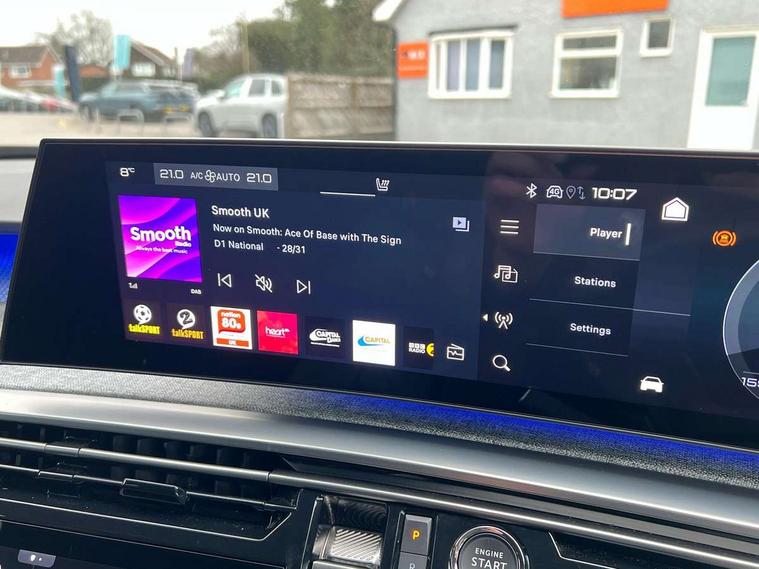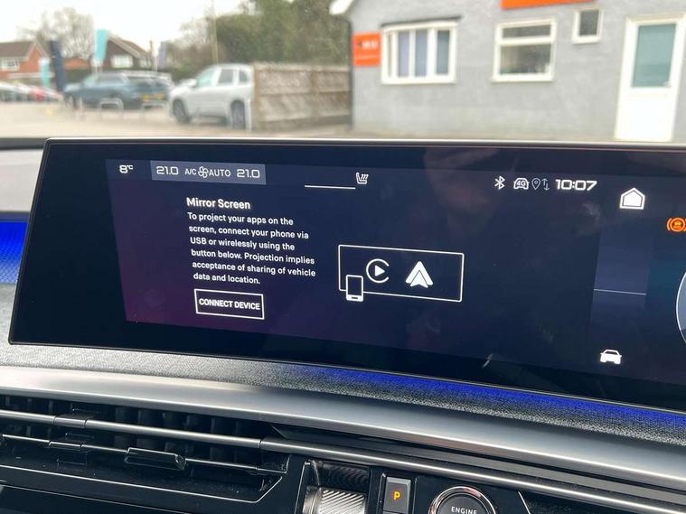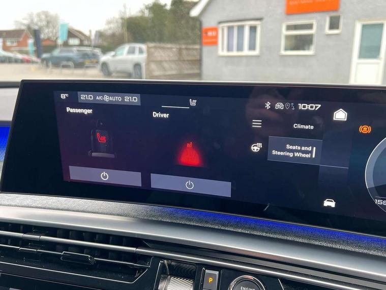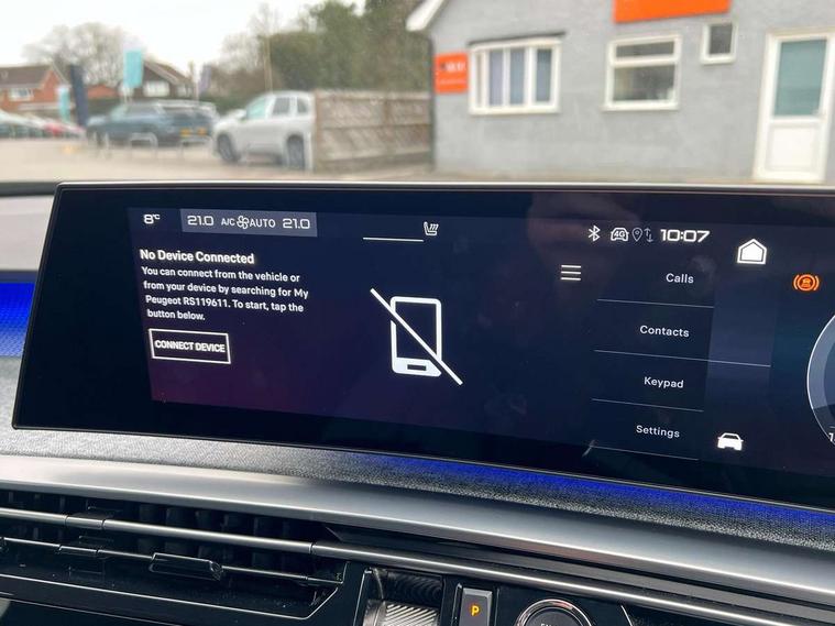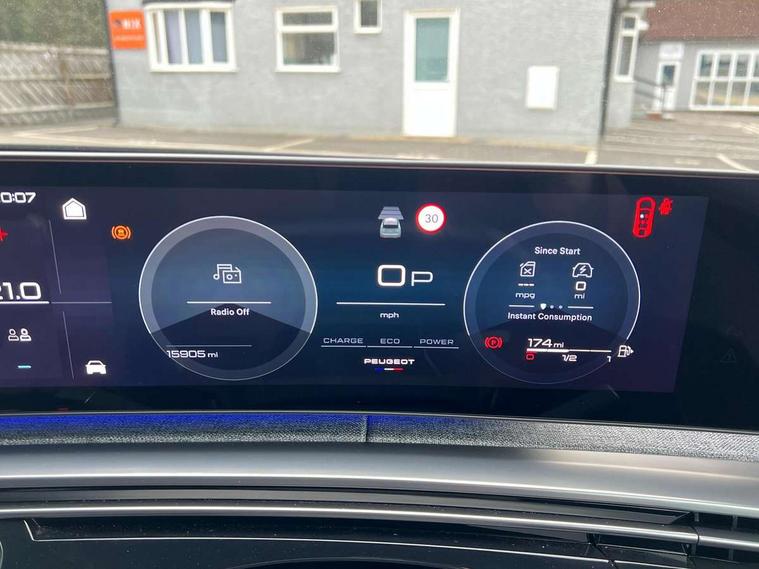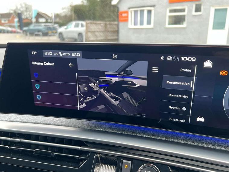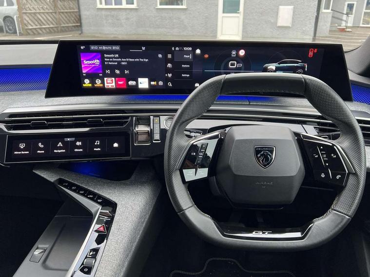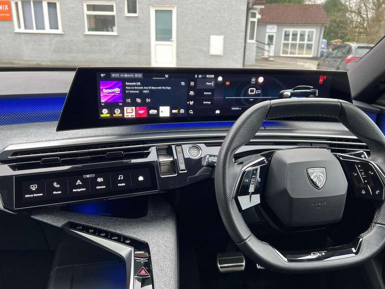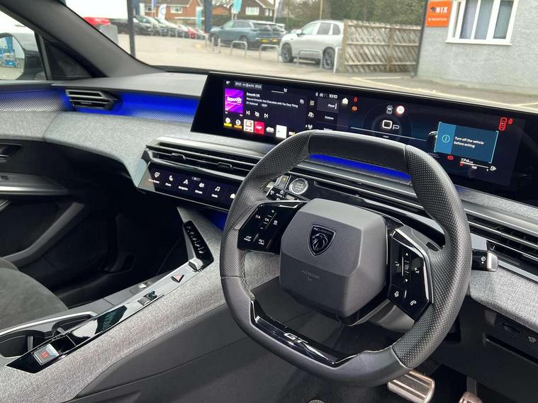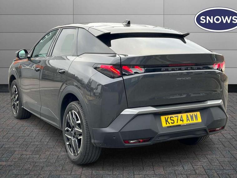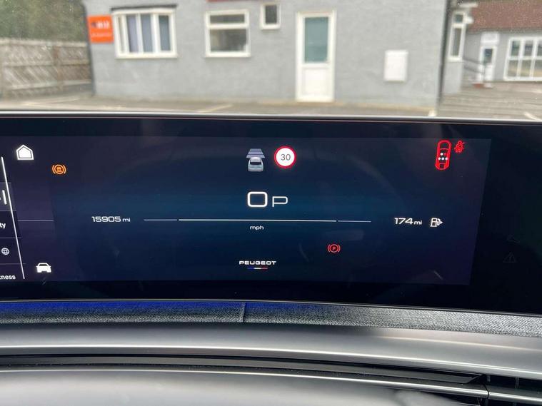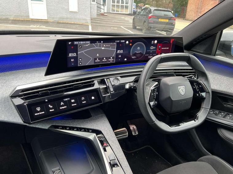 Adaptive cruise control with Stop and Go, Bluetooth with two microphones (Connect up to 2 phones), Drive modes select (Eco, normal and sport) with configurable ambient lighting, Driver foot rest, Driver profile selection, E-call, Exterior temperature indicator with ice warning, Front parking sensor, Front passenger seat detection, Hands free Smart Electric Tailgate (foot operated), Lane keep assist, Manual gear changes via steering mounted paddles, Multi function trip computer, Natural voice recognition, PEUGEOT i-Cockpit - 21" HD panoramic curved display incorporating instrument panel and touchscreen with 3colour themes, PEUGEOT i-connect advanced HD fully customisable touch screen, Navigation with Tom Tom Live updates and over the air map updates, PEUGEOT SOS and assistance, Rear parking sensor, Speed limit and traffic sign recognition and recommendation, Wireless mirror screen with apple carplay and android auto, Wireless smartphone charger with status light and ambient lighting, Dynamic stability control and electronic anti-skid system, AM/FM bi-tuner, DAB Radio (Digital Audio Broadcasting), Peugeot customisable virtual iToggles, USB-C sockets (2 x front and 2 x rear), 3008 model designation badgers front and rear in basalt grey, Acoustic windscreen, Automatic hazard light activation upon heavy brake application, Automatic headlamp activation, Automatic windscreen wiper activation with interval wiping intensity control, Black diamond roof and floating effect rear spoiler finished in nera black metallic, Body coloured exterior door handles, Dark tinted privacy glass for rear door, Tailgate and Quarter windows, Door mirrors - Welcome lighting and integrated LED indicators, Electric adjustable/heated/folding door mirrors, Flat blade wipers with magic wash integrated nozzles, Frameless electrochrome rear view mirror, Front and rear electric windows with one touch, Front grille with body coloured accents, Gloss black connecting strip between rear lights, Gloss black finish B pillar, Grained black lower door claddings and wheel arches, Heated rear window, Hybrid rear badging in basalt grey, Laminated windscreen, LED daytime running lights, LED exterior lighting, LED third brake light, Lower front and rear bumper trims in meteor grey, Orbital gloss black door mirrors, PEUGEOT shield on front wings, Pixel LED Technology headlights with adaptive high beam assist, Rain sensor, Rear full LED 3D peugeot signature claw effect lights with daylight function, Rear side wing doors, 2 cupholders in front centre console, 2 rear cupholders, 3 seat rear bench, 3x 12V sockets (Cabin front and rear and boot), 4 Grab handles retractable and damped, 4 tie down luggage rings, 40/20/40 folding rear seat backrest with fixed base, Aluminium pedals, Arch design central console with concealed storage, Cabin high efficiency filter, Central front armrest with ventilated storage compartment and LED lighting, Chrome finish interior door handles, Compact heated multifunction steering wheel with full grain leather Iced Clay stitching, gloss black and satin chrome detailing and GT badge, Dual zone climate control, Dynamic front seats, e-Toggle compact gear selector, Electric power steering with reach and rake adjustable steering column, Glasses storage box, roof mounted, LED boot light, LED footwell lights, LED front and rear roof lights, LED Glovebox light, LED illuminated driver and passenger concealed sunvisor mirrors, Luggage cover, Luxury front and rear carpet mats with Iced Clay stitching and GT logo, Mistral black pillars and headlining, Quick launch cabin heating/cooling function, Rear air vents, Rear smartphone holder, Roof lining - Meteor grey, Seatbelt unfastened on the move audible and visual alert for front and rear seats, Single front passenger seat, Stainless steel PEUGEOT door sill trims, Two bag hooks, Two position boot floor, 2x Isofix child seat fitting on outer rear seats with zipped cover, 3x3 point rear seat belts, ABS (Anti-lock Braking System) with EBD (Electronic Brakeforce Distribution) and EBA (Emergency Braking Assistance), Adaptive driver and front passenger airbags with passenger airbag deactivation function, Advanced Emergency Braking System with radar (AEBS3) providing night detection of pedestrians and cyclists, Child locking functionality on rear doors, Driver and front passenger side airbags, Electric parking brake, Front and rear curtain airbags, Front optimised safety headrests and 3 x rear retractable headrests with height adjustable, Front/rear disc brakes, Hill start assist, Post collision safety brake, Seatbelts - Front and rear outer seats with pyrotechnic pretensioners and force limiters, Tyre under inflation monitoring and detection (Indirect), 2x Keys (Lock, Unlock, Boot release function with concealed key), Acoustic vehicle alert system (AVAS), Automatic door locking when moving off, Deadlocking system, Electronic code immobiliser, Exterior passenger door lock, Locking wheel nuts, Peugeot Open and Go (keyless entry and push button start), Seatbelts reminder and unfastend warning indicator, Thatcham category 1 Perimetric and volumetric alarm with anti-lift detection, Aluminium printed dashboard and front door panel Alcove decor, Textile decor for dashboard, door panels and centre console arch, 19" YARI diamond cut alloy wheels with star center cap in orbital black, Michelin e-primacy class A tyres, Tyre repair kit includes 12V compressor, Sealant and storage box,