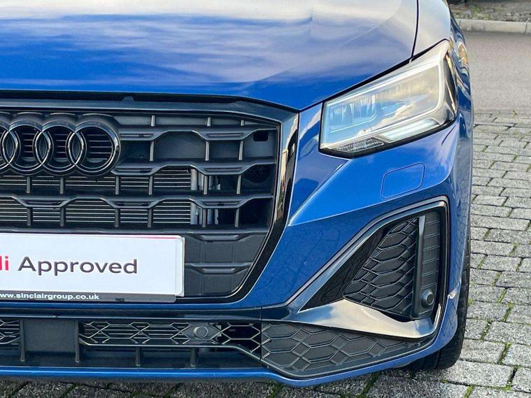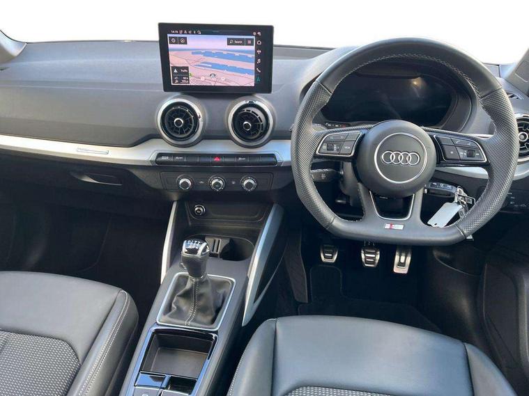 3D map display, Audi connect navigation and infotainment includes innovative services, Audi connect remote and control connects your vehicle to your smartphone, Audi drive select: power steering assistance + engine (modes: comfort, auto, dynamic, individual), Audi smartphone interface - Apple carplay/Android Auto, USB connect, 2xSDXC card readers, voice control for navi, telephone, music and 3rd party apps, Audi virtual cockpit, Automatic start/stop system with recuperation, Bluetooth interface includes bluetooth audio streaming, Camera based traffic sign recognition, Cruise control, Distraction and Fatigue warning, E-call, Jukebox hard drive memory for music (10GB), Lane departure warning, MMI navigation plus with 8.8" touchscreen, Natural voice recognition, Power operated tailgate, Progressive steering, Rear parking sensors, Sport suspension, 6 passive loudspeakers, DAB Digital radio, USB type C port, Audi beam, Auto dimming rear view mirror, Black window trims, Bumper in full body colour paint finish, Electrically adjustable, folding, auto dimming and heated door mirrors with integrated LED side indicators, Front windscreen with grey tinted sunband, LED daytime running lights, LED headlights with dipped beam, high beam, position lights, indicators, LED rear lights, LED third brake light, Privacy glass - dark tinted rear and rear side windows from B-pillar backwards, Rear side wing doors, Rear wiper, Variable front intermittent wipers, Wheel arch trims in manhattan grey, 12V socket in front, 3 seat bench in 2nd row, 3 spoke flat bottomed multi-function leather sport steering wheel, 4-way electric lumbar support for front seats including manual seat height adjustment for both front seats, 60/40 split folding rear seat bench, Black carpets, Black cloth headlining, Front and rear head restraints, Front centre armrest, Front sport seats, Front/rear floor mats, Height/reach adjust steering wheel, Illuminated door sill trims with S logo, ISOFIX child seat mounting in front passenger and rear outer seats, Manual air conditioning, Single front passenger seat, Stainless steel pedals, Black styling pack - Q2, 3x3 point rear seatbelts, 6 airbags - Front, curtain and front side airbags, Electromechanical parking brake, Electronic stabilisation control including ABS, ASR and EDL, Front passenger airbag deactivation, Hill hold assist, Pre-sense front with pedestrian recognition, Seatbelt monitoring, Tyre pressure warning light with visual and acoustic warning, Warning triangle and first aid kit, Anti theft alarm, Anti theft wheel bolts, Electronically operated child locks, Remote central door locking, Aluminium interior element, Black dashboard, Gloss black centre console, Matt brushed aluminium trim inlays, Tool kit,