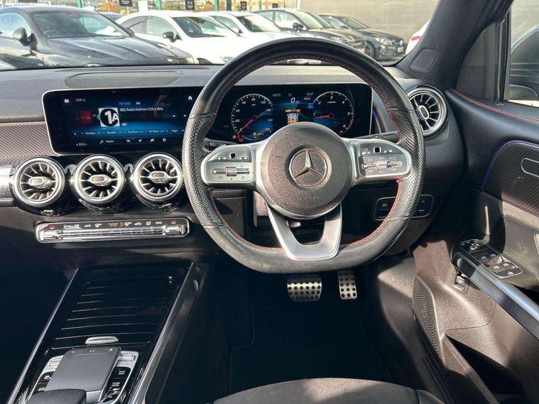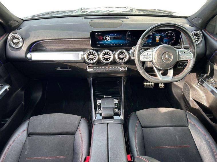 10.25" Digital instrument cluster display screen, 10.25" Digital media screen display, Active lane keeping assist, Attention assist - Monitors steering behaviour and long journey fatigue, Brake pad wear indicator warning light, Cruise control with limiter, DYNAMIC SELECT with a choice of driving modes (ECO, Comfort, Sport, Sport+ and Individual), Easy-pack tailgate, ECO start/stop function, Fluid level warning indicator for fuel, oil, coolant and washer fluid, Hard disk navigation, Hey Mercedes Voice activation, Lamp failure indicator, Mercedes me connect including emergency call system, accident recovery, breakdown and maintenance management, Outside temperature gauge, Owners manual and service booklet in English, Parameter steering system, Pre-installation for Vehicle Monitoring, Pre-installation for Vehicle set up, Pre-installation of private car share, Radio aerial integrated into front and rear windshields, Service indicator (ASSYST), Smartphone integration with Apple CarPlay and Android auto, Speed limit assist, Trip computer in multifunction display with current consumption indicator, Wireless charging, 23.8 litre AdBlue fuel tank, 52 litre fuel tank, Comfort suspension, Rear axle multi-link, DAB digital radio tuner, MBUX multimedia system with DAB digital radio and touchpad including satellite navigation, Mercedes Benz advanced sound system (225 W) with 10 speakers, 1 central speaker, speakers on doors, a tweeter on door, one sub woofer + boost amplifier, Pre installation for Mercedes Benz Link, USB (type C) port in front stowage compartment, USB (type C) ports (2) in stowage compartment, Adaptive brake lights, Aerial for GPS, AMG bodystyling door panels black grained with chrome plated inserts, AMG bodystyling front apron with chrome splitter, AMG bodystyling rear apron with diffuser optics and chrome trim element, AMG specific front and rear bumper including underride guard in high gloss chrome, Beltline strips and weather strip in chrome, Body coloured door handles, Body coloured door mirror caps, Electric adjustable and heated door mirrors with integrated LED side indicators, Exhaust system with dual flow exhaust pipes (non-functional), Front and rear electric windows, Headlamp assist automatic headlamp activation, Heated glass rear windscreen + timer control, High level LED third brake light, LED high performance headlamps with integrated LED daytime running lights, LED tail lamp, Polished aluminium roof rails, Pre-installation for trailer coupling, Privacy glass with dark tinting on rear side windows and rear window, Radiator grille with pins in chrome and single louvre with chrome insert, Rain sensor windscreen wipers, Rear fog lamp, Two visible tailpipe trim elements exhaust, 3 spoke multifunction sport steering wheel in nappa leather, Air conditioning - Two zone thermotronic luxury automatic climate control with display, AMG sports pedals with brushed stainless steel surfaces and black rubber studs, Artico man-made leather/Microfibre Dinamica upholstery with red contrast stitching, Automatic child seat recognition sensor, Black roof lining, Floor mats with stitched AMG lettering, Freight packaging without tie-down hooks, Front centre armrest with stowage, Front door sills with illuminated Mercedes lettering, Front passenger grab handle with brushed side silver chrome, Front sports seats with adjustable head restraints, Galvanished gear shift paddles on steering wheel, Heated front seats, Height/reach adjustable steering column, Interior lighting - 64 colour Ambient lighting, Luggage net on driver/front passenger seat backrest, Net in front passenger footwell, Rear armrest with two integral cup holders for drinks, Spectacles compartment for driver, Stowage compartment in centre console, Stowage compartment with retractable cover, Third row of seats for two people on rear seat, Third row of seats with isofix and top tether child seat fixing points, Touchpad on center console, Twin front cup holders, Two outer rear seat isofix and top tether child seat fixing points, Interior lighting with light and sight pack - GLB, Keyless Go comfort pack - GLB, Mirror pack - GLB, Parking pack - GLB, Seat comfort pack - GLB, 3 rear 3 point seatbelts, Active bonnet pedestrain safety measure which detects an impact and raises bonnet by 65mm, Active brake assist includes forward collision warning system with autonomous braking, Adaptive brake assist with hold function and hill start assist, Airbags - kneebag for driver, Anti-lock braking system (ABS) with brake assist, Childproof locks manually operated for rear doors and electrically operated for rear power windows, Crash responsive emergency lighting, Driver and front passenger head and sidebags, Driver and front passenger windowbags, Dual stage driver and front passenger airbags, Electronic parking brake, Electronic stability programme with acceleration skid control, ESP curve dynamic assist, Front and rear seatbelt reminder, Front brake callipers with Mercedes Benz lettering, Front passenger seat occupancy sensor, Tyre pressure monitoring system, Warning triangle and first aid kit, Alarm system with immobiliser and interior protection -Thatcham category 1, Remote central locking and crash sensor with emergency opening function, Vehicle key with decorative surround in chrome, Black air vents with chrome surround, Carbon structure trim, 19" AMG 5 twin spoke alloy wheels painted tremolite grey with high sheen finish, Summer tyres, Tirefit tyre sealant kit,