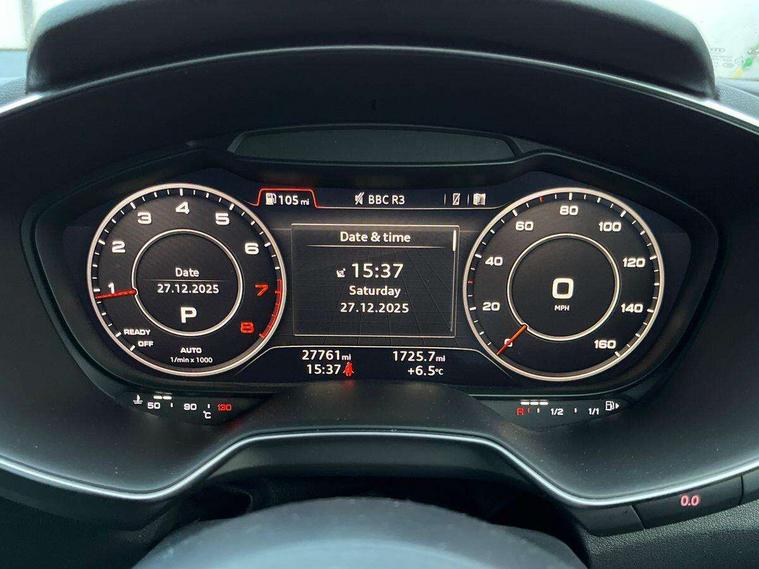 Audi active lane assist, Audi drive select, Audi virtual cockpit - 12.3" high-resolution LCD display with fully customisable instrument cluster, MMI touch panel, Mobile phone preparation with bluetooth interface, Progressive power assisted steering, Service interval indicator, Audi music interface, Auxiliary input socket, Bluetooth audio streaming, DAB Digital radio, MMI Radio with CD player and SD/XC card slot, Auto headlight range control, Automatic coming/leaving home lighting function, Body colour bumpers, Body colour door mirrors, Electric front windows, Headlight wash system, High gloss black front grille, LED daytime running lights, LED rear lights, Rain and light sensors, Rear diffuser, Retractable rear boot spoiler, S Line body styling, 3 spoke leather multi-function sport steering wheel including paddle shift, Aluminium door sill trims, Black headlining, Electric lumbar support, Front centre armrest, Front head restraints, Front passenger seat isofix location point, Height/reach adjust steering wheel, ISOFIX on outer rear seats, Perforated leather gearknob, Split folding rear seat, Top tether anchor plate for isofix child seat, 2 rear seatbelts, 3 point front seat belts, ABS, ASR traction control, Curtain airbags, Driver/Front Passenger airbags, EDL traction control, Electromechanical parking brake, ESP, First aid kit, Front passenger airbag deactivation, Front side airbags, Tyre pressure warning, Warning triangle, Anti theft alarm, Immobiliser, Keyless Start, Locking wheel bolts, Remote central locking, Matt brushed aluminium inlays, Tyre repair kit,