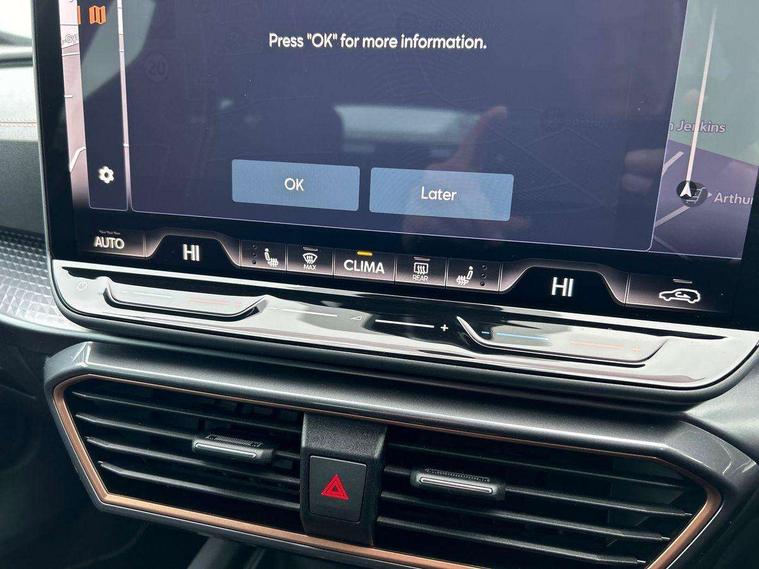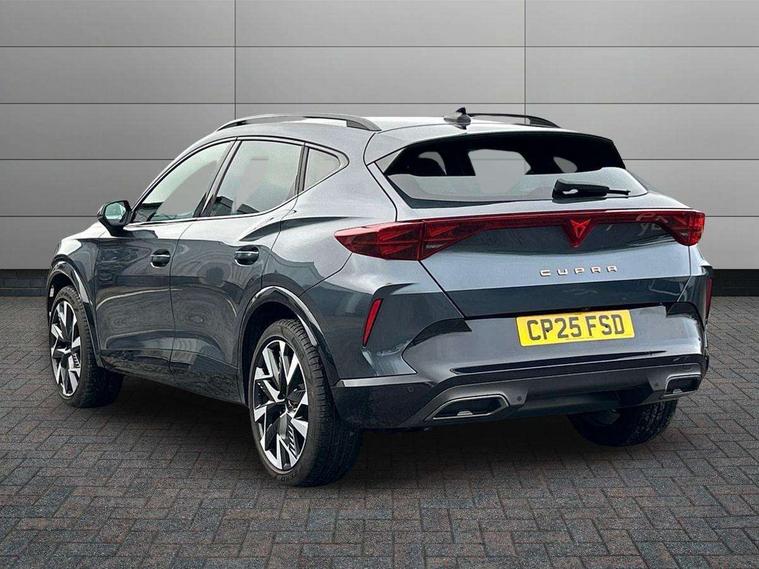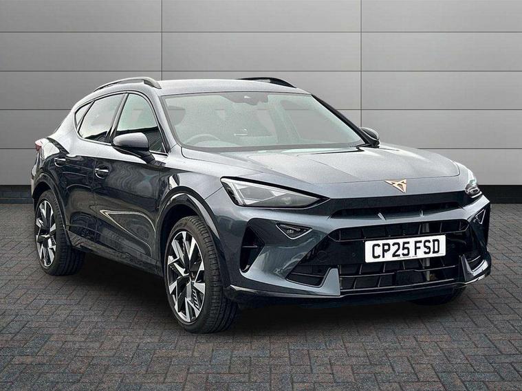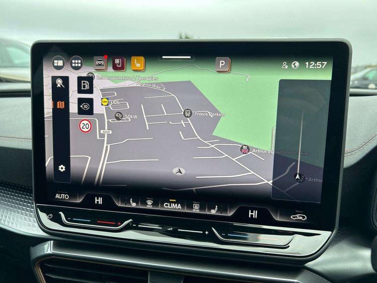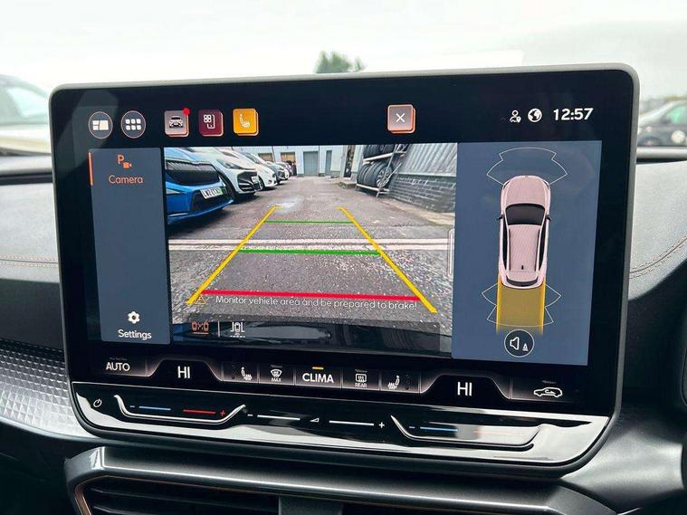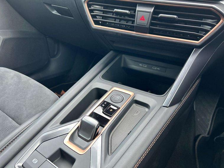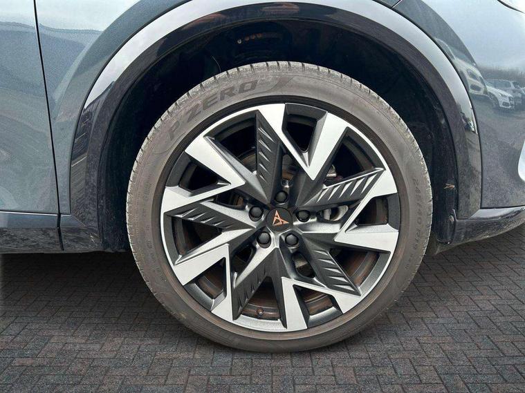 10.25" digital cockpit and configurable dashboard, Adaptive cruise control with follow-to-stop and speed limiter, Advanced driver alert system, Driving profile selection, Dynamic road sign display, Emergency steering support with turn assist, Forward collision warning with automatic braking, Front and rear parking sensors, Full link phone integration, Lane assist, Progressive steering, Rear view camera, RPM, trip computer, outside temp gauge, instrument light brightness, low fuel warning light, lights on reminder, gearshift indicator, Service interval indicator, Start/stop system with regenerative braking, Virtual pedal and electric tailgate, Voice control system, Wired Android Auto, Wireless apple carplay, Wireless phone charger, CUPRA sport suspension, Electronic locking differential and dynamic traction support, 2 front and 2 rear USB type C sockets, Media system with navigation, 12.9" touchscreen display, voice control, DAB, steering wheel mounted controls, Auto dimming rear view mirror, Body colour door handles, Body coloured bumpers, Dark grey wing mirror, Daytime running light with automatic headlight control and coming home feature, Door panel ambient lighting, Dynamic headlight range control, Electric front/rear windows, Electrically adjustable heated and folding door mirrors with memory function, Gloss black roof rails and window surrounds, High beam assist, LED 3rd brake light, LED front fog lamps with cornering function, LED Headlights, LED Taillights with dynamic indicator, Rain sensing wipers, Rear diffuser with black simulated exhaust pipes, Rear fog lights, Rear side wing doors, Rear wash/wipe, Tinted rear windows, Welcome lights (within exterior mirror housing), 12V socket, 2 front and 2 rear reading lights, 3 seat bench in 2nd row, 60/40 split rear bench seat with armrest and mechanical seat release, Black headlining, Black interior roof lining, Cupra sports pedals, Dust/pollen filter, Electrically adjustable driver's seat with memory and lumbar support, Front and rear head restraints, Front centre armrest, Heated front seats, Heated supersports multifunction leather steering wheel with satellite buttons and gear shift paddles, Height/reach adjust steering wheel, Illuminated aluminium doorsteps, Illuminated interior front door sills, Illuminated sunvisor with mirror, Isofix, Leather dashboard, door insert and side trim panel, LED smart wraparound lighting, PVC/Dinamica microfiber upholstery + bucket seats, Satellite steering wheel, Single front passenger seat, Storage pockets on rear of front seats, Three zone climate control with control panel in rear, Variable luggage/load compartment floor, 3 point seatbelts on all rear seats, ABS, Brake control system - ESC and brake booster, Child proof door locks, Driver and front passenger airbags with front passenger airbag de-activation, Electronic parking brake, Front and rear disc brakes, Front side curtain airbags, Hill hold control, Public e-call, Seat belt reminder for front and rear seats, Tyre pressure monitoring system, Anti theft alarm system, KESSY Advanced - Keyless start, keyless entry with SAFELOCK, Locking wheel bolts, Copper and aluminium interior detailing, 19" Sandstorm machined sport black and silver alloy wheels,