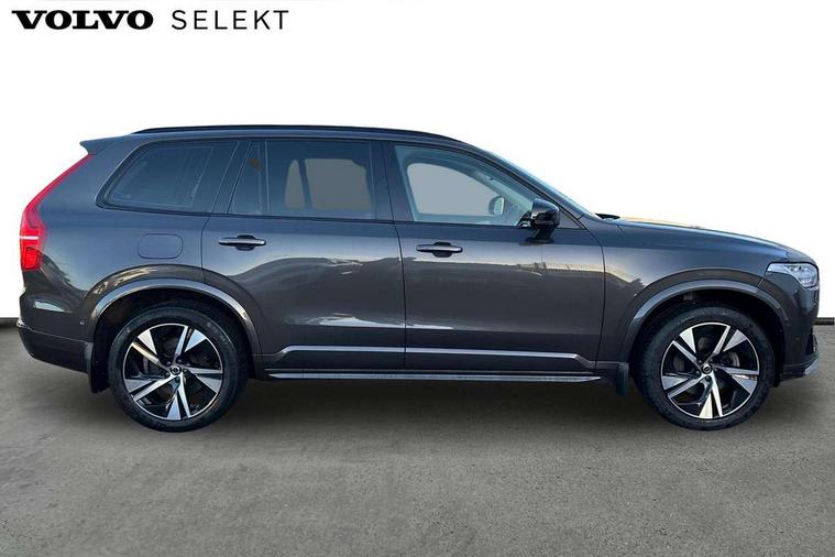 12.3" Progressive Driver Display, 360 degree surround view parking camera with side proximity sensors, 9" centre console portrait touch screen, Adjustable steering wheel force, Bluetooth hands free telephone connection, Driver alert control with lane keeping aid, Driver assistance (pilot assist and adaptive cruise control), Driver awareness - Blind spot information system with steer assist, cross traffic alert with autobrake and rear collision warning and mitigation, Emergency call service, Front and rear park assist, Google Automotive Services - Navigation with Voice recoginition and google assistant, Handsfree power tailgate opening and closing, Oncoming Lane Mitigation, Power operated tailgate, Service interval indicator, Speed limiter, Speed sensitive steering, Trip computer, Volvo on call, Wireless Mobile Phone Charger, 8 speed automatic transmission with start/stop + manual change functions, Touring chassis, DAB Radio (Digital Audio Broadcasting), Premium Sound by Harman Kardon, dirac unison, dolby pro logic II surround sound, 13 speakers/600W output and fresh air subwoofer, Steering wheel remote infotainment controls, Active bending headlights with adaptive shadow technology, Adaptive brake lights with high level LED brake lights, Auto dimming interior + exterior mirrors, Auto folding and heated power door mirrors, Automatic headlight levelling system, Automatic LED Headlights + Active high beam incorporating daytime running lights, Body colour bumpers, Front and rear power windows, Headlight cleaning system, Heated front windscreen, High gloss black door mirrors and window surround, High gloss black front and rear bumper deco, High gloss black mesh front grille with surround, Home safe and approach lighting, Integrated roof rails in high gloss black, LED front fog lights with cornering light function, Power glass tilt and slide panoramic sunroof with sun curtain, Puddle lights, Rain sensor with automatic windscreen wiper activation, Rear side wing doors, Rear wash/wipe with intermittent wipe setting, Roof antenna, Roof spoiler, Visible VIN plate, 12V socket front tunnel console, rear passenger compartment and cargo area, 2 seat bench in 3rd row, 2nd Row centre armrest with and cupholders, 3 seat bench in 2nd row, 4 zone electronic climate control with Clean zone air quality system + pollen filter, A-pillar parking ticket holder, Advanced interior air cleaner PM2.5, Air conditioning for 3rd row of seats, Ambient door and instrument panel lighting, B Pillar ventilation, Bright metal luggage threshold, Centre console cupholders and storage, Floor mats, Front and rear door pocket and front cupholder illumination, Front and rear reading lights, Theatre lighting and centre armrest storage illumination, Front footwell and side step illumination, Front headrests, Front seat cushion extensions, Heated front seats, Heated rear seats, Heated steering wheel, Height/reach adjustable steering column, Illuminated front and rear tread plates, Illuminated luggage compartment, Illuminated tailgate, Illuminated vanity mirrors + ticket holder, Illumination lockable glovebox compartment, Integrated sun curtains in rear doors, Isofix outer rear child seat preparation in 2nd row, Load protection net, Luggage compartment divider with grocery bag holder, Outboard armrest with cupholder and storage for third row passengers, Power driver seat with multi directional lumbar support and memory for seat and exterior mirrors, Power folding 2nd row headrests, Power passenger seat with multi directional lumbar support and memory, Rear footwell and side step illumination, Rear headrests, Semi automatic load cover, Single front passenger seat, Underfloor luggage compartment storage, 7 three point seatbelts, City safety with steering support includes pedestrian, cyclist and large animal detection and front collision warning with full auto brake, Drivers knee airbag, Dual stage driver/passenger airbags, First aid kit, Front seats SIPS airbags, Hill descent control - off drive mode, Hill start assist, IC (Inflatable Curtains) - Full Length, Passenger airbag cut-off switch, Power child locks on rear doors, Power parking brake with auto hold function, Road sign information display, Run off Road Mitigation, Run off Road Protection, Seatbelt reminder and pretensioners for all seats, SIPS (Side Impact Protection System), Slippery road and hazard light alert, Stability and Traction Control with Spin control, Engine Drag Control and Corner Traction Control, Tyre pressure monitoring system, Vehicle deceleration control with Anti-lock Brake System, Electronic Brake Distribution and Emergency Brake Assist, Warning triangle, WHIPS whiplash protection system - front, Anti-theft alarm including immobiliser/volume sensor + level sensor, Care key with user defined top speed, Key integrated remote control central locking + fuel flap with deadlocking system and auto open/close power windows, Keyless drive includes keyless entry and keyless start, Locking wheel nuts, Private locking for glovebox and tailgate, Tailored Instrument Panel and Door Tops with Contrast Stitching, Tempa spare wheel and jack,