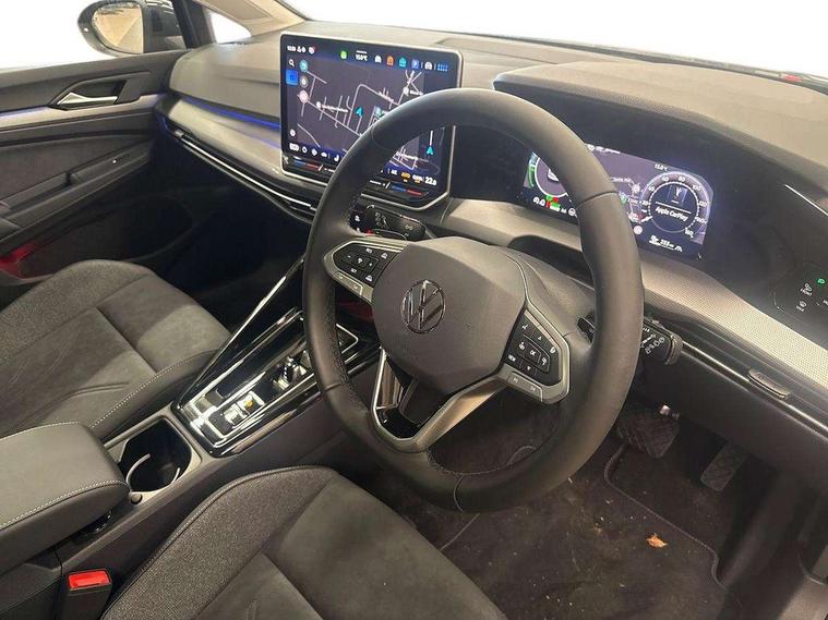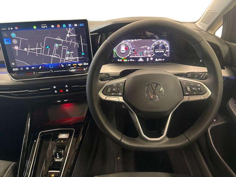 Activated carbon canister, Adaptive cruise control (ACC), Advanced driver attention and drowsiness monitor, Dynamic road sign display, E-Sim card for online connectivity, eCall emergency call system, Multi-color Digital cockpit pro, selection of different info profile possible, Multifunction front facing camera for distance control, Navigation system, Oncoming vehicle braking when turning including swerve support, Side assist blind spot lane change system, rear traffic alert and exit warning system, Speed limiter, Speedo, rev counter, electronic odometer, trip, service interval display, exterior temperature and fuel gauge, Traffic jam assist, Voice enhancer and voice control, Warning signal and warning light for front and rear seatbelts not fastened, We connect plus preparation, We connect preparation, Wireless app connect, Charging cable Mode 2 Type 2 (10A), Charging cable mode 3, type 2 32 A, Hybrid propulsion system, Start-stop system with battery regeneration (recuperation - energy recovery during braking), XDS electronic differential lock for improved traction and handling, 2 USB C ports in front, 2 USB charging sockets on the centre console in the rear charging capacity upto 45W, 6 Speakers - 4 in front and 2 in rear with central speaker, Digital radio reception (DAB), Diversity antenna for FM reception, Gaming platform via car app, Infotainment system with 12.9" display, Mobile phone interface with inductive charging feature, 3rd brake light, Automatic headlamp activation with Coming home and Leaving home feature, Body colour bumpers, Body colour door handles, Body colour door mirrors, Chrome trimmed front air intake surrounds, Chrome trims on the side window bottom, Exterior mirrors convex on the left and aspherical on the right, Front and rear electric windows, Heat insulating windshield made of laminated glass, LED separate daytime running light, Rear exhaust tailpipe, Rear fog light on one side and reversing lights on both sides, Rear side wing doors, Rear windscreen washer and wiper with interval delay, Remote electrically foldable door mirrors, puddle lights and reverse activated passenger's door mirror, Welcome light with surround lighting, 12V socket in front centre console, 12V socket in luggage compartment, 3 rear head restraints, 3 seat bench in 2nd row, Air care climatronic 3 Zone automatic climate control with rear air conditioning control panel, Ambient lighting with 30 colour including LED light unit in front footwell with selectable light colour, Chrome plated radiator grille inserts, air vent surrounds and light switch surrounds, Front + rear black carpet mats, Front centre armrest, ISOFIX anchors for child seats on outer rear bench seats and on front passanger seat compatible for i-Size, Luggage compartment lighting, Plastic gear knob, Rear cupholder and loadthough, Single front passenger seat, Soul black instrument panel, Split folding backrest with centre armrest and unsplit rear seat bench, Standard pedal cluster, Storm grey roof lining, Sun visors with illuminated vanity mirrors, Driver assistance pack - Golf Estate/Hatchback Auto, 3 point height adj front seatbelts + pretensioners, 3 rear three point seatbelts, ABS, Autonomous emergency braking front assist with pedestrian and cyclist monitoring, Child locks on rear doors, Driver and front passenger airbag with front passenger airbag deactivation, Electronic parking brake with auto hold, ESC (Electronic Stability Control), Extended pedestrian protection measures, Hill start assist, Rear disc brakes, Two tone horn, Tyre pressure loss indicator, Volkswagen roadside assistance, Anti theft wheel bolts, Preparation for alcohol interlock, New brushed dark metal decorative inserts for dashboard and front door panels, Tool kit for tyre mobility set, Tyre mobility kit Includes 12V compressor and tyre sealant,