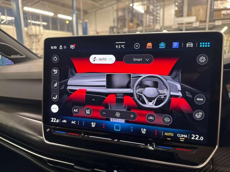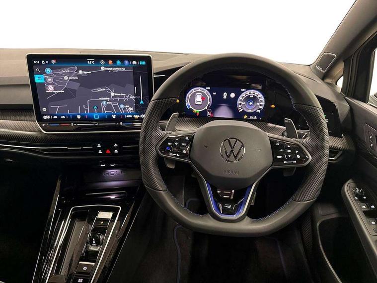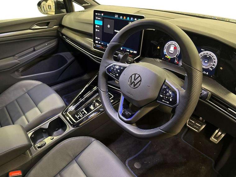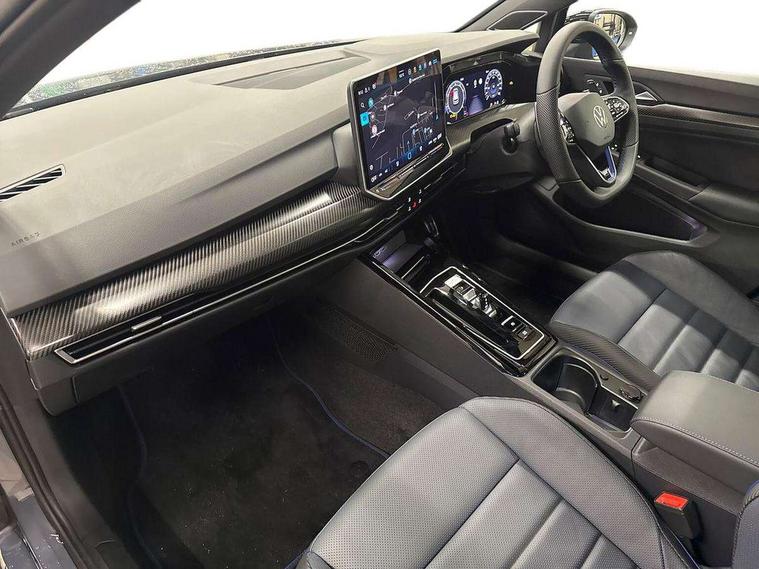 Activated carbon canister, Adaptive cruise control (ACC), Advanced driver attention and drowsiness monitor, Dynamic road sign display, E-Sim card for online connectivity, eCall emergency call system, Electronic maximum speed limit increased to 270 km/h, includes driving Modes 'drift' and 'special', larger roof spolier and GPS laptimer + G-Meter, Multi-color Digital cockpit pro, selection of different info profile possible, Multifunction front facing camera for distance control, Navigation system, Oncoming vehicle braking when turning including swerve support, Progressive steering, Side assist blind spot lane change system, rear traffic alert and exit warning system, Speed limiter, Speedo, rev counter, electronic odometer, trip, service interval display, exterior temperature and fuel gauge, Traffic jam assist, Voice enhancer and voice control, Warning signal and warning light for front and rear seatbelts not fastened, We connect plus preparation, We connect preparation, Wireless app connect, All wheel drive - 4Motion, Petrol Particulate Filter, Start-stop system with battery regeneration (recuperation - energy recovery during braking), XDS electronic differential lock for improved traction and handling, 2 USB C ports in front, 2 USB charging sockets on the centre console in the rear charging capacity upto 45W, Digital radio reception (DAB), Diversity antenna for FM reception, Gaming platform via car app, Infotainment system with 12.9" display, Mobile phone interface with inductive charging feature, 3rd brake light, Auto dimming rear view mirror, Automatic headlamp activation with Coming home and Leaving home feature, Black badge on B-pillar, Black mirror caps, Black strips on radiator grille and headlights, Body colour door handles, Darkened headlights, Darkened R Logos and VW logos in front, rear and on fender, Exterior mirrors convex on the left and aspherical on the right, Front and rear electric windows, Front fog lamps and cornering light, Heat insulating windshield made of laminated glass, Illuminated lighting animation with wake up/goodbye scenario, LED matrix headlights with ambient light V2, advanced high beam, dynamic range contol with cornering, LED rear lamp with indicator, poor weather, LED separate daytime running light, Light assist with High beam control, R name plate, Rain sensor, Rear fog light on one side and reversing lights on both sides, Rear side wing doors, Rear tinted glass 65% light absorbing from B pillar backwards, Rear windscreen washer and wiper with interval delay, Remote electrically foldable door mirrors, puddle lights and reverse activated passenger's door mirror, Welcome light with surround lighting, 12V socket in front centre console, 12V socket in luggage compartment, 3 rear head restraints, 3 seat bench in 2nd row, 30 colour ambient lighting, illuminated center console storage compartment in front, Air care climatronic 3 Zone automatic climate control with rear air conditioning control panel, Aluminium gearshift handle, Brushed stainless steel pedals, Chrome plated radiator grille inserts, air vent surrounds and light switch surrounds, Entry lights, Front + rear black carpet mats, Front centre armrest, Integrated front head restraints, ISOFIX anchors for child seats on outer rear bench seats and on front passanger seat compatible for i-Size, Luggage compartment lighting, Rear cupholder and loadthough, Single front passenger seat, Soul black instrument panel, Soul black roof lining, Split folding backrest with centre armrest and unsplit rear seat bench, Sun visors with illuminated vanity mirrors, Driver assistance pack - Golf Estate/Hatchback Auto, R styling pack - Golf, Technology park and comfort pro package - Golf Hatchback, 3 point height adj front seatbelts + pretensioners, 3 rear three point seatbelts, ABS, Autonomous emergency braking front assist with pedestrian and cyclist monitoring, Child locks on rear doors, Driver and front passenger airbag with front passenger airbag deactivation, Electronic parking brake with auto hold, ESC (Electronic Stability Control), Extended pedestrian protection measures, Front and rear black brake calipers with darkened R-logo, Hill start assist, Rear disc brakes, Two tone horn, Tyre pressure loss indicator, Volkswagen roadside assistance, Anti theft wheel bolts, Preparation for alcohol interlock, Sporty vehicle dynamics, Tool kit for tyre mobility set, Tyre mobility kit Includes 12V compressor and tyre sealant, Wheel hub cover with darkened R-logo,