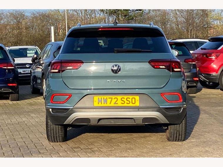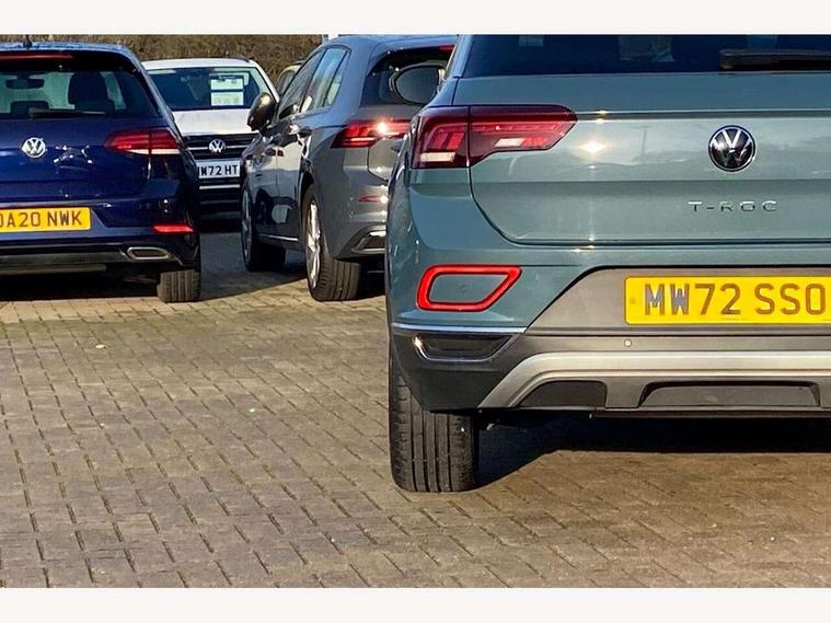 10.25" Digital cockpit pro, Bluetooth mobile phone interface, Driver alert system with fatigue detection, Driver tips and journey analysis, Emergency call service, Lane keeping system Lane Assist, Modified key software - reduce switch off time for key status change to Long no motion, Online services, Park assist including front and rear parking sensors, Service interval indicator, Tailgate/trunk lid release from outside, Think blue trainer driver tips and journey analysis, Warning sound and light for front seatbelts unfastened, Wireless app connect, Battery regeneration during braking, Start/stop function with battery regeneration, Diversity antenna for FM reception, Front and rear 6 speakers, Music playback - MP3, WMA and AAC files, Premium USB cable in choice of either Apple or Android smartphone compatibility, SD card slot, Simultaneous pairing of 2 compatible mobile devices, Title and cover art display, We Connect and We Connect Plus functionality, 3rd brake light, Auto dimming interior rear view mirror, Automatic hazard lights activation under emergency braking, Automatic headlight control with LED separate daytime running lights with coming/leaving home function, Body colour sports bumpers with silver metallic underbody fascia, Dynamic headlight range control with self adjusting whilst driving, Extended roof spoiler, Exterior mirrors aspherical on driver side, convex on front passenger side, External USB type C socket and charging sockets, Front windscreen wiper with intermittent wipe and 4 position delay, Heated rear window, LED Plus headlamps, LED rear combination lamps, LED rear number plate lights, LED tail lamp rear comination lamps, Light mode for poor weather, rain, fog or snow, Power windows with comfort operation and circuit breaker, Rain sensor, Rear exhaust tailpipe, Rear fog light on one side and reversing lights on both sides, Rear side wing doors, Rear wash/wipe with intermittent wipe setting, Remote electrically foldable door mirrors, puddle lights and reverse activated passenger's door mirror, 12V power socket in centre console, 3 rear head restraints, 3 seat bench in 2nd row, 4 load lashing points in luggage compartment, Air care climatronic air conditoning system with active combination filter and 2-zone temperature control, Chrome plated radiator grille inserts, air vent surrounds and light switch surrounds, Door and side trim panel with leatherette insert, Drawer under drivers seat, Front + rear carpet mats, Front centre armrest, Front comfort sports seats, Front cupholders x 2, Front footwell illumination, Instrument lighting, white adjustable panel illumination, Interior ambient lighting and surround lighting, Interior light delay, Isofix child seat preparation, Leather gearshift handle, LED interior light with switch off delay/dimmer and 2 front/rear LED reading lights, Load-through provision with cup holder when folded down ('Unsplit rear seat bench, split folding backrest, with centre armrest), Luggage compartment lighting, Non-folding front passenger seat backrest, Single front passenger seat, Storage compartment in left and right luggage area, Storage compartment in rear doors, Storage compartments in driver and front passenger doors, Sunvisors with illuminated vanity mirrors, Variable boot floor, height adjustable and removable, Driver assistance pack without proactive passenger protection - T-Roc, 3 point height adj front seatbelts + pretensioners, 3 point seatbelts in outer rear with ECE label, ABS, Child locks on rear doors, Driver and front passenger airbag with front passenger airbag deactivation, Driver and front passenger safety-optimised head restraints, Drivers seatbelt reminder, Electronic parking brake, Electronic Stability Control (ESC) inc EDL (Electronic Differential Lock) and ASR (Traction Control), Front and rear passengers curtain airbag system including front side airbags, Front assist with city emergency braking and pedestrian monitoring, Front seat side impact airbags, Predictive pedestrian protection, Rear disc brakes, Single tone horn, Tyre pressure loss indicator, Volkswagen roadside assistance, Alarm with interior protection, Anti-theft alarm system with interior monitoring, backup horn, and towing protection, Remote central locking with SAFELOCK, radio remote control with 2 remote control folding keys, Trims for alloy wheels,