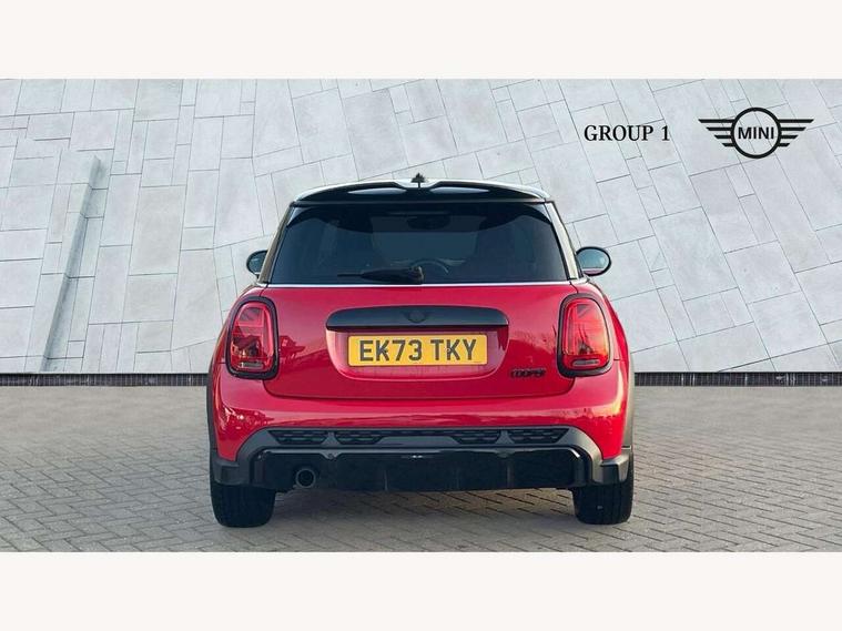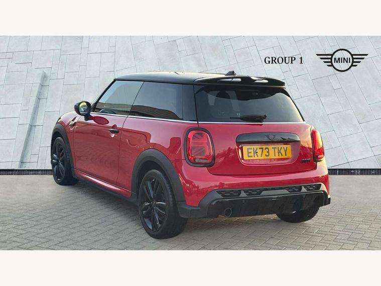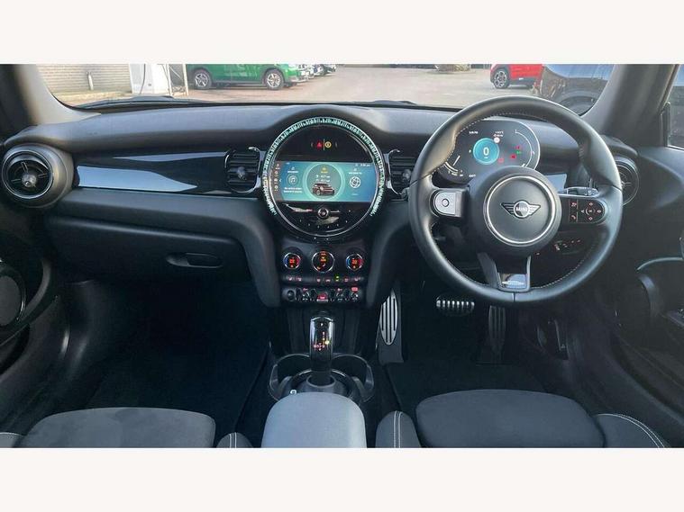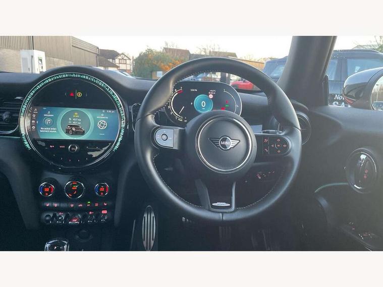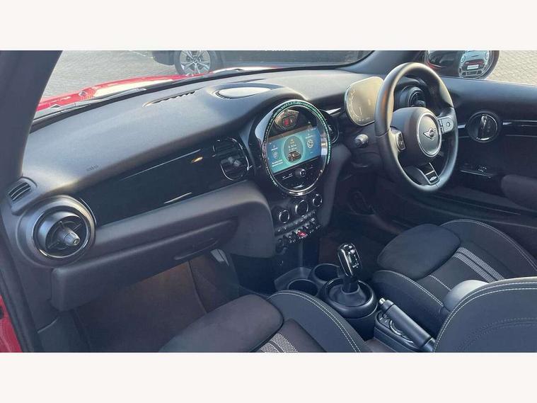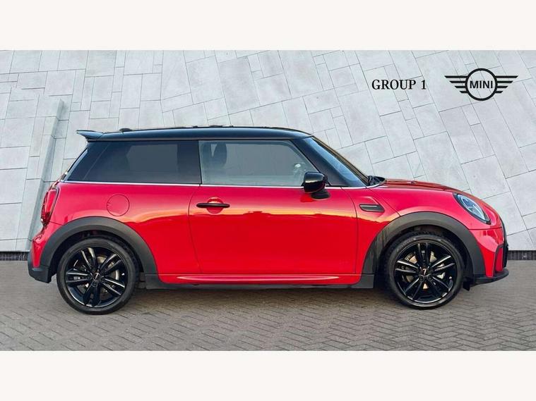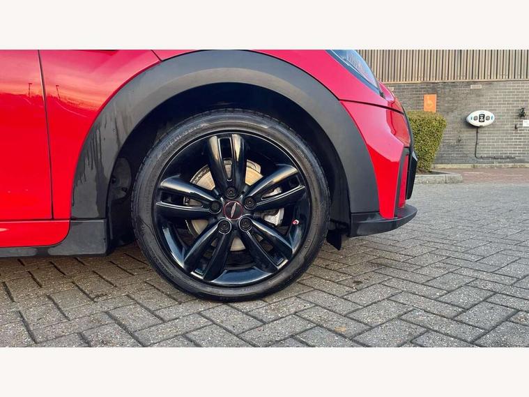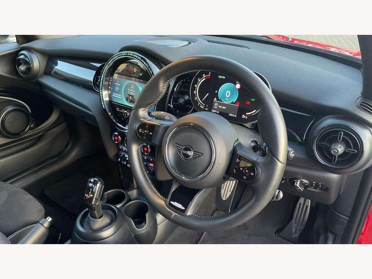 Apple CarPlay, Automatic start/stop function with brake energy recuperation, Compatible mobile phone bluetooth with audio streaming, Digital dashboard display, Electro-mechanical speed dependant steering assistance, Flexible car sharing preparation, Instrument cluster, Mini E-call, MINI TeleServices, On board computer, Service interval indicator, Double Vanos system, Fully variable valve control, High precision injection, Intelligent adaptive suspension, Performance Control, Steptronic transmission with double clutch, 4 speakers in front door trims and underneath front seats, 8.8" touchscreen with LED ring, FM tuner and DAB digital radio, 3rd brake light, Automatic headlight activation switch, Dynamic brake lights, Electric front windows, Heated rear window, Heated windscreen washer jets, JCW Aerodynamic kit - Front and rear bumpers with sporty JCW styling and part-painted side sills with MINI John Cooper Works door sill finishers, John Cooper Works rear spoiler, LED headlight with closed ring and daytime driving lights, Metal door sill strips with MINI imprint, Model logo Cooper on right of tailgate, Rain sensor window wipers, Rear fog lights, Rear LED lights with union jack design, Rear window wiper, Side scuttle panel with integrated indicator, Sun/heat protection glass, White indicator lenses, 12V Accessory socket in centre console, 2 seat bench in 2nd row, 4 lashing eyes in luggage compartment, 60/40 split folding rear seat, Anthracite headliner including grab handles and clothes hooks, Carbon black colour line - Knee roll and door armrest, Chrome interior highlights, Cupholders, Front and rear isofix with front passenger airbag deactivation, Front floor mats in velour, Glove compartment, Height and length steering column adjustment, Integrated headrests, adjustable thigh support for seats, Interior lighting with 12 different colours across the dashboard, underneath door bezel with illuminated laser-engraved design on central display, Leatherette gearshift lever and handbrake gaiters, LED reading lights, vanity mirror lights, front foot well light and spotlight on front seats, Mechanical seat adjustment - forward/back & backrest for front seats and driver seat height adjust, Multifunction steering wheel, Passenger seat height adjuster, Single front passenger seat, Storage compartments in doors, Sunvisors with vanity mirrors, Walknappa leather steering wheel with grey seam and John Cooper Works badge on Piano Black lower steering wheel spoke, Driving assistant pack - Mini Hatchback, Piano black exterior pack - Mini Hatchback Cooper, Premium pack - Hatchback, 3 point seatbelts on all four seats, 6 Airbags - front, side, head and seat belt tensioners, Anti-lock braking system (ABS), DSC - Dynamic Stability Control, Front and rear disc brakes, Single tone fanfare horn, Tyre pressure monitoring system, Alarm system with tilt sensor, monitoring doors, bonnet interior and tailgate, Electronic vehicle immobiliser, Start/stop toggle with keyless go, Piano black interior trim, Tool kit,