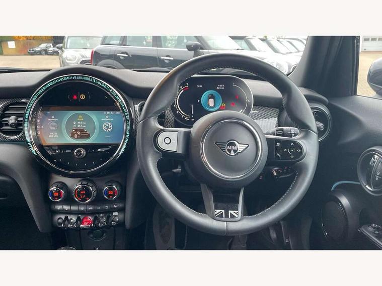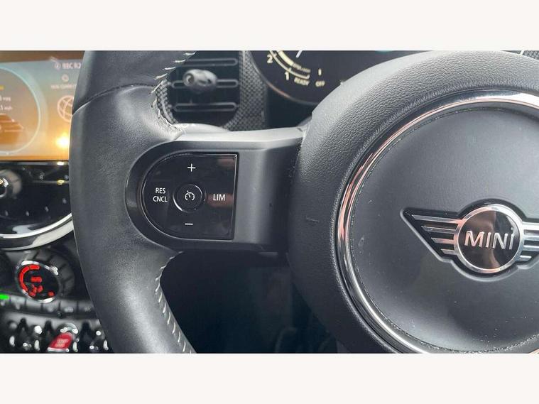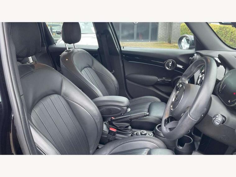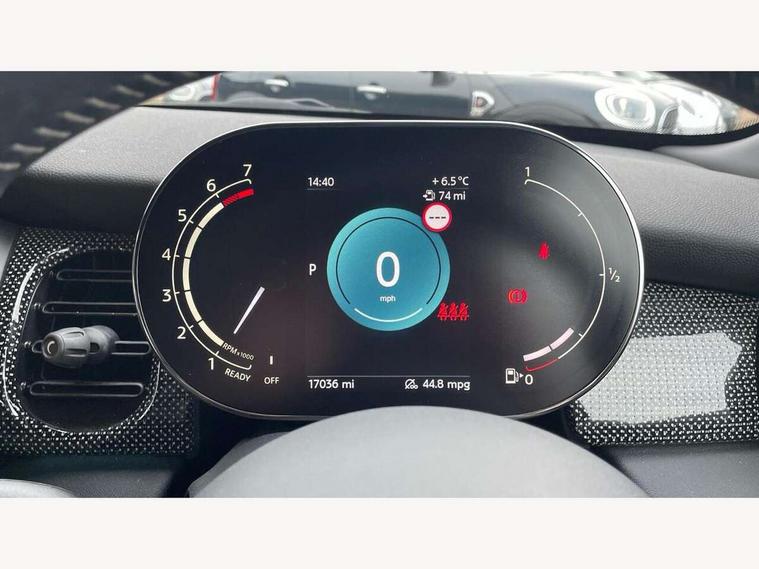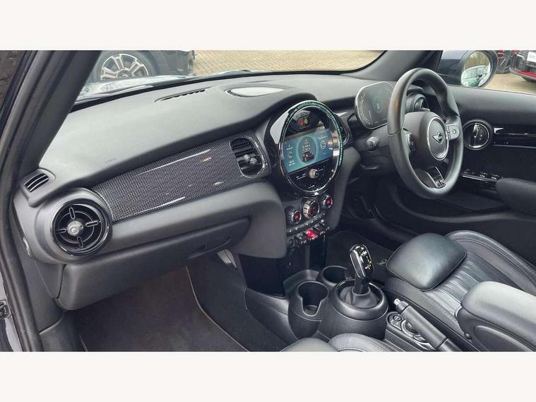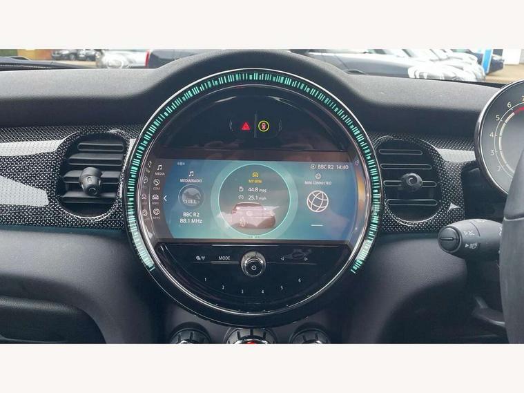 Apple CarPlay, Automatic start/stop function with brake energy recuperation, Compatible mobile phone bluetooth with audio streaming, Electro-mechanical speed dependant steering assistance, Flexible car sharing preparation, MINI Driving Modes - centre toggle switch to control driving setting (sport, mid and green), Mini E-call, MINI TeleServices, On board computer, Rear park distance control, Service interval indicator, Double Vanos system, Fully variable valve control, Gear change indicator display, High precision injection, Performance Control, Steptronic transmission with double clutch, 8.8" touchscreen with LED ring, FM tuner and DAB digital radio, 3rd brake light, Automatic headlight activation switch, Body colour fuel filler cap, Chrome line exterior - radiator grille bars, tailgate handle, lower front grille grating and rear central fog-light, Dynamic brake lights, Electric front+rear windows, Heated rear window, Heated windscreen washer jets, Metal door sill strips with MINI imprint, Model logo Cooper on right of tailgate, Rain sensor window wipers, Rear fog lights, Rear LED lights with union jack design, Rear side wing doors, Rear window wiper, Side scuttle panel with integrated indicator, Sun/heat protection glass, White indicator lenses, 12V Accessory socket in centre console, 3 seat bench in 2nd row, 4 lashing eyes in luggage compartment, 60/40 split folding rear seat, Anthracite headliner including grab handles and clothes hooks, Carbon black colour line - Knee roll and door armrest, Chrome interior highlights, Chrome line interior - air vents, gear lever base, door handles and speakers in doors, Cupholders, Front and rear head restraints, Front and rear isofix with front passenger airbag deactivation, Front and rear velour floor mats, Glove compartment, Height and length steering column adjustment, Interior lighting with 12 different colours across the dashboard, underneath door bezel with illuminated laser-engraved design on central display, Leatherette gearshift lever and handbrake gaiters, LED reading lights, vanity mirror lights, front foot well light and spotlight on front seats, Mechanical seat adjustment - forward/back & backrest for front seats and driver seat height adjust, MINI yours badge on exterior pillar, Multifunction steering wheel, Single front passenger seat, Storage compartments in doors, Sunvisors with vanity mirrors, Walknappa leather steering wheel with grey seam and MINI Yours badge on Piano Black lower steering wheel spoke, 3 point seatbelts on all five seats, 6 Airbags - front, side, head and seat belt tensioners, Anti-lock braking system (ABS), Child locks on rear doors, DSC - Dynamic Stability Control, Front and rear disc brakes, Hill start assist, Single tone fanfare horn, Tyre pressure monitoring system, Alarm system with tilt sensor, monitoring doors, bonnet interior and tailgate, Electronic vehicle immobiliser, Start/stop toggle with keyless go, Tool kit,