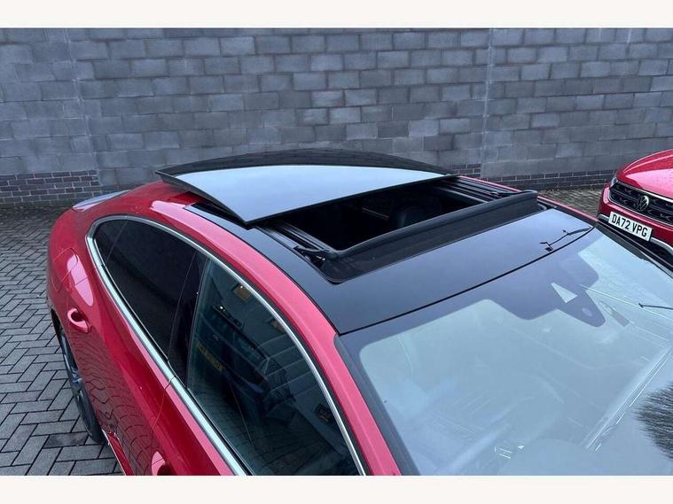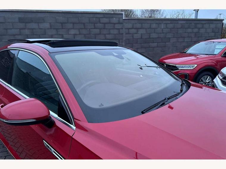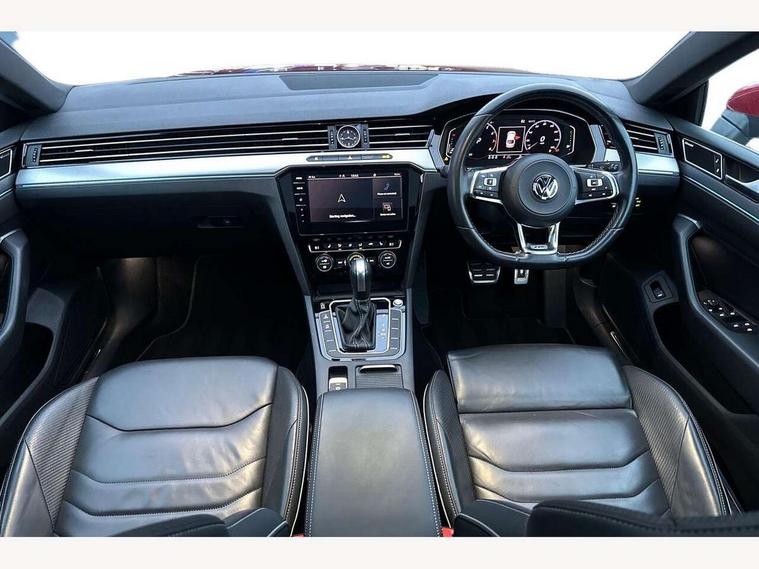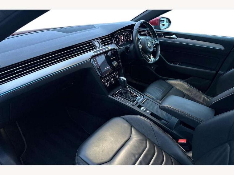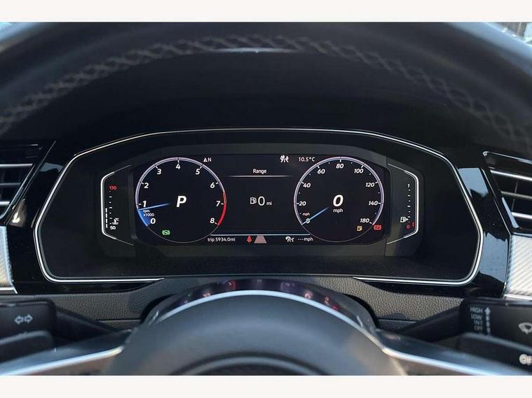 'Lights On' Reminder warning buzzer, 2D/3D map view, 8" touch screen, Active Info display 12.3" high resolution TFT dash display with customisable menu and information, Adaptive Cruise Control with pedestrian detection and speed limiter, Analogue clock in the dasboard, Bluetooth telephone and audio connection for compatible devices, Car-Net Security and Service, Discover pro navigation, Driver alert system with fatigue detection, Driver profile selection, Front Assist with radar sensor controlled distance monitoring system, Lane assist, Press and drive key, Progressive steering, Remote boot unlocking, Speedo and rev counter, electronic odometer, trip, service interval display and fuel gauge, Start/Stop function, Streaming and internet, Think blue trainer driver tips and journey analysis, Voice control system, Warning sound and light for doors and boot lid opening, Warning sound and light for front and rear seat belts if unfastened, We app connect, Battery regeneration during braking, Part galvanised body, CD/MP3/WMA and SD card reader, DAB Digital radio, MDI with USB/iPod connection cables, Premium USB cable in choice of either Apple or Android smartphone compatibility, SMS functionality - read, compose and send SMS messages using touch-screen display, Title and cover art display, USB interface 3.0 with type C, Advanced high beam control, Auto dimming interior rear view mirror, Automatic coming/leaving home lighting function, Automatic hazard lights activation under emergency braking, Automatic headlights with dusk sensor, Body colour door handles, Body coloured door mirrors with integrated indicators, Chrome side window surrounds, Chrome trim headlights extending into the radiator grille, Chrome trim on radiator grille louvres, Door sill protector, Dynamic cornering lights, Dynamic light assist, Electric adjust/heated/foldable with auto dimming on driver side, puddle lights on door mirror and reverse activated kerbview adjust on passenger side, Emergency release function in rear tailgate, Front and rear electric windows, Front fog lights, Gloss black spoiler, Headlight range control, Headlight washers, Heated rear window, Heated windscreen washer jets, High level 3rd brake light, LED headlights with separate daytime running lights, LED number plate light, LED tinted rear light clusters with dynamic indicators, Left and right chrome effect trapezoid dummy exhaust tailpipe surrounds, Left and right chrome trim on lower bumper, Left and right chrome trim on lower doors, R Line bading on front raddiator grille, R Line Design front bumper, R Line lettering on side fender vents, R Line logo on door sill protectors, Rain sensor, Rear tinted glass on rear side windows with 87% and rear windows with 77%, Side skirts with chrome inserts, Windscreen wipers/ intermittent wipe + 4 position delay, 12V socket in centre console storage area, 12V socket on rear of front centre armrest, 2 bag hooks in luggage compartment, 2 reading lights front and rear with interior delay and dimming function, 3 spoke leather multifunction steering wheel including paddle shift with Aluminium inserts and R-Line logo, 3 Zone electronic climate control with automatic air recirculation, 4 load lashing points in luggage compartment, 60/40 split folding rear seat with armrest, Aluminium finish interior door handles, Aluminium trim on upper and lower air vents extending across cockpit, Front + rear carpet mats, Front and rear interior lighting with delay and dimming function, Front centre armrest with storage compartment, longitudinal and height adjustable and two rear air vents, Front cupholders x 2, Front footwell ambient lighting, Front seat and rear pockets, Front seats with R-line logo on seat backrest, Gearshift paddles, Glovebox, Heated front seats, Height adjustable 3 rear head restraints, Height/reach adjust steering wheel, Illuminated vanity mirrors, Isofix child seat preparation easy fit for two outer rear seats, Jack and tool kit, Luggage compartment lighting, Nappa leather upholstery, Open storage compartment in the front centre console with inductive charging function, Rear armrest with 2 cupholders, Rear load through provision with 2 cup holders in armrest when folded down, Removable luggage compartment cover, Stainless steel footrest and pedals, Storage compartment in drivers and front passengers door, Storage compartment in rear doors, Storage compartment with soft touch opening cover in centre console, Storage compartments in luggage area left and right, Titan headlining, USB charging point, 3 rear three-point seat belts with tensioners on outer seats, ABS, Active bonnet, City Emergency Braking in active traffic speeds up to 19mph, Drivers and front passengers airbags with passengers deactivation switch, Drivers and front passengers safety optimised head restraints, Drivers knee airbag, Electronic parking brake with auto hold, Electronic stability control (ESC) includes ASR, EDL, EDTC and trailer stabilisation function, Front and rear curtain airbags, Front seat side impact airbags, Front ventilated disc brakes and rear disc brakes, Height adjustable front 3 point seatbelts + pretensioners, Hill start assist, Outer rear seat side impact airbags, Pedestrian monitor, Proactive passenger protection system, Rigid safety cell with front and rear crumple zones, Two tone horn, Tyre pressure loss indicator, Warning triangle, Alarm with interior protection, Electronic engine immobiliser, Remote central locking with 2 remote folding keys, Piano black centre console, Silver Rise decorative inserts in dash and door panels, Full size alloy spare wheel,