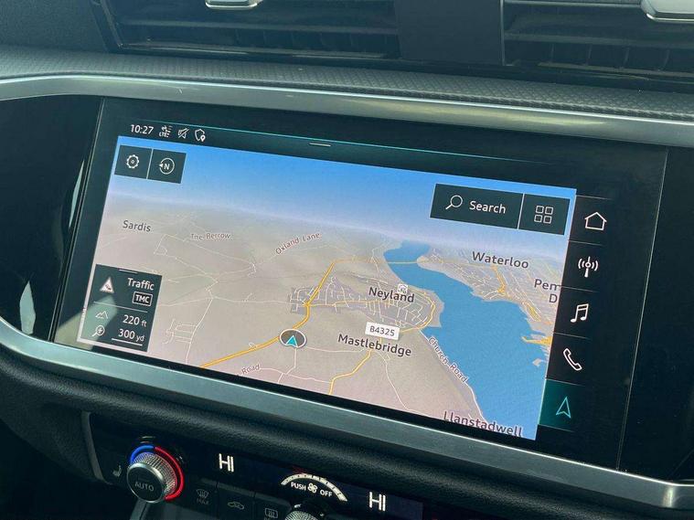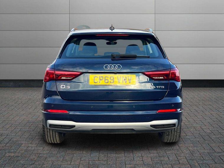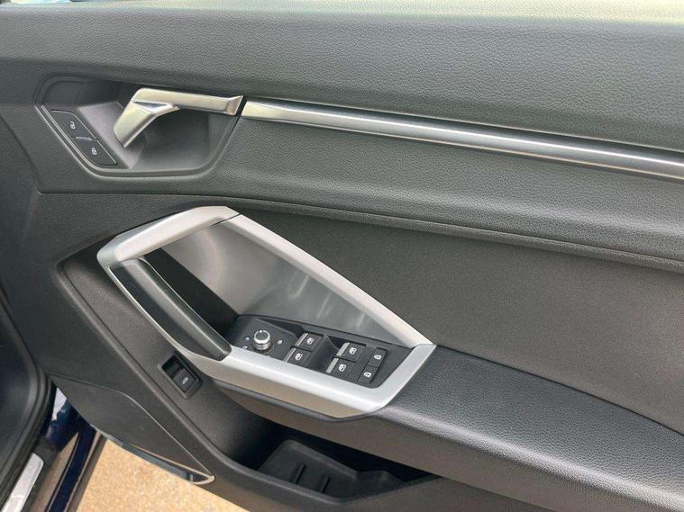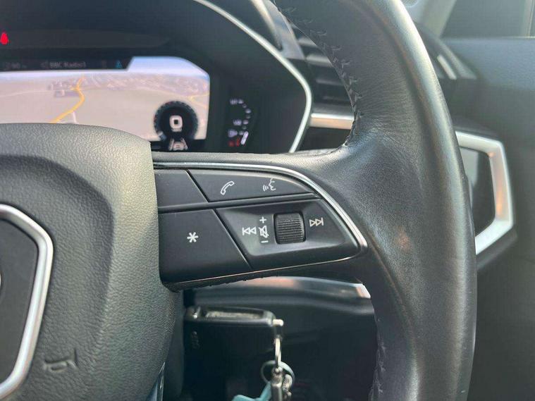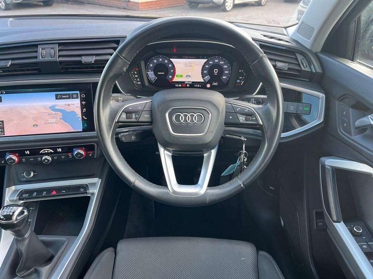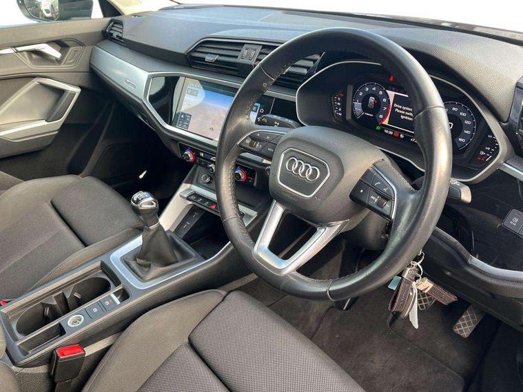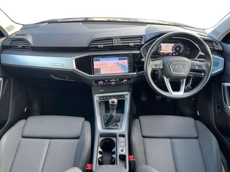Audi connect safety and service (e-call), Audi drive select, Audi lane departure warning, Audi side assist, Audi smartphone interface, Audi Virtual Cockpit - 10.25" display, Bluetooth interface, Camera based traffic sign recognition, Cruise control + speed limiter, MMI Navigation Plus with high resolution 10.1 inch touchscreen colour display, Power operated tailgate, Progressive steering, Rear parking sensors, Service interval indicator, Start stop system with recuperation, Voice control system with natural language interaction, Sports suspension, 1 x USB type C and 1 USB type A charging points, 6 passive loudspeakers, DAB digital radio module, Acoustic windscreen, Aluminium window trim, Auto dimming frameless rear view mirror, Bumpers and underbody protection in contrasting manhattan grey paint finish, Diffuser grille in grained matt black, Diffuser trim in manhattan grey metallic, Door sill trims with illuminated aluminium inlay, Electrically folding, adjustable and heated door mirrors with integrated LED side indicators and kerb view function for passenger side, Front and rear electric windows, Front fog lights, Front side air inlets in Manhattan grey metallic, Grille surround in aluminium silver matt, High gloss black finish B and C pillars, Honeycomb design radiator grille in matt titanium black, LED headlights with LED daytime running lights and dynamic rear indicator, LED rear lights, Rain and light sensors, 12V socket in rear centre console, 40:20:40 folding with manual adjustment for 60:40 forwards/backwards position and backrest angle, Adjustable rear seat bench/backrest, Dual zone climate control, Front and rear floor mats, Front and rear headrests, Front and rear roof module including reading lights, Front centre armrest, Glove compartment lighting, ISOFIX child seat mounting and Top Tether with front passenger airbag deactivation, Luggage compartment light, Lunar silver cloth headlining, Manual front seats with height adjustment, Stainless steel luggage compartment sill finisher, Non smoking pack - Q3, 3x3 point rear seatbelts, 6 airbags - Driver, front passenger, curtain and side windows, Audi pre-sense front with pedestrain and cyclist recognition, Electrically operated child locks on rear doors, Electromechanical parking brake, Electronic stabilisation control including ABS, ASR and EDL, Hill descent control, Hill hold assist, Pre sense basic, Seatbelt monitoring, Tyre pressure warning, Warning triangle and first aid kit, Anti theft alarm, Anti theft wheel bolts, Remote central locking, Detail dashboard around MMI touch colour display in glass look, black with surround in aluminium look,