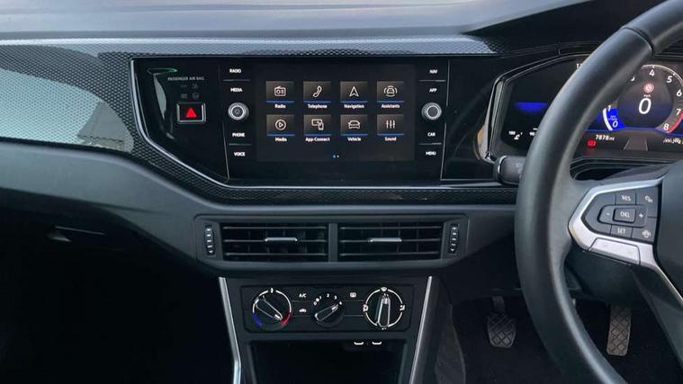 Advanced driver attention and drowsiness monitor, Bluetooth mobile phone interface, Cruise control + speed limiter, Dynamic road sign display, Emergency call service, Lane keeping system Lane Assist, Multifunction camera, Power assisted speed sensitive steering, Preparation for navigation system with media and internet package, Preparation for We connect and We connect plus, Speedo and rev counter, electronic odometer, trip, service interval display and exterior temperature gauge, Standard rear axle, Trip computer, Warning signal and warning light for front and rear seatbelts not fastened, Washer fluid level indicator, Wireless app connect, Front wheel drive, Rear shock absorpion, Start-stop system with battery regeneration (recuperation - energy recovery during braking), DAB Digital radio, Diversity antenna for FM reception, Front and rear 6 speakers, Automatic dimming interior rear view mirror, Automatic headlight control with LED separate daytime running lights with coming/leaving home function, Body colour bumpers with chrome inserts, Body colour door handles, Body colour door mirrors, Electric front windows, Engine badge deletion, Headlight range adjustment, Heat insulating and laminated safety glass windshield, Heat insulating darkened glass in side and rear windows, LED Headlights, LED rear combination lamps, Power folding adjustable/heated exterior mirrors and front passenger exterior mirror lowering function, Rain sensor, Rear electric windows, Rear fog light, Rear side wing doors, Rear windscreen washer and wiper with interval delay, Third brake light, 12V power socket in centre console, 2 front and 2 rear reading lights with switch off delay and dimmer, 2 USB-C ports in the front, 2 USB-C charging sockets on the center console in the rear, 3 rear head restraints, 60/40 split folding rear seat and rear seat bench not split, Ceramique roof lining, Chrome plated radiator grille inserts, air vent surrounds and light switch surrounds, Door and side trim panel, Driver and front passenger seat height adjustment, Driver/passenger sunvisors with illuminated vanity mirrors, Front centre armrest, Front seat backrest storage pockets, Front standard seats, Handbrake lever handle in leather, Hartley/Thomas cloth upholstery, Headliner in recycled material, Isofix child seat preparation easy-fit (for two outer rear seats, and front passenger seat) compatible with I-size, Leather trimmed gear knob, Luggage compartment cover, Luggage compartment lighting, Removable luggage compartment floor, Single front passenger seat, Standard climatic zones, Standard pedal cluster, Three spoke leather wrapped multifunction steering wheel, Light and vision pack - Polo, 3 point height adj front seatbelts + pretensioners, 3x3 point rear seatbelts, ABS, Driver and front passenger airbag with front passenger airbag deactivation, Drivers and front passengers safety optimised head restraints, ESC (Electronic stability control) + EDL (Electronic Differntial lock) and ASR (Traction control), Extended and predictive pedestrian/ cyclist protection, Front assist with autonomous emergency braking (for Adaptive Cruise Control ACC up to 130 mph), Front curtain and side airbags with center airbag, Front disc brakes, Hill hold control, Manual child lock in rear doors, Rear drum brakes, Single tone horn, Tyre pressure loss indicator, Alarm with interior protection, Anti-theft alarm system with interior monitoring, backup horn, and towing protection, Anti-theft wheel bolts, Electronic engine immobiliser, Lava stone black gloss/matt decorative inserts in dash and front door panels, Low rolling resistance tyres,