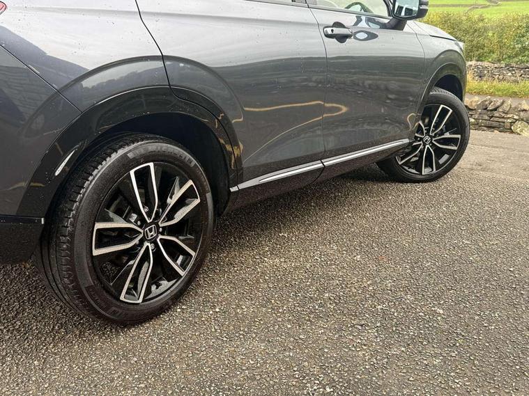 7" TFT instrument cluster, Adaptive cruise control, Adjustable speed limiter, Agile handling assist, Bluetooth hands free telephone connection, Drive modes select (Eco, normal and sport), eCall emergency system, Electric power steering, Emergency stop signalling system, Forward collision warning, Front parking sensors, Honda CONNECT with navigation, 9" touchscreen, AM/FM/DAB/Apple Carplay and android auto, Idle stop, Intelligent speed limiter, Lane departure warning, Lane keep assist, Low speed following, Multi info display, Power meter, Rear parking sensors and rear view camera, Road departure mitigation, Tachometer, Tailgate, Traffic sign recognition, WiFi connectivity, Vehicle stability assist, 'Shark fin' mobile antenna, 2x USB Front socket (1 data & 1 charge), 4 speakers, Steering wheel mounted remote controls, Auto folding door mirrors, Auto high beam, Automatic coming home lighting, Automatic headlights, Automatic rain sensing wipers, Body colour bumpers, Body colour tailgate spoiler, Body coloured door handles, Electric front and rear windows, Electrically adjustable and heated door mirrors, Exclusive styling in lower bumper non painting black, Fog garnish non paint gloss black, lower door garnish bumper skid garnish non paint silver, Front sequential turn, Headlight washers, Heated front windscreen, Heated rear window, High level third brake light, LED daytime running lights, LED headlamps, Low gloss window garnish, Manual headlight levelling, Rear side wing doors, Rear wiper, Red and clean lens LED rear lights, Variable front intermittent wipers, Windscreen shadeband, 3 rear headrests, 3 seat bench in 2nd row, 60/40 split folding rear seat, Ambient interior lighting, Automatic air conditioning, Cargo net hooks, Courtesy lights, Driver's seat height adjustment, Driver/passenger sunvisors with illuminated vanity mirrors, Front and rear map reading lights, Front head restraints, Front seat armrests, Heated front seats, Isofix points, Luggage area under floor storage box, Magic seat flexibility system, Manual height/reach adjust steering wheel, Meter illumination light, Paddle shift controls, Passenger seat back pocket, Rear centre armrest, Rear ventilation, Silver interior door handles, Single front passenger seat, Tonneau cover, Trunk light, 3x3 point rear seatbelts, ABS+EBD+Brake assist, Anti-whiplash front headrests, Auto hold function, Collision mitigation braking system, Collision mitigation throttle control, Deflation detection system, Dual front SRS airbags, Electric child locks, Electronic parking brake, Front and rear curtain airbags, Front and rear safety belts with Emergency Locking Retractor, Front side airbags, Hill descent control, Hill start assist, Low speed safety system, Paddle deceleration control, Passenger SRS airbag cut-off device, Regenerative braking system, Door deadlocks, Honda super locks, Immobiliser, Keyless smart entry with push button start, Remote central locking with 2 remote folding keys, Security alarm, Windows key fob operation, Tyre repair kit,