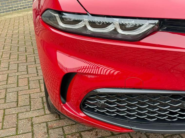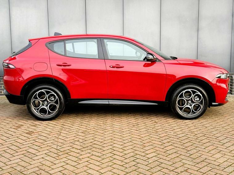 Adaptive cruise control with Stop and Go, Alfa connect box, Alfa connect services, Alfa dna with esc off (3 modes + esc off), Apple car play/Android Auto, Drowsy driver detection, e-Call (emergency call), Forward collision warning, Full tft instrument cluster - 12.3", Intelligent speed assist, Lane support system, PAS, Passive / keyless entry (front doors), Qiuick guide in english, Speed limiting device, Traffic sign recognition (w/navigation), Warranty handbook uk, Wireless charging pad, 10.25" radio touchscreen, usb, bluetooth audio streaming, voice controls with navigation, DAB digital audio broadcast, 4 Interior puddle lights, Auto headlamps with dusk sensor, Auto high beam, Auto wipers with rain sensor, Auto-dimming rear internal mirror, Black painted mirror caps, Body colour door handles, Body colour rear spoiler, Chrome finishing tonale badge, Electric exterior mirrors (heated), Electrical-folding exterior mirrors, Front and rear power windows with auto up/down and antipinch, Full LED rear lamps, Gloss black painted body kit w/ Black side and front inserts and skidplate, LED blade stop light, LED cornering projector light, LED license plate light, Matrix full led headlamps with adaptive system and fog light function, Rear side wing doors, Rear wiper, Roof, hood and exterior mirrors protection, Shark fin antenna, U shaped LED blades DRL signature and dynamic turn indicator, V front bezel black, Welcome/leaving lighting, 12v plugs in the front and in trunk, 60/40 Rear seats with ski pass, Alfa logo electrowelded on headrest, Black ceiling and pillars, Bottle storage 1l on door panel, Centre armrest with dark grey stitching, Door armrest with biscotto stitching, Dual zone air conditioning with aqs (with rear airvents), Front armrest (integrated in the central tunnel), Front headrests, Front usb plug type a + c (charge + data), Front/rear floor mats, Metallic pedals, Mono colour ambient light (included in domelamp), Overhead console with domelamp led and switches, Rear central armrest and 3 headrests, Rear usb plug type a + c (charge), Scoba shark black grain PVC centre armrest, Scoba shark black grain PVC upper door panel and armrest, Seat belt height adjustment, Single front passenger seat, Sport leather steering wheel with start button, Sunvisor mirror with light (driver and passenger), 6 airbags, ABS, Autonomous emergency braking inter-urban, Electric parking brake with autohold, Emergency braking pedestrian and vulnerable road users - interurban, ESP, Manual rear child locks, Rear seatbelt reminder alert, Three 3 point rear seatbelts, Tyre pressure monitoring system (TPMS), Capless fuel filler, Keyless Go, Vehicle theft alarm with hood protection and intrusion sensor (thatcham), Backlight film graphic dashboard insert, Biscotto stitching on dashboard, Scuba shark black grain PU dashboard, Black and white alfa romeo logo center wheel caps, Fix and go puncture repair kit, Summer tires,