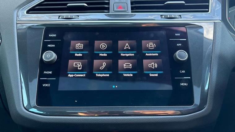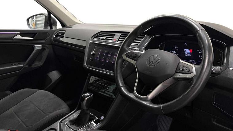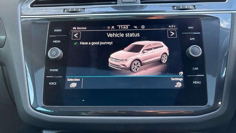 Adaptive cruise control ACC stop and go including speed limiter, App-Connect incl. App-Connect Wireless for Apple CarPlay and Android Auto, Bluetooth phone integration system, Digital Cockpit Pro - Active info display, Distance control assist, Driver alert system, Driver profile selection, Dynamic road sign display, eCall emergency call system, Electromechanical speed sensitive power steering, Engine start/stop button, Lane keeping system Lane Assist, Lights on warning, Motorised electric tailgate operated via key fob, drivers door and foot movement under tailgate, Multifunction front facing camera, Outside temperature display, Premium multifunction display with multi colour display, Remote control boot opening, Rev counter, Revision / skills operating concept travel assistant, Service interval indicator, Speed limit display, Start/stop system with regenerative braking, Tailgate/trunk lid unlocking from outside, Trip computer, Warning sound and light for doors and tailgate open, Battery regeneration during braking, XDS electronic differential lock for improved traction and handling, 2 USB-C ports in the front, 1 USB-C charging socket on the center console in the rear, Diversity antenna for FM reception, Radio, SD card slot, Simultaneous pairing of 2 compatible mobile devices, SMS functionality - read, compose and send SMS messages using touch-screen display, Title and cover art display, Aluminium door sill protectors, Auto dimming interior rear view mirror, Automatic headlight control system, Body colour door handles, Body coloured bumpers, Body coloured door mirrors with integrated indicators, Coming/leaving home lighting function, Dynamic headlight range control, Front and rear electric windows, Heated rear window, High level 3rd brake light, IQ light with advanced high beam control and dynamic light assist for LED matrix headlamps + Dark red rear combination lamp in LED technology, Laminated safety glass windshield, heat and sound insulating, LED rear number plate lights, LED separate daytime running light, Poor weather light and cornering light, Privacy glass for rear side windows and rear window, Rain sensor windscreen wipers, Rear exhaust tailpipe, Rear fog lamp, Rear windscreen washer and wiper with interval delay, Side and rear windows in heat insulating glass, Third brake light, Tilting and sliding panoramic sunroof with rear panoramic sunroof, Trailer Stability Programme, Windscreen wipers/ intermittent wipe + 4 position delay, 12V outlet in center console rear and in luggage compartment, 2 cup holders in front, 2 LED front reading lights, 2 LED rear reading lights, 3 rear headrests, 4 load lashing points, 40:20:40 split folding rear seats, Air Care Climatronic 3 zone automatic climate control with enhanced air filter and controls in the rear, Backrest release for left front seat, Climate control unit rear with touch function, Door and side trim panel in foam film and woven fabric, Front + rear carpet mats, Front centre armrest, Front footwell illumination, Front seats head restraints (x-adjustment), Height adjustable front seats, Height/reach adjust steering wheel, Instrument lighting white adjustable panel illumination, Interior light with delay, Isofix Preparation 2 Rear child seats, Leather gear knob, Lockable cooled glovebox, Luggage compartment lighting, Luggage net, Rear bench seat asymetrically split folding, longitudinally movable and folding with load-through hatch and center armrest, Remote unlocking for rear seat backrest, Removable luggage cover, Safety optimised front head restraints, Sliding/reclining rear seats, Standard rear seat release, Storage compartment in driver's door, Storage compartment in passenger's door, Storage compartment in rear doors, Storage compartments in luggage area left and right, Storage tray on dashboard, Sun visors with illuminated vanity mirrors, Variable boot floor, height adjustable and removable, Ambience pack - Tiguan, Chrome pack - Tiguan, Easy open and close pack with safelock - Tiguan, 3 point seat belt for centre rear seats, 3 point seat belts with seat belt pretensioners for the outer rear seats, Active bonnet, Curtain airbags for front and rear passengers, Driver/Front Passenger airbags, Drivers knee airbag, Electronic parking brake with auto hold, Electronic Stability Control with driver steering recommendation, ABS, ASR, EDL, EDTC and trailer stabilization, Front assist with autonomous emergency braking (for Adaptive Cruise Control ACC up to 130 mph), Front disc brakes, Front passenger airbag deactivation, Front side airbags, Height adjustable front 3 point seatbelts + pretensioners, Hill hold control, Pedestrian monitoring system, Power assisted brakes, Proactive passenger protection system in combination with front assist, Rear disc brakes, Rigid safety cell with front and rear crumple zones, Two tone horn, Warning sound and light for front seat belts if unfastened, Anti theft alarm system with interior monitoring, backup horn and towing protection, Anti theft wheel bolts, Central locking system with safelock radio remote control and 2 remote control folding keys, Electronic engine immobiliser, Tool kit,