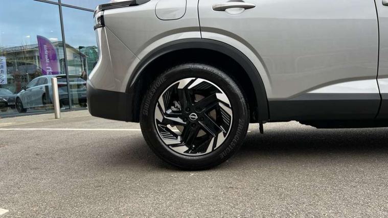 2 front USB-C ports, 2 rear USB-C ports, 360 degree Intelligent around view monitor with moving object detection, Blind spot warning, Drive assist custom mode, Drive modes (sport, normal, eco), Driver drowsiness and attention warning, Electric speed sensitive power steering, Emergency and breakdown call, Emergency lane keep assist, Emergency Stop Signal (ESS), Engine start/stop button, Event data recorder, Front and rear parking sensors, Full Digital 12.3" TFT Digital Combimeter, Google virtual personal assistance, Idle stop/start system, In-car WIFI hotspot, Intelligent Cruise control (ICC), Intelligent driver alert system, Intelligent forward collision warning, Intelligent lane intervention, Intelligent speed assist, Lane departure warning system, Maximum speed limiter, Nissan connect 12.3 inch touchscreen infotainment system, Nissan connect navigation with google maps, Nissan connect services 2.0 (Google Automotive System), Outside temperature sensor, Propilot assist with Navi-Link, Rear cross traffic alert, Remote control services - door locks, lights, horn and car locator, Reversing detection, Traffic jam pilot, Traffic sign recognition with legal speed adjustment, Trip computer, Wireless Apple CarPlay/Android Auto, Wireless charging pad, Limited slip differential, 6 speakers, AM/FM audio system with DAB, Bluetooth audio streaming, Auto rear wiper when reversing, Body coloured door handles, Bodyside mouldings, Chrome side window finisher, Electric auto folding door mirrors, Electrically adjustable and heated door mirrors with LED turn indicator, Follow me home headlights, Gloss black mirror caps, High beam assist, Intelligent auto headlights, LED 3rd brake light, LED daytime running lights, LED Headlights, LED rear lights, One touch front and rear electric windows with remote opening and closing, One touch passenger window, Partially body coloured bumpers, Rain sensing wipers, Rear privacy glass, Rear roof spoiler, Rear side wing doors, Rear styling plate, Shark fin antenna, Silver roof rails, Splash free rain sensing wipers, Super UV and infrared cut glass, Three blink turn signal, 12v power socket in dashboard and luggage, 3 bench rear seats in 2nd row, 3 rear headrests, 60/40 split folding rear seat bench, Chrome interior door handles, Cloth upholstery, Dark headlining, Driver and passenger sunvisors with illuminated vanity mirrors, Driver seat back pocket, Dual zone automatic climate control with pollen filter, Electrically adjustable lumbar support for driver, Front centre console and armrest, Front cupholders, Front door with bottle holders, Height adjustable driver seat, Height adjustable front headrests, Height adjustable passenger seat, Luggage board system, Luggage space lighting, Multifunction steering wheel, Passenger seat back pocket, Rear door bottle holders, Rear seat armrest with 2 cupholders, RGB ambient light (Partial area coverage), Single front passenger seat, Smooth leather steering wheel, Steering wheel gearshift paddles, Tilt/telescopic adjustable steering wheel, Two rear isofix child seat anchorage points with top tether, 3x3 point rear seatbelt pretensioners + load limiters, ABS with EBD and brake assist, Autonomous emergency braking, Child locks on rear doors, Curtain and front side, far side airbags, Driver and passenger airbags, Driver, passenger and 2nd row rear seat belt reminder, Electric handbrake with auto hold function, Front seatbelt pretensioners + load limiters, Height adjustable front seatbelts, Hill start assist, Intelligent blind spot intervention, intelligent front emergency braking, Intelligent rear automatic braking, Tyre pressure monitoring system, Vehicle dynamic control, Engine immobiliser, Intelligent key with walk away lock and approach unlock functions, Remote central door locking with deadlocking, Thatcham alarm, 18" Diamond cut alloy wheels, Tyre puncture repair kit,