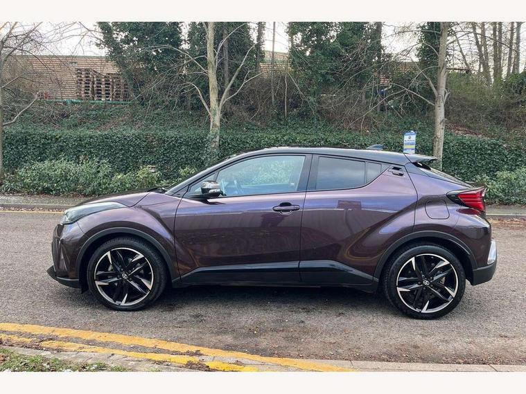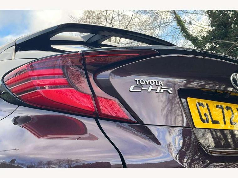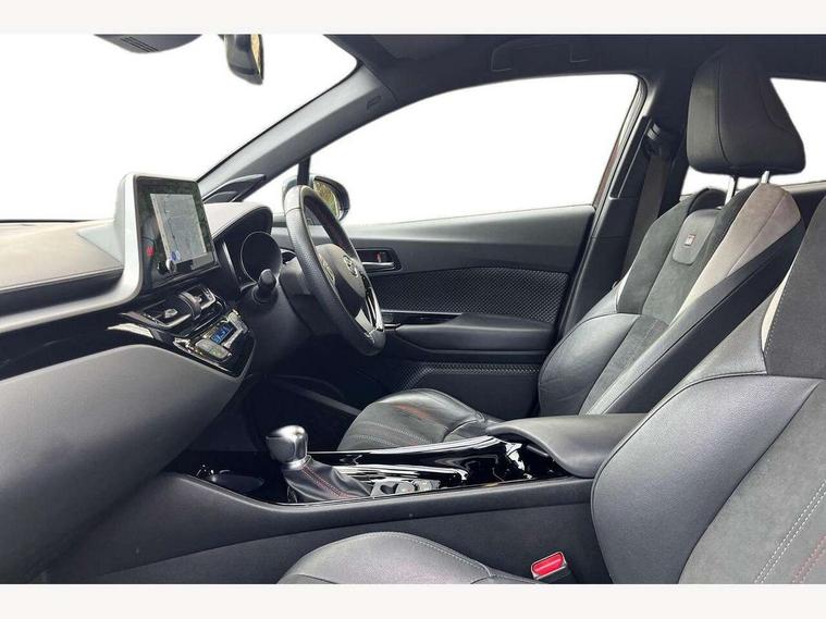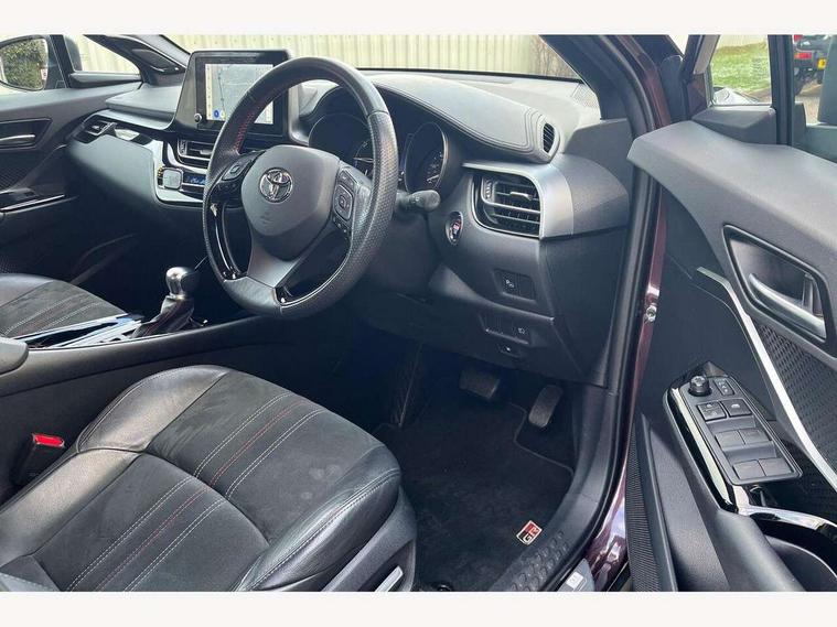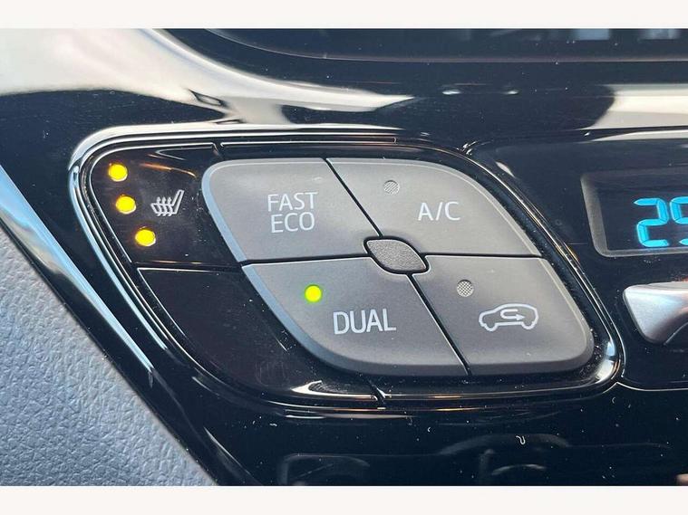 4.2" coloured TFT screen for multi-information display, Adaptive cruise control, Apple car play and Android auto, Bluetooth connectivity, E-call, Electric power steering, Hybrid system indicator, Lane departure alert with steering control, Lane trace assist, Push button tailgate release, Remote boot door release in cabin, Remote boot door release in key, Reversing camera, Road sign assist - RSA, Simple Intelligent parking assist, Smart voice assist, Touch 2 Go navigation system, Trip computer, Voice recognition, Wireless smartphone integration, Vehicle Stability Control (VSC), 6 speakers, AM/FM radio, DAB Radio (Digital Audio Broadcasting), Toyota touch 2 multimedia system with 8" display, USB connector, Wi-fi connectivity, Adaptive front light system, Adaptive LED Headlights, Anti-jam protection on power windows, Auto high beam, Auto up and down function on all power windows, Automatic headlight levelling, Automatic headlights, Automatic headlights cut-off, Black and body coloured rear bumper, Black upper front grille, Body colour door handles, Body colour door mirrors, Body coloured front bumper, Boot door release with push button, Chrome front lower bumper, Electric heated door mirrors, Follow me home headlights, Front and rear power windows, Front spoiler lip in black, Headlight cut off reminder, Honeycomb lower front grille, LED daytime running lights, LED fog lights, LED front light guide, LED High mounted stop light, LED rear brake lights, LED rear combination lights, Noise reduction layer on front windows and windscreen, Power adjustable door mirrors, Privacy glass, Rain sensor, Rear sequential indicators, Rear side wing doors, Rear spoiler, Rear tailgate, Rear window defogger, Rear window wiper, Shark fin antenna, UV-filter on driver and passenger windows, UV-filter on rear windows, Variable front intermittent wipers, 12v power outlet - front, 3 rear headrests, 3 seat bench in 2nd row, 3 spoke perforated leather steering wheel, 60/40 split folding rear seat, Adjustable rear headrests, Adjustable speed limiter switch on steering wheel, Assist grips front and centre pillar, Audio and telephone switches on steering wheel, Black front door assist grips, Blue ambient lighting on front cup holders, Blue ambient lighting on front doors, Boot light, Chrome interior door handles, Cloth upholstery, Driver and front passenger personal light, Driver and front passenger Whiplash Injury Lessening seats, Driver and passenger seatback pockets, Dual zone automatic air conditioning, Floor mats, Front cupholders, Front head restraints, Front sports seats, Glovebox with internal light, Hard tonneau cover, Heated driver and front passenger seats, Hooks for luggage holding net, Humidifying Nanoe air purifier, Illuminated entry system, Isofix attachments on outer rear seats, Leather gearshift, Light on driver sun visor, Light on passenger sun visor, Manual telescopic steering wheel, Manual tilt steering wheel, Manually height adjustable driver seat, Manually height adjustable front passenger seat, Manually reclining driver seat, Manually reclining front passenger seat, Manually sliding driver seat, Manually sliding front passenger seat, Microphone on front personal light, Mirror on driver sun visor, Mirror on passenger sun visor, Multimedia switches on steering wheel, Pollen filter, Power adjustable lumbar support on driver seat, Shopping bag hooks, Single front passenger seat, Slow opening on lower glovebox, Voice recognition switch on steering wheel, Tech with parking sensor pack - C-HR, 16 Disk front wheel brake, 3x3 point rear seatbelts, ABS+EBD+Brake assist, Electronic parking brake, Front and rear seatbelt reminder, Front passenger airbag on/off switch, Hill start assist control (HAC), Pre collision system with pedestrian detection, Pre-tensioners and force limiters, Rear door child safety locks, SRS Airbags - Driver + Front passenger, front side, front and rear curtain and driver's knee airbags, Toyota safety sense, Tyre pressure monitoring system, Tyre pressure warning system, Acoustic vehicle alert system (AVAS), Glass-breaking alarm sensors, Immobiliser, Intrusion alarm, Intrusion sensor, Motion sensor alarm, Power passenger window lock, Remote central locking, Black lower dashboard, Black upper dashboard, Piano black console, Silver deco line on upper dashboard, 19" Black machined alloy wheels, Tyre repair kit,