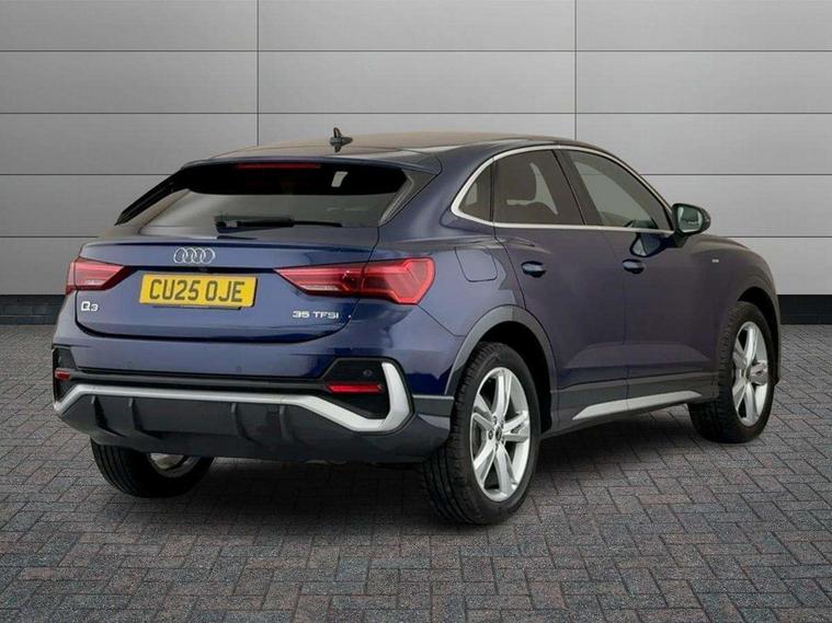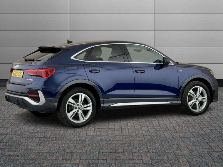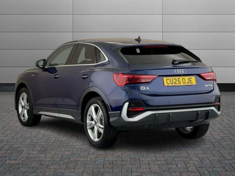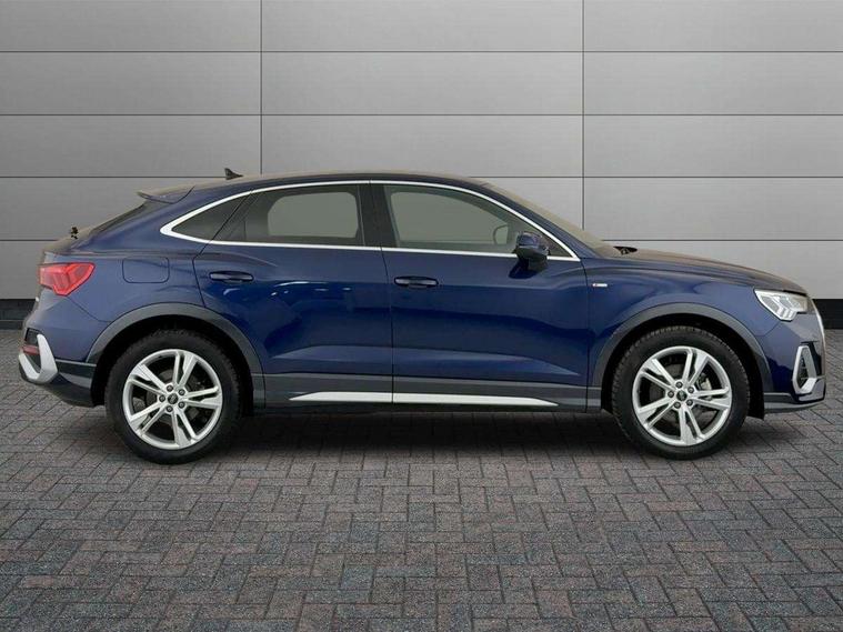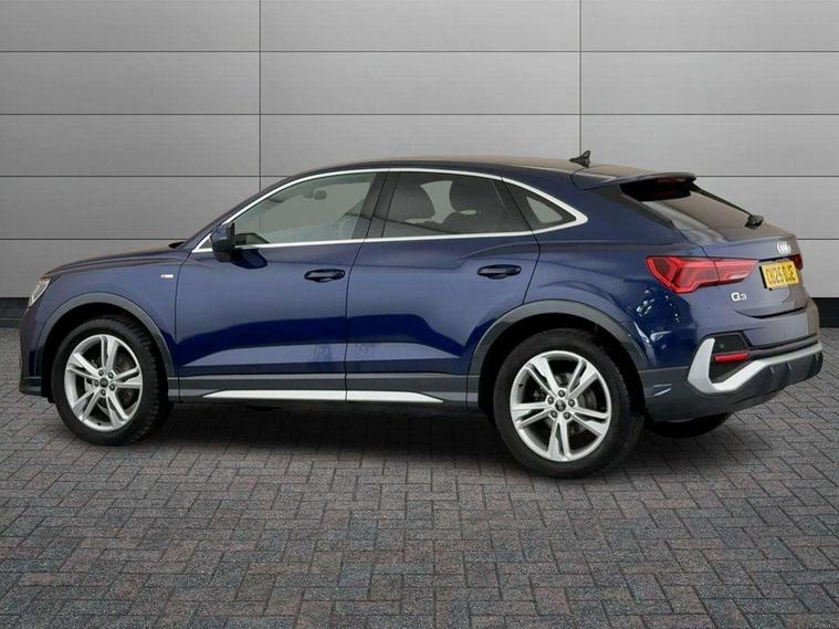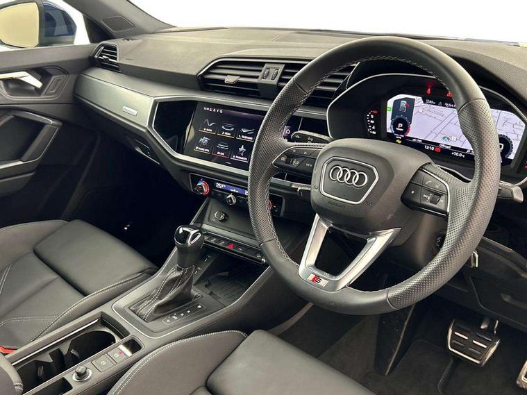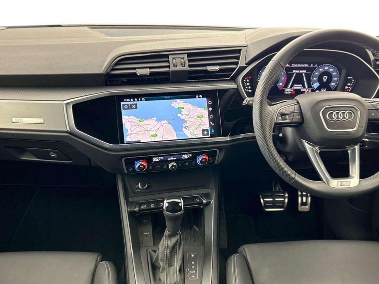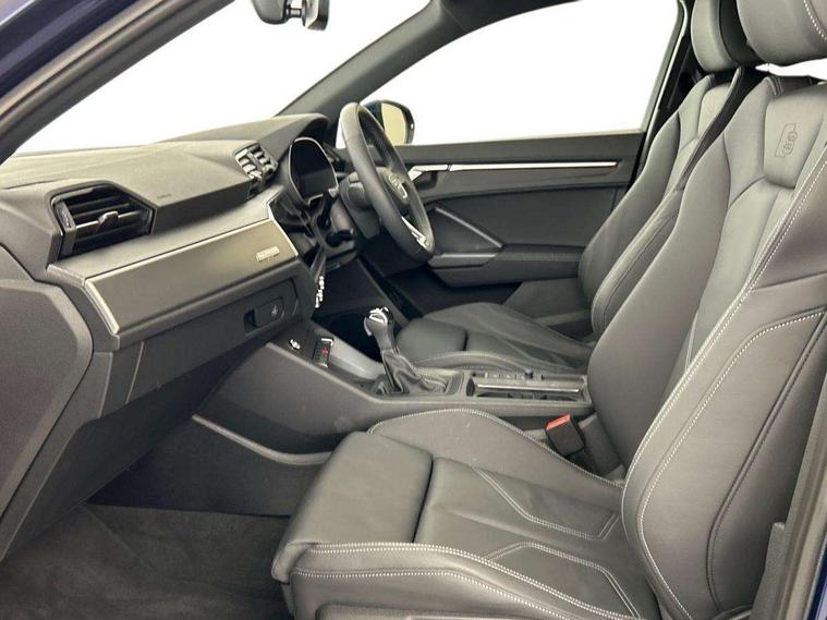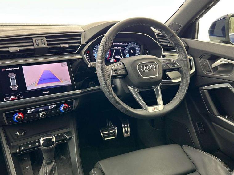 Audi connect safety and service, Audi drive select, Audi lane departure warning, Audi Virtual Cockpit - 10.25" display, Bluetooth interface, Camera based traffic sign recognition, Distraction and Fatigue warning, Legal emergency call, MMI Navigation Plus with high resolution 10.1 inch touchscreen colour display, Power operated tailgate, Progressive steering, Service interval indicator, Smartphone interface includes wireless Apple carplay/Android Auto, Start stop system with recuperation, Voice control system with natural language interaction, Sports suspension, 2 USB-C ports with charge and data functions, 6 passive loudspeakers, DAB digital radio module, Acoustic windscreen, Aluminium window trim, Auto dimming door mirrors, Auto dimming frameless rear view mirror, Diffuser grille in grained matt black, Diffuser trim in selenite silver, Electrically folding, adjustable and heated door mirrors with integrated LED side indicators and kerb view function for passenger side, Front and rear electric windows, Front fog lights, Front side air inlets in selenite silver, Front underbody protection in manhattan grey paint finish, Grille surround in aluminium silver matt, High gloss black finish B and C pillars, LED Dynamic rear indicators, LED headlights with LED daytime running lights, LED rear lights, LED third brake light, Privacy glass dark tinted rear and rear-side windows (from B-pillar backwards), Radiator grille in anthracite black with inlay in matt aluminium silver, Rain and light sensors, Rear side wing doors, Rear underbody protection in matt black, Rear wiper, S line badges on front wings, S line front and rear bumpers and side skirts in contrasting Manhattan grey paint finish, Side skirt insert in matt Platinium grey, Variable front intermittent wipers, 12V socket in rear centre console, 3 seat bench in 2nd row, 3 spoke leather multifunction steering wheel features S badging and grips in perforated leather with contrast stitching, 40:20:40 folding with manual adjustment for 60:40 forwards/backwards position and backrest angle, Adjustable rear seat bench/backrest with centre armrest and cupholder, Black cloth headlining, Dual zone electronic climate control, Electric lumbar support, Front and rear black floor mats with contrast stitching, Front and rear headrests, Front centre armrest, Height and reach adjustable steering wheel, Illuminated door sill trims with S logo, ISOFIX child seat mounting for front passenger with airbag deactivation and outer rear seat including top tether attachment point for outer rear seats, Luggage compartment sill protection in stainless steel, Manual front seats with height adjustment, Perforated leather gearknob, Single front passenger seat, Stainless steel pedals, Twin leather upholstery with front sport seats + S embossing, Non smoking pack - Q3, 3x3 point rear seatbelts, 6 airbags - Driver, front passenger, curtain and side windows, Audi pre-sense front with pedestrain and cyclist recognition, Electrically operated child locks on rear doors, Electromechanical parking brake, Electronic stabilisation control including ABS, ASR and EDL, Front seatbelt reminder, Hill descent control, Hill hold assist, Pre sense basic, Seatbelt monitoring, Tyre pressure warning, Warning triangle and first aid kit, Anti theft wheel bolts, Immobiliser, Remote central locking, Thatcham approved category 1 anti theft alarm, Aluminium look interior elements, Dark matt brushed aluminium inlay, Detail dashboard around MMI touch colour display in glass look, black with surround in aluminium look, Leatherette door armrest,