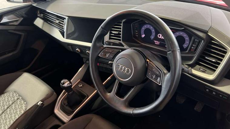10.25" Digital instrument cluster display classis style instrument dials + speed, odometer, time, outside temperature, telephone menu + fuel level warning, Audi connect safety emergency and service including E-call, Audi drive select - power steering assistance + engine, Audi smartphone interface with connect compatible smartphone via USB directly MMI display + Nav, music, third party apps controlled via MMI controller, Automatic start/stop system, Bluetooth interface, Cruise control, Driver's information system, Electromechanical power steering, Lane departure warning system, Service interval indicator, Speed limiter, Voice control system, Washer fluid level indicator, Dynamic suspension, 1 x SDXC card reader, 2 x USB type C connection points, DAB Digital radio, MMI radio plus with 8.8" colour MMI display screen and MMI touch, Auto dimming rear view mirror, Body coloured bumpers, Body coloured door mirrors, Electric front and rear windows, Electrically adjustable, heated, folding door mirrors with integrated LED side indicator, Front side air inlets in grained matt black and C frame in titanium black, Heat insulating glass windscreen and side windows, Heated rear windscreen, LED headlights with LED rear lights + dynamic rear indicators + headlight adjustment and high beam, turning light + LED daytime running lights, Radiator grille and rear diffuser in matt titanium black, Radiator protective grille frame in matt aluminium silver, Rain and light sensors, Rear fog lights, Rear wiper, Scandium grey tailpipe trim, Side front spoiler lips in grained matt black, 12V socket in centre console with two cup holders, 3 rear seats with headrests, 40:60 Split folding rear seat or folded fully, Door sill trims with aluminium inlay, Driver and passenger seat with manual height adjust with forward and backwards adjustment, Front head restraints, Front/rear floor mats, Height and reach adjustable steering wheel, ISOFIX child seat mounting for front passenger and outer rear seats including top tether attachment point of outer rear seats, Leather gear knob with aluminium trim, Leatherette handbrake grip, Luggage compartment light with front and rear reading lights, Manually adjustable lumbar support in front seats, Novum cloth upholstery with front sport seats, Titanium grey cloth headlining, Luggage compartment pack - A1, 3x3 point rear seatbelts, Audi pre-sense front with pedestrain and cyclist recognition, Brake assist function, Driver and front passenger airbag with front side and head airbags, Electronic Stability Control including ABS, EBD, ASR and EDL, Front and rear seatbelt reminder, Front passenger airbag deactivation switch, Hill hold assist, Seatbelt height adjustment for front seats, Seatbelt monitoring, Tyre pressure warning light, Warning triangle and first aid kit, Anti theft alarm, Anti theft wheel bolts and loose wheel warning, Immobiliser, Remote central locking with 2 foldaway keys, Aluminium trim for control switches, air vents and digital instrument cluster, Silver grey accent areas including air vents, door handle recesses and centre console in diamond paint finish, Slate grey inlays polygon structure in fine paint finish,
