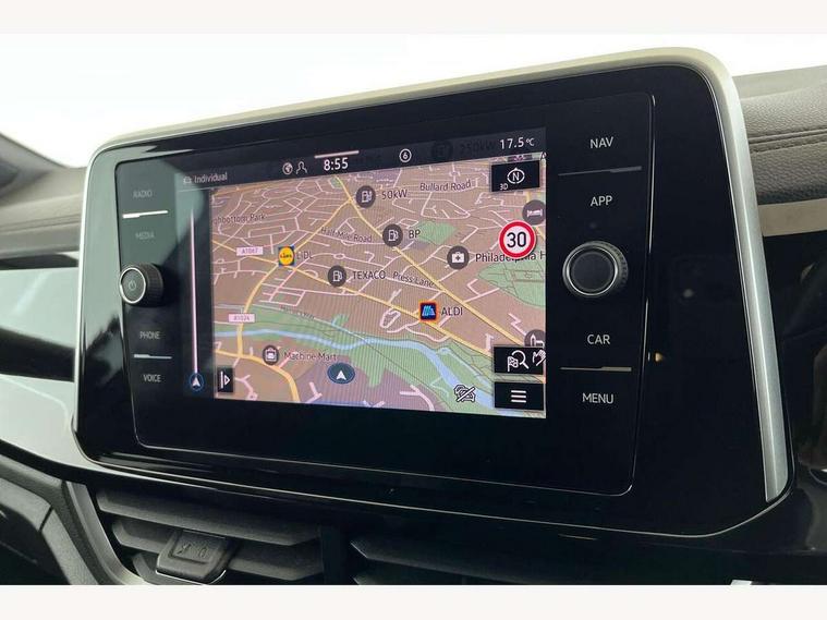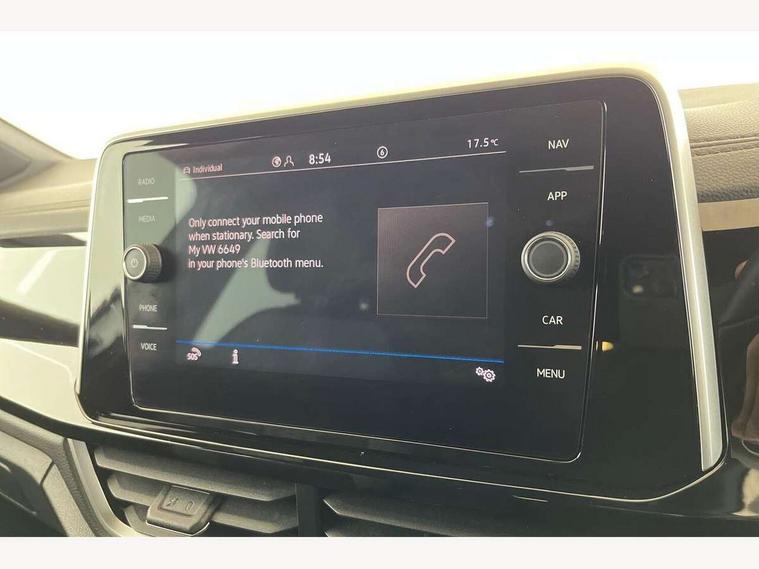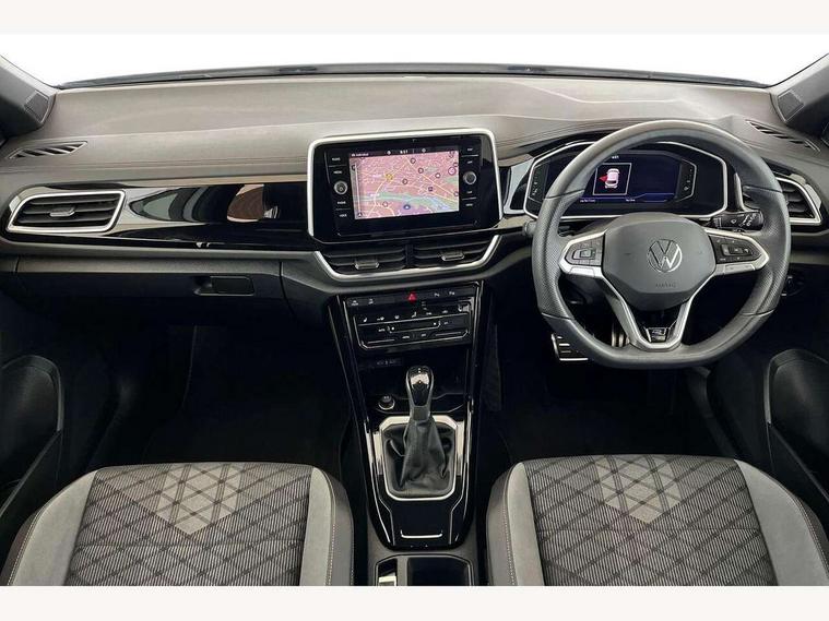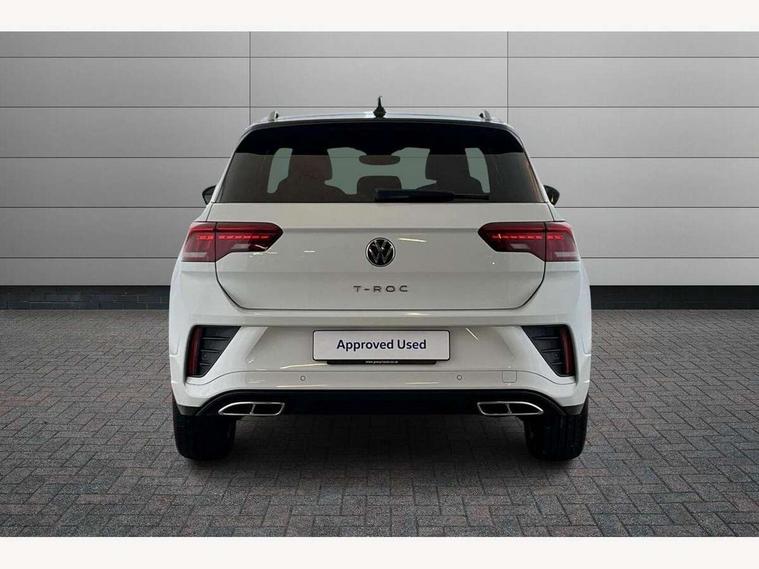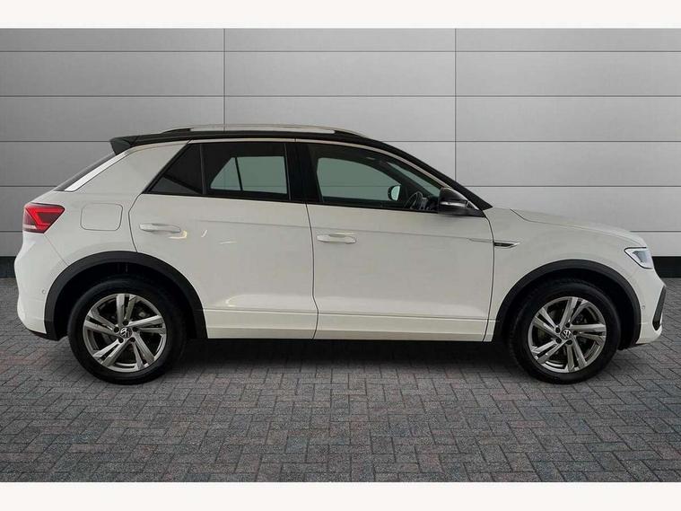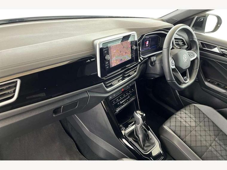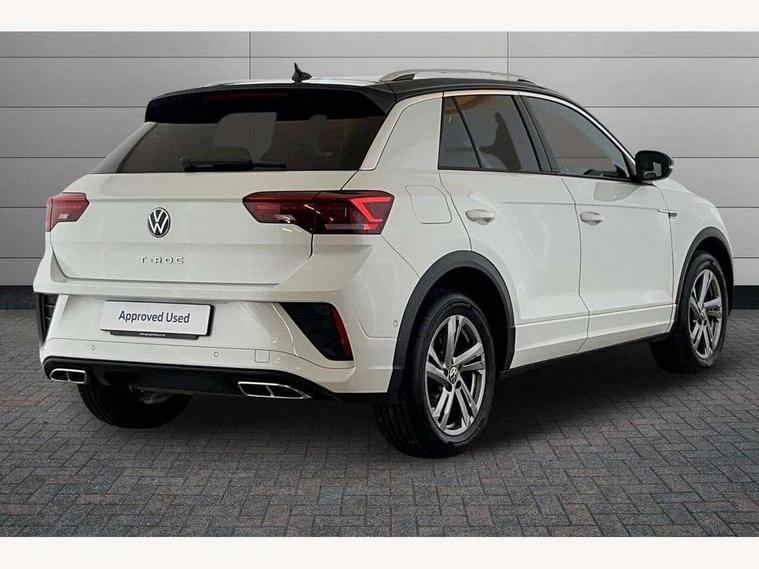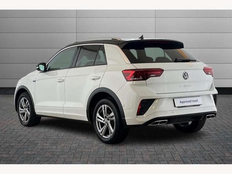 10.25" Digital cockpit pro, Advanced driver attention and drowsiness monitor, Emergency call service, Lane keeping system Lane Assist, Mobile phone interface, Modified key software - reduce switch off time for key status change to Long no motion, Online services, Park assist including front and rear parking sensors, Service interval indicator, Tailgate/trunk lid release from outside, Think blue trainer driver tips and journey analysis, Warning sound and light for front seatbelts unfastened, Wireless app connect, Battery regeneration during braking, Start/stop function with battery regeneration, DAB Digital radio, Diversity antenna for FM reception, Front and rear 6 speakers, Music playback - MP3, WMA and AAC files, Premium USB cable in choice of either Apple or Android smartphone compatibility, SD card slot, Simultaneous pairing of 2 compatible mobile devices, Title and cover art display, We Connect and We Connect Plus functionality, Auto dimming interior rear view mirror, Automatic hazard lights activation under emergency braking, Automatic headlight control with LED separate daytime running lights with coming/leaving home function, Body coloured exterior mirror housings and door handles, Electrically adjustable and heated door mirrors, Extended roof spoiler, Exterior mirrors aspherical on driver side, convex on front passenger side, External USB type C socket and charging sockets, Front windscreen wiper with intermittent wipe and 4 position delay, Heated rear window, LED 3rd brake light, LED rear combination lamps, LED rear number plate lights, Power windows with comfort operation and circuit breaker, Privacy glass for rear side windows and rear window, R-Line design body coloured bumpers, Rain sensor, Rear exhaust tailpipe, Rear fog light on one side and reversing lights on both sides, Rear side wing doors, Rear wash/wipe with intermittent wipe setting, Remote electrically foldable door mirrors, puddle lights and reverse activated passenger's door mirror, 12V power socket in centre console, 3 rear head restraints, 3 seat bench in 2nd row, 4 load lashing points in luggage compartment, Air care climatronic air conditoning system with active combination filter and 2-zone temperature control, Black roof lining, Chrome plated decorative trims, Chrome plated radiator grille inserts, air vent surrounds and light switch surrounds, Door and side trim panel with leatherette insert, Front + rear carpet mats, Front centre armrest, Front cupholders x 2, Front footwell illumination, Front reading light, Front scuff plates with R Line logo, Front seat back storage pockets, Glove compartment door with light, Instrument lighting, white adjustable panel illumination, Interior ambient lighting and surround lighting, Interior light delay, Isofix child seat preparation, Leather gearshift handle, Load-through provision with cup holder when folded down ('Unsplit rear seat bench, split folding backrest, with centre armrest), Luggage compartment lighting, Single front passenger seat, Stainless steel pedals, Storage compartment in left and right luggage area, Storage compartment in rear doors, Storage compartments in driver and front passenger doors, Sunvisors with illuminated vanity mirrors, Variable boot floor, height adjustable and removable, Driver assistance pack without proactive passenger protection - T-Roc, 3 point height adj front seatbelts + pretensioners, 3 point seatbelts in outer rear with ECE label, ABS, Child locks on rear doors, City emergency braking and pedestrian monitoring, Driver and front passenger airbag with front passenger airbag deactivation, Driver and front passenger safety-optimised head restraints, Drivers seatbelt reminder, Electronic parking brake, Electronic Stability Control (ESC) inc EDL (Electronic Differential Lock) and ASR (Traction Control), Front and rear passengers curtain airbag system including front side airbags, Hill start assist, Predictive pedestrian protection, Rear disc brakes, Two tone horn, Tyre pressure loss indicator, Volkswagen roadside assistance, Piano black decorative inserts in dashboard and front door trim panels, Trims for alloy wheels,
