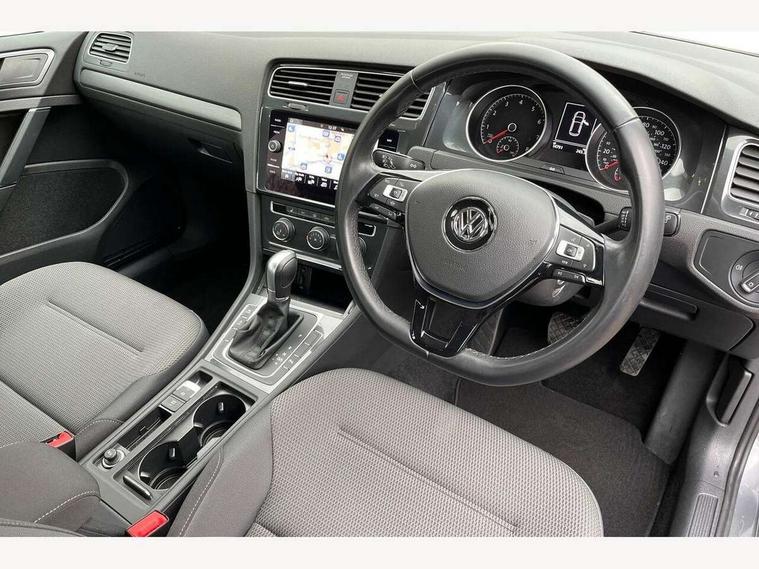'Lights On' Reminder warning buzzer, 8" colour touch screen, ACC - Adaptive cruise control with front assist, forward collision warning, distance monitoring, city emergency brake and speed limiter, App-Connect, Bluetooth telephone and audio connection for compatible devices, Brake pad wear indicator warning light, Drive mode selector, Driver alert system, Driver profile selection, Front assist, radar sensor controlled distance monitor, city emergency braking + predictive pedestrian protection, Front assistant collision mitigation, Instrument cluster in white, Multifunction computer with visual gear change recommendation for fuel consumption, Power assisted speed sensitive electro-mechanical steering, Speedo, rev counter, electronic odometer, trip, service interval display, exterior temperature and fuel gauge, Stop/start system, Ultrasonic front and rear optical and audible parking sensors, Warning buzzer and light for front seatbelts unfastened, Battery regeneration during braking, XDS electronic differential lock, 8 Speakers, Composition media system, DAB Digital radio receiver, MP3/WMA compatability, SMS Functionality, USB and SD card connectivity, Aerodynamic black radiator grille with chrome trimmed insert, Automatic coming/leaving home lighting function, Automatic dimming rear view mirror/rain sensor, Black rear diffuser, Body colour bumpers, Body colour door handles, Body colour door mirrors with integrated indicators, Electric front windows, Electric rear windows, Electrically adjustable and heated door mirrors, Glavanised body, Heated rear windscreen, High level 3rd brake light incorporating LED Technology, Range adjustable headlights via infotainment system with LED daytime running lights, Rear number plate lights incorporating LED technology, Rear window aerial, Rear window wash/wipe with intermittent wipe, Reflectors in all doors, Remote electrically foldable door mirrors, door mirror puddle lights and reverse activated kerb-view adjustment on passengers door mirror, Tailgate with integrated rear roof spoiler, Windscreen wipers/ intermittent wipe + 4 position delay, 12V socket in luggage compartment, 3 rear headrests, 4 load lashing points in luggage compartment, 60/40 split folding rear seat backrest, Bag hook in luggage compartment x 2, Cooled glovebox, Dust/pollen filter, Front and rear reading lights incorporating LED technology, Front centre armrest with storage compartment and two rear air vents, Front seat back storage pockets, Grab handles front x 2, rear x 2 with integrated coat hooks, Height and reach adjustable steering wheel, Illuminated vanity mirrors, Instrument lighting white adjustable panel illumination, Interior light delay, Isofix preparation for 2 rear child seats, Load through provision with rear centre armrest and cupholders x2, Luggage compartment light, Multifunction leather steering wheel with leather trimmed gear knob, Overhead storage box, Pearl grey headlining, Storage box in luggage compartment, Storage compartment in roof console with cover, Storage compartments in front doors, Storage compartments in rear doors, Stowable luggage compartment cover, Sun visors, Three spoke multi-function leather trimmed steering wheel and gearknob, Variable boot floor, height adjustable and removable, Mirror pack - Golf, 3 rear three point seatbelts, Airbags - Driver's and front passenger's, curtain airbag, Driver's knee, front side impact and passenger's airbag deactivation switch, Anti-lock Braking System (ABS) with Hydraulic Brake Assist (HBA), Automatic post collision braking system, Child locks on rear doors, Driver/Passenger optimised head restraints, Electronic parking brake with auto hold, Electronic stability control (ESC) including Electronic differential lock (EDL) and ASR (Traction control) with deactivation via infotainment system, Pre crash preventive occupant protection, Three point height adjustable front seatbelts with tensioners, Tyre pressure loss indicator, Alarm with interior protection, Electronic engine immobiliser, Remote central locking with 2 remote folding keys, Brushed dark silver decorative inserts in dash and door panels, Chrome plated air vent surround, Chrome-plated light switch surround, Polar night black centre console, Steel space saver spare wheel,