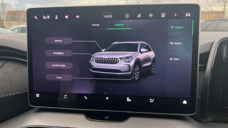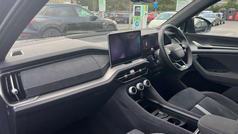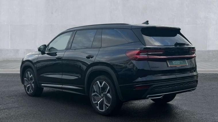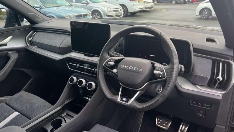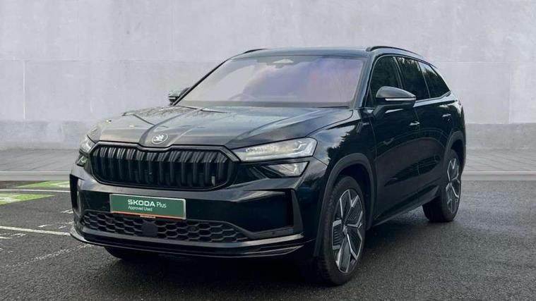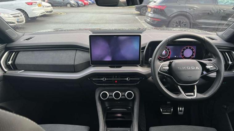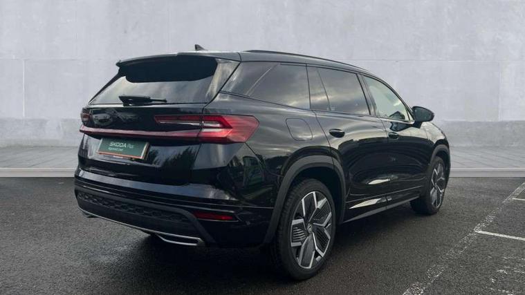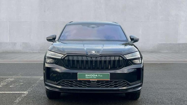 13" satellite navigation touchscreen display, Blind spot detection with door exit warning, Bluetooth system, ChatGPT functionality, Driver alert - Fatigue and drowsiness monitor, Dry display cleaner, Emergency call, Front and rear parking sensors, Front cross traffic assist, Lane assist, PAS, Rear traffic assist, Tailgate unlocking from outside, Traffic sign recognition, USB C Port x 2 in front centre console, Virtual Cockpit - 10.25" digital display, Voice control system, Wireless charging for two smartphones (15W) with cooling function, Wireless SmartLink for Apple CarPlay and Android Auto, Stop/start function, 2x USB-C in the rear, DAB Digital radio, Aero front windscreen wipers with intermittent function, Auto dimming rear view mirror, AWL (all weather lighting) and all weather light with cornering function, Black diffuser and decorative tailpipe with a unique dark chrome finish, Black roof rails, Black sports styling including front grille and window surrounds, Black wheel arch surrounds, Body colour door handles, Cornering light and poor weather light, Electric folding /adjustable/separted heated/folding door mirrors, auto dimming with boarding sports and memory function, Electric front and rear windows, Exterior black decorative trims, Front and rear sports bumpers including lower rear chrome strip, Gloss black door mirrors, Gloss black window frame and D pillar, Heat insulating glass in windshield, Heated rear window, Ice scraper in fuel tank cap, LED daytime running lights, LED third brake light in rear spoiler, Light assistant with automatic headlight control and coming home feature, Logo projection in door mirrors, Privacy glass, Rear roof spoiler, Rear side wing doors, Rear window wiper, Red decorative strip between rear LED lights, Safety reflectors on front and rear doors, Sportline badge on front fenders, Tailgate lettering in Black, Unique dark chrome design logo on alloy wheels, Window control switches with black trim, Windscreen wipers with rain sensor, Without engine designation, 1.5l bottle holder points in all door, 1x centre rear reading light, 2 seat bench in 3rd row, 3 configurable smart dials with 32mm coloured display, 3 seat bench in 2nd row, 4 foldable roof handles with rear coat hooks, Aluminium pedals, Ambient interior lighting - Dashboard, front-door stowage compartments, front and rear door panels and footwell lighting, Automatic gear selector on steering column, Chrome interior door handles, Driver/front passenger reading lights, Fabric headlining, Fixed bench 40:60:40 split folding backrests, Front and rear floor mats, Front centre armrest with jumbo box storage compartment, cup holder and 12V socket, Front sport seats, Height adjustable front headrests, Interior black decorative trims, Isofix child seat fittings in outer middle row rear seats and front passenger with top tether, Manually adjustable steering column, Pollen filter, Rear centre armrest with cupholders, Rear seat boot backrest release, Single front passenger seat, Skoda lettering on steering wheel, Storage pocket including mobile phone pockets on the backs of the front seats, Sunvisors with illuminated vanity mirrors, Three rear height adjustable headrests, Ticket holder on A Pillar, Tri zone climate control, Umbrella in door panel x1 made from sustainable materials, Upper and lower glovebox with card holder and coin compartment, USB C port by rear view mirror for charging only (15W), Acoustic package - Kodiaq, Performance package - Kodiaq, Sportline design selection pack - Kodiaq, Auto door release and activation of warning lights in the event of an accident, Driver and front passenger airbag with knee airbag and front passenger airbag deactivation, Electric child locks, Electronic parking brake, ESC (incl. ABS+EMD+MSR+ASR+EDL+HBA+DSR+RBS+ESBS+MCB+TSA+XDS), Front assist with braking reaction to vehicles, pedestrians and cyclists, Front disc brakes, Fuel cut off safety device, Height adjustable front 3 point seatbelts + pretensioners, Hill hold assist, Junction assist with automatic emergency braking, Rear disc brakes, Safety vest holder in door, Seat belt reminder for all seats, Three point rear seat belts, Two tone horn, Tyre pressure monitor, Alarm with interior monitoring and tilt sensor with safe function, Anti-theft wheel bolts, Immobiliser, Remote central locking with 2 keys, 20" Rila anthacite polished alloy wheel with black matte aero covers,
