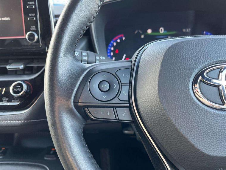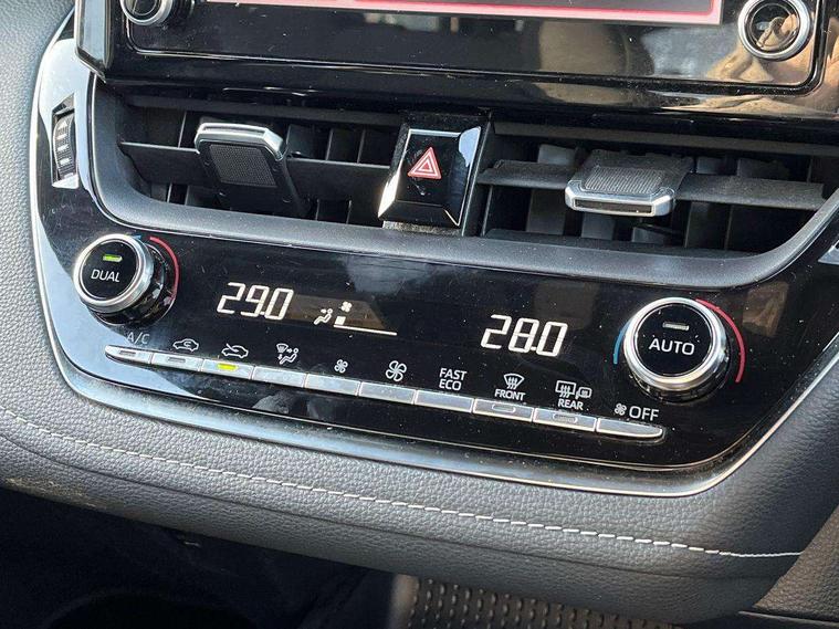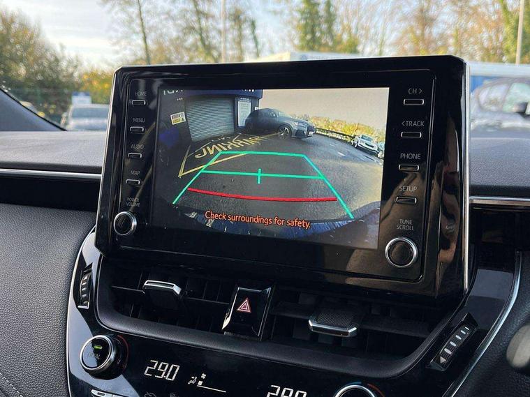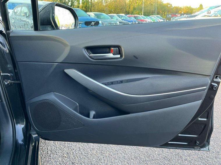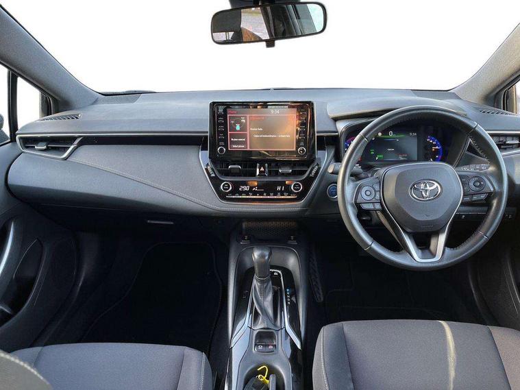 7" Multi information display screen, Bluetooth telephone connectivity, Connected car functionality upgrade, tracker, remote status and e-care, Dynamic radar cruise control (with RSA) including switch on steering wheel, E-call, Electrically assisted power steering, EV drive indicator, Lane Departure Alert (LDA) switch on steering wheel, Memory on adjustable speed limiter, Push button start, Reversing camera, Smartphone integration with Apple CarPlay and Android auto, Gasoline particulate filter, Vehicle Stability Control (VSC), 6 speakers, 8" Touchscreen with MM19 Multimedia system and voice recognition, AM/FM radio, DAB Digital radio, USB and Aux in connectors + 12V front outlet, Anti-jam protection on power windows, Auto up and down function on all power windows, Automatic headlights with high beam assist, Black metallic surround on lower front grille, Black toyota logo in front, Black window frames, Body colour rear spoiler, Body coloured bumpers, Body coloured door mirrors, Body coloured outside door handles, Follow me home headlights, LED daytime running lights, LED front fog lights, LED Headlights, LED High mounted stop light, Manual day/night rear view mirror, Power adjustable heated door mirrors, Power front windows, Power rear windows, Rain sensor, Rear side wing doors, Rear window defogger, Rear window wiper, Shark fin antenna, Time adjustment on intermittent wiper, Turning signal integrated indicators in door mirrors, Unique lower skirt, Unique side rocker with black insert, UV-filter on driver and passenger windows, 3 rear headrests, 3 seat bench in 2nd row, 3 spoke leather steering wheel + gear knob, 60/40 split folding rear seat, Adjustable speed limiter switch on steering wheel, Audio, multimedia and telephone switches on steering wheel, Boot light, Centre room light, Clean air filter, Driver and front passenger personal light, Driver and passenger assist grip, Driver and passenger sun visor with mirror and light, Dual zone automatic air conditioning with ECO mode switch, Fabric armrests, Front and rear cup and bottle holders, Front door pockets, Front head restraints, Front passenger seat, Heated driver and front passenger seats, Illuminated entry system in room lamp, ISOFIX seat fixing (2 fixings on rear outer seats), Leather gear shift with satin chrome on gear shift console, Manual height adjustable for driver and front passenger seat, Parcel shelf, Passenger seat back pocket, Pollen filter, Power adjustable lumbar support on driver seat, Power window switches with satin chrome inserts, Quilted fabric upholstery with grey stitches seats, Rear armrest with 2 cupholders, Rear passenger coat hooks (2), Satin chrome inside door handles, Shopping bag hooks in luggage compartment, Sliding armrest on centre console box, Slow opening glovebox with lights, Tilt/telescopic steering column, Voice recognition switch on steering wheel, Whiplash Injury Lessening (WIL) feature (active headrest) for seats, Toyota safety sense 2 pack - Corolla, 3x3 point rear seatbelts, Adjustable driver and front passenger seat belt extender to top anchor point, Anti lock braking system + Electronic brake force distribution, Brake assist function, Child locks on rear doors, Downhill Assist Control (DAC), Electronic parking brake, Emergency brake light signal (EBS), Front passenger airbag on/off switch, Front seatbelt reminder, HAC - Hill start assist control, Rear seat belt reminder, Seatbelt pretensioners and force limiters, Supplemental restraint system (SRS) 7 airbags - dual driver, dual side curtain, side impact and driver knee airbags, Traction control, Tyre pressure warning system, Acoustic vehicle alert system (AVAS), Alarm with motion sensor and immobilizer, Remote central locking + deadlocks, Satin chrome dash trim, Soft touch texture on upper dashboard, Unique wheel finish with red wheel cap,