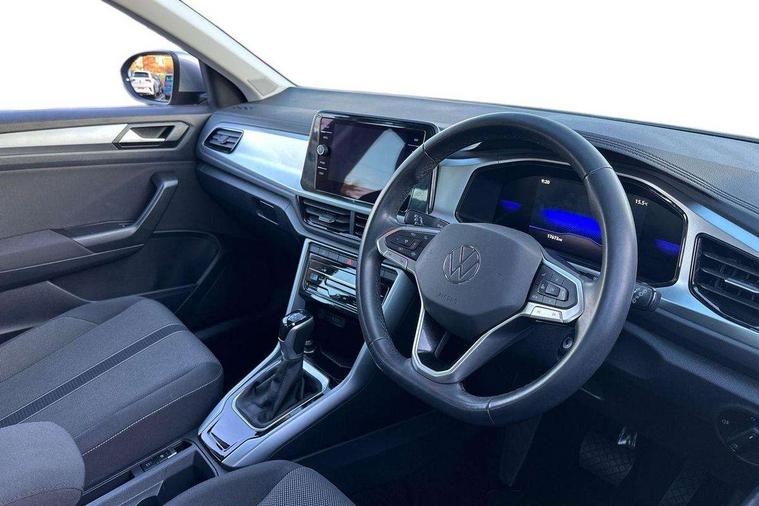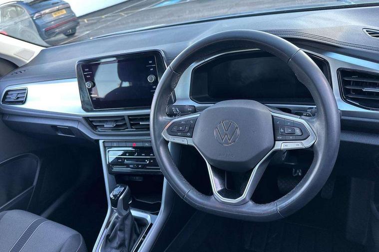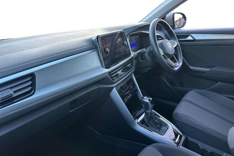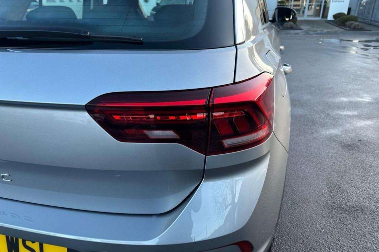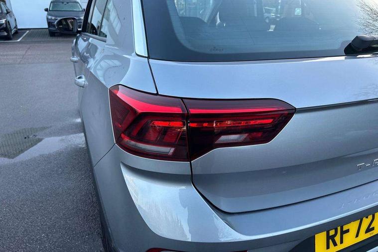 Bluetooth mobile phone interface, Driver alert system with fatigue detection, Driver tips and journey analysis, Emergency call service, Lane keeping system Lane Assist, Modified key software - reduce switch off time for key status change to Long no motion, Online services, Park assist including front and rear parking sensors, Power assisted speed sensitive steering, Service interval indicator, Tailgate/trunk lid release from outside, Think blue trainer driver tips and journey analysis, Warning sound and light for front seatbelts unfastened, Wireless app connect, Battery regeneration during braking, Front shock absorption, Rear shock absorption chassis with increased ride height, Start/stop function with battery regeneration, DAB Digital radio, Diversity antenna for FM reception, Front and rear 6 speakers, Music playback - MP3, WMA and AAC files, Premium USB cable in choice of either Apple or Android smartphone compatibility, SD card slot, Simultaneous pairing of 2 compatible mobile devices, Title and cover art display, We Connect and We Connect Plus functionality, 3rd brake light, Auto dimming interior rear view mirror, Automatic hazard lights activation under emergency braking, Automatic headlight control with LED separate daytime running lights with coming/leaving home function, Black roof rails, Body coloured bumpers and radiator grille with chrome trim and front fog lamps with chrome bezel, Body coloured exterior mirror housings and door handles, Extended roof spoiler, Exterior mirrors aspherical on driver side, convex on front passenger side, External USB type C socket and charging sockets, Front windscreen wiper with intermittent wipe and 4 position delay, Heated rear window, LED Headlights, LED rear combination lamps, LED rear number plate lights, LED tail lamp rear comination lamps, Power windows with comfort operation and circuit breaker, Rain sensor, Rear exhaust tailpipe, Rear fog light on one side and reversing lights on both sides, Rear side wing doors, Rear wash/wipe with intermittent wipe setting, Remote electrically foldable door mirrors, puddle lights and reverse activated passenger's door mirror, 12V power socket in centre console, 3 rear head restraints, 3 seat bench in 2nd row, 4 load lashing points in luggage compartment, Air care climatronic air conditoning system with active combination filter and 2-zone temperature control, Ambient lighting with mirror logo projection, Cloth upholstery, Door and side trim panel in cloth, Drawer under drivers seat, Driver/front passenger seat height adjustment, Front centre armrest, Front comfort sports seats, Front cupholders x 2, Front reading light, Instrument lighting, white adjustable panel illumination, Interior light delay, Isofix child seat preparation, Leather gearshift handle, Load-through provision with cup holder when folded down ('Unsplit rear seat bench, split folding backrest, with centre armrest), Luggage compartment lighting, Lumbar support for driver's and front passengers seat, Non-folding front passenger seat backrest, Single front passenger seat, Storage compartment in left and right luggage area, Storage compartment in rear doors, Storage compartments in driver and front passenger doors, Sunvisors with illuminated vanity mirrors, Variable boot floor, height adjustable and removable, Driver assistance pack without proactive passenger protection - T-Roc, 3 point height adj front seatbelts + pretensioners, 3 point seatbelts in outer rear with ECE label, ABS, Child locks on rear doors, Driver and front passenger airbag with front passenger airbag deactivation, Driver and front passenger safety-optimised head restraints, Drivers seatbelt reminder, Electronic parking brake, Electronic Stability Control (ESC) inc EDL (Electronic Differential Lock) and ASR (Traction Control), Front and rear passengers curtain airbag system including front side airbags, Front assist with city emergency braking and pedestrian monitoring, Front disc brakes, Front seat side impact airbags, Hill start assist, Predictive pedestrian protection, Rear disc brakes, Single tone horn, Tyre pressure loss indicator, Volkswagen roadside assistance, Alarm with interior protection, Anti-theft alarm system with interior monitoring, backup horn, and towing protection, Remote central locking with SAFELOCK, radio remote control with 2 remote control folding keys, Pewter matt decorative inserts for intrument panel, centre console and door panels at the front, Trims for alloy wheels,
